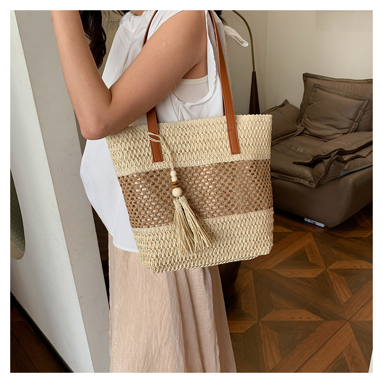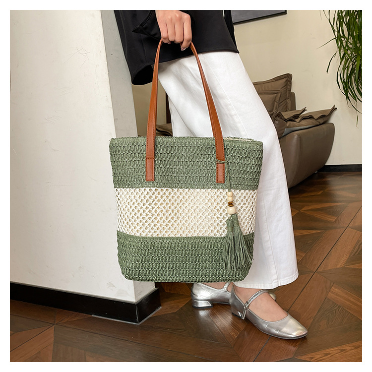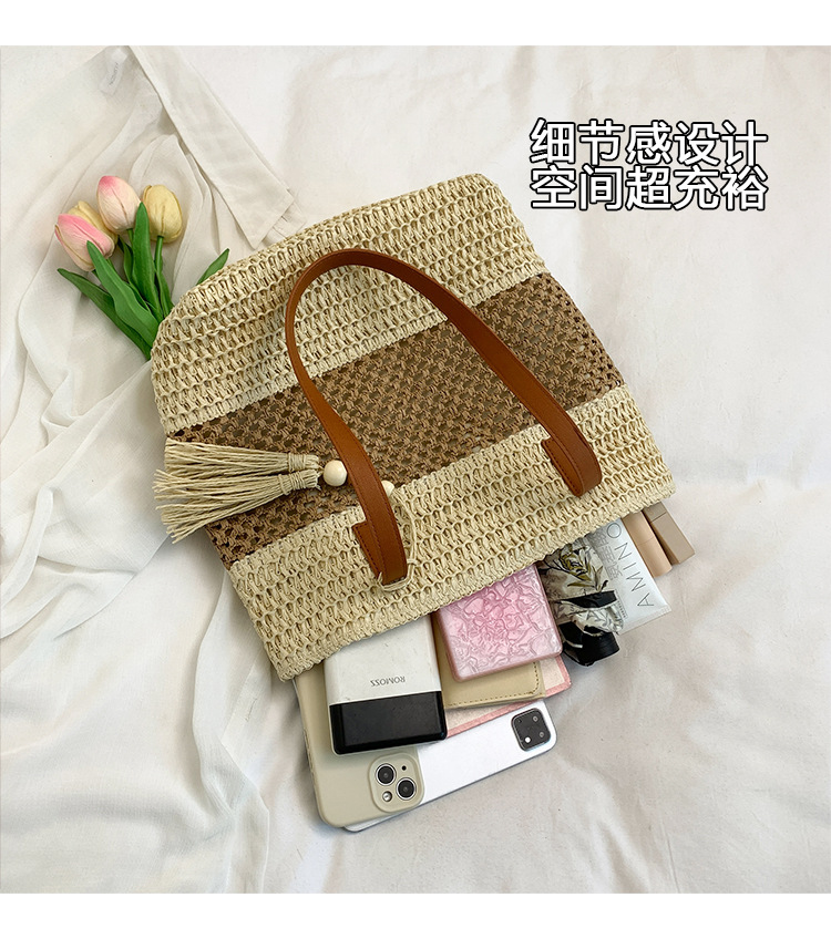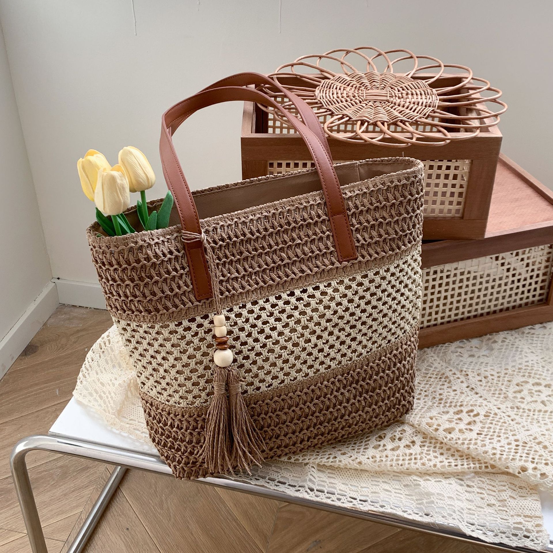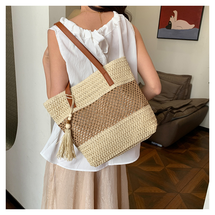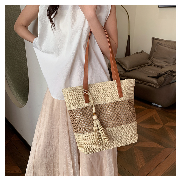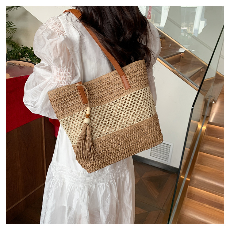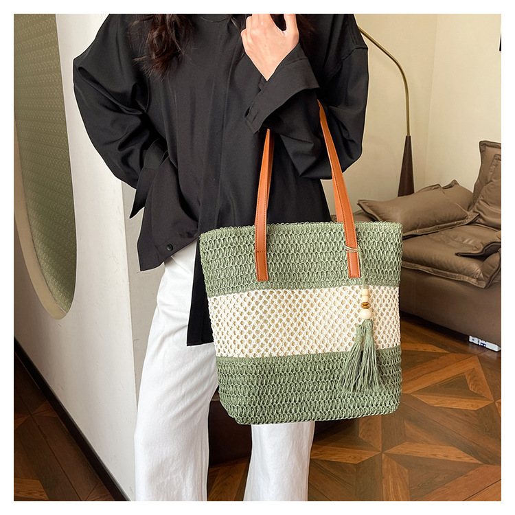 Woven Straw Bag Women's Large Capacity Casual 2025 New Spring and Summer Shoulder Beach Bag for Seaside Holiday Tote Bag