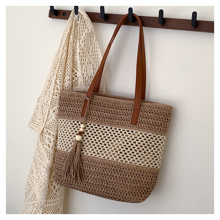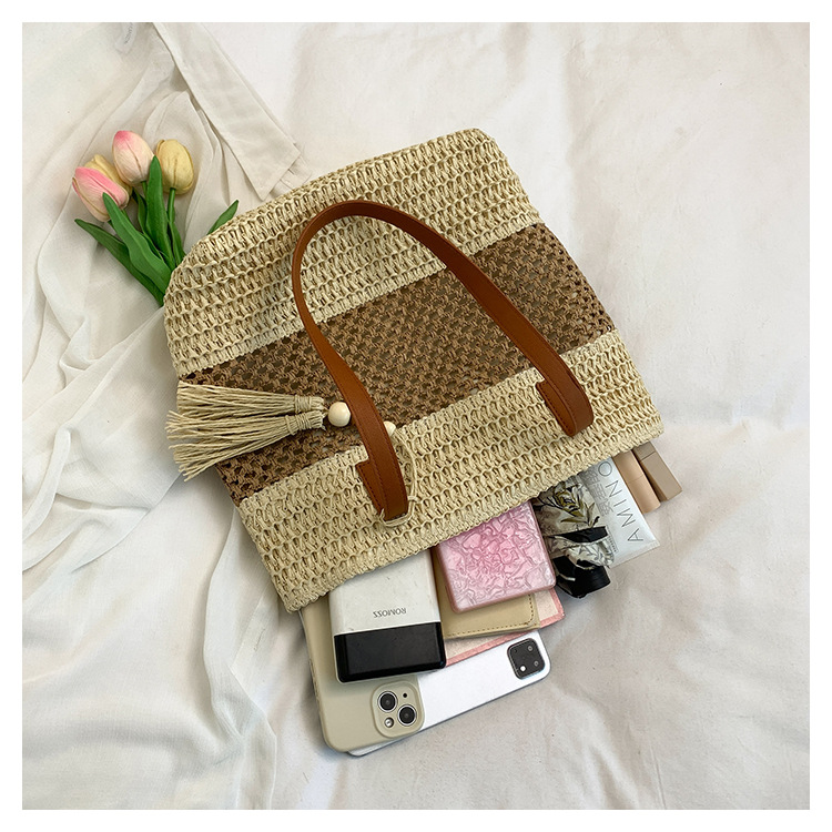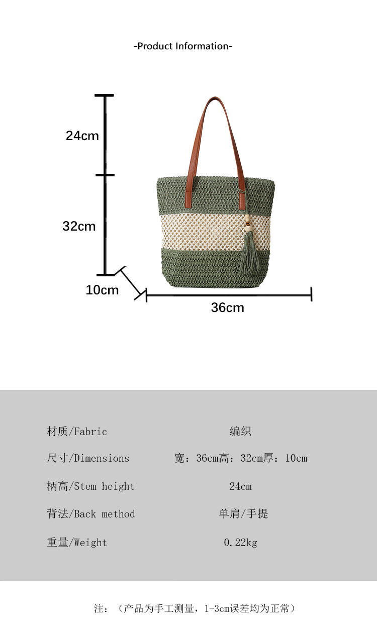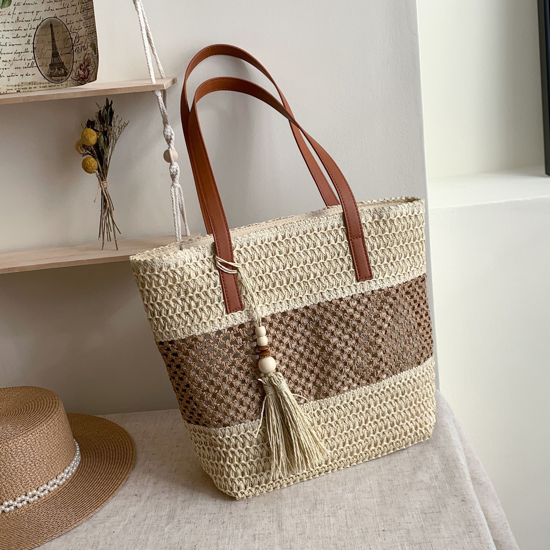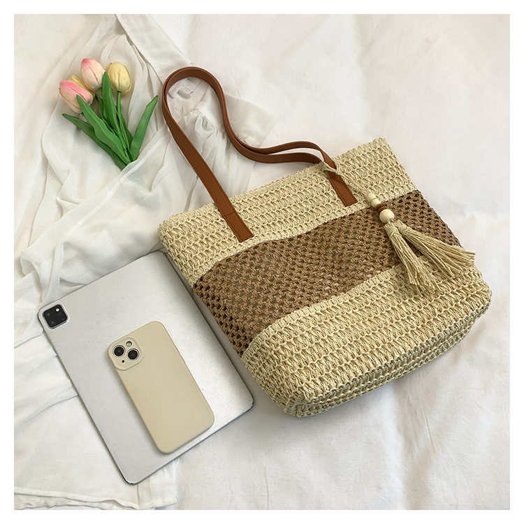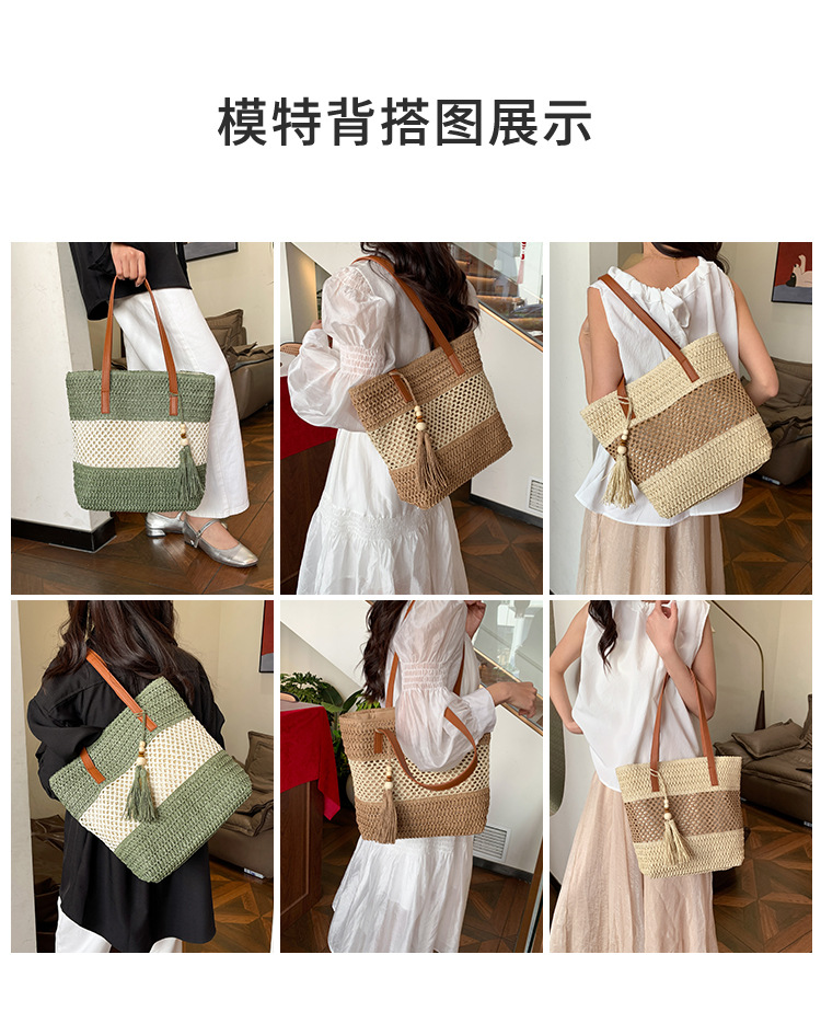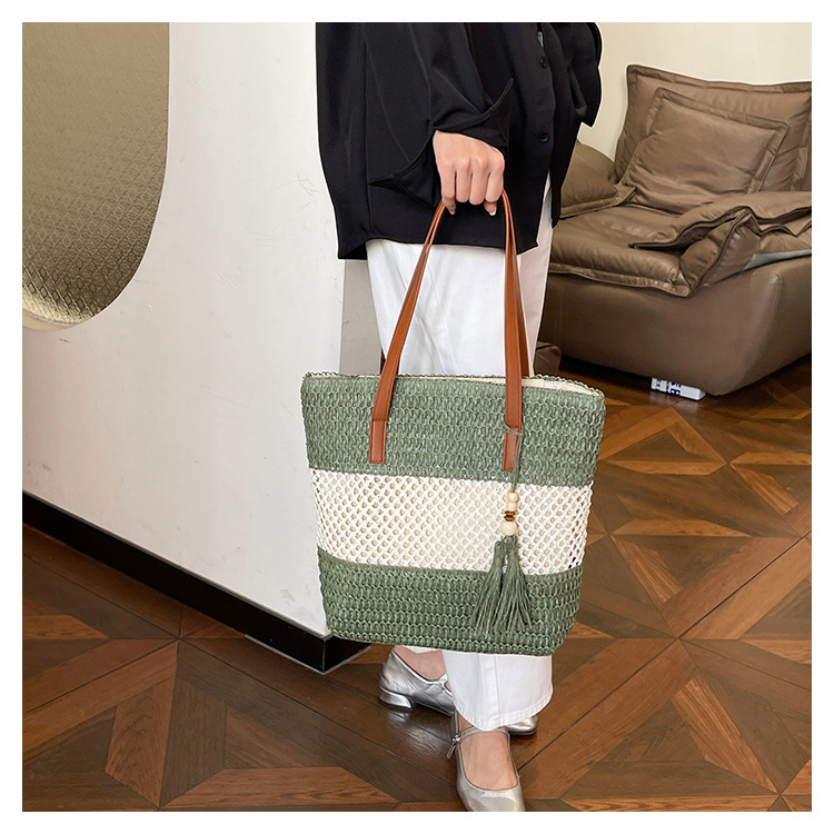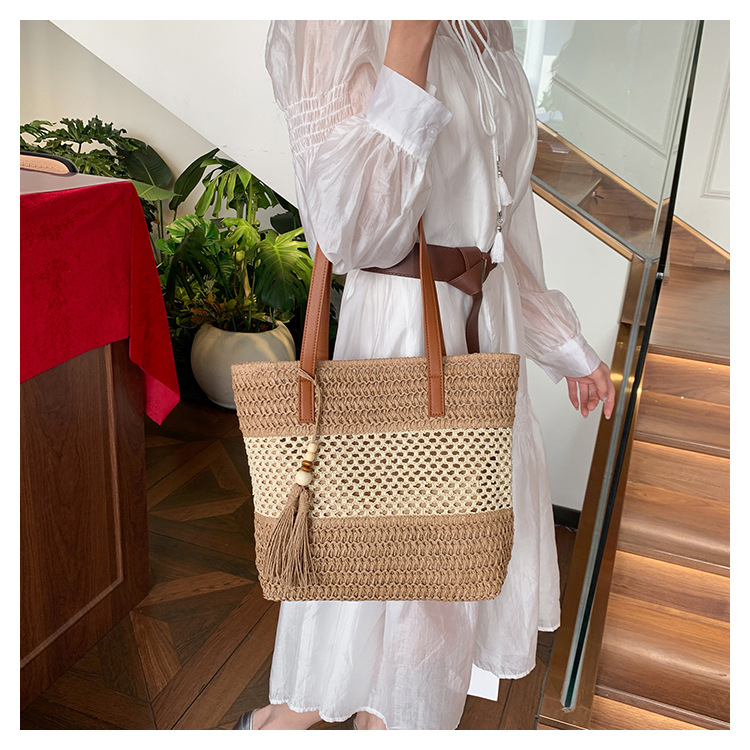 Woven Straw Bag Women's Large Capacity Casual 2025 New Spring and Summer Shoulder Beach Bag for Seaside Holiday Tote Bag