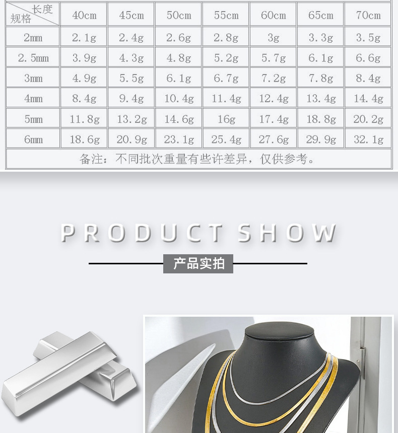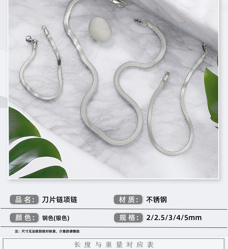 Color: Silver blade chain flat snake bone chain 2.5mm*60cm