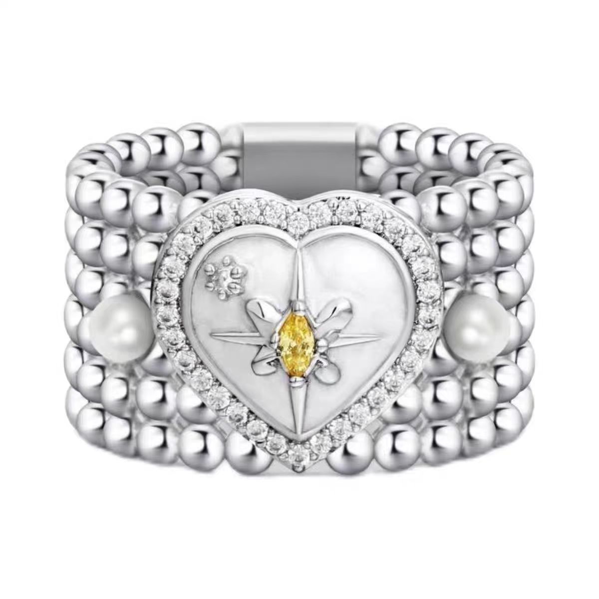 Butterfly Star Ring Women's Zhou Ye Huang Xiaoyun Same Love Pearl Oil Drop Wide Version Ring Opening Adjustable