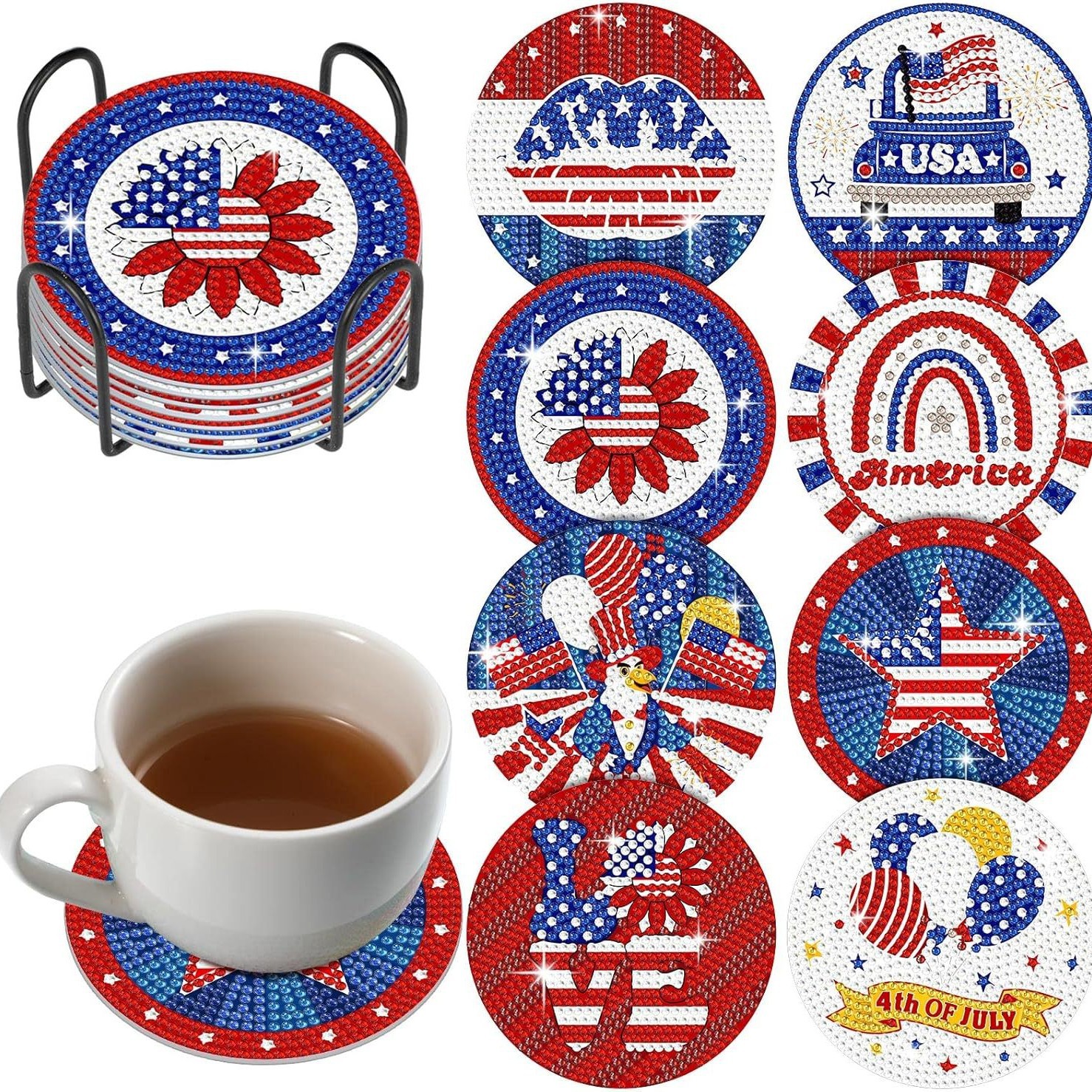 Size: American flag coaster [comes with iron stand and comes with a set of tools for drilling]
