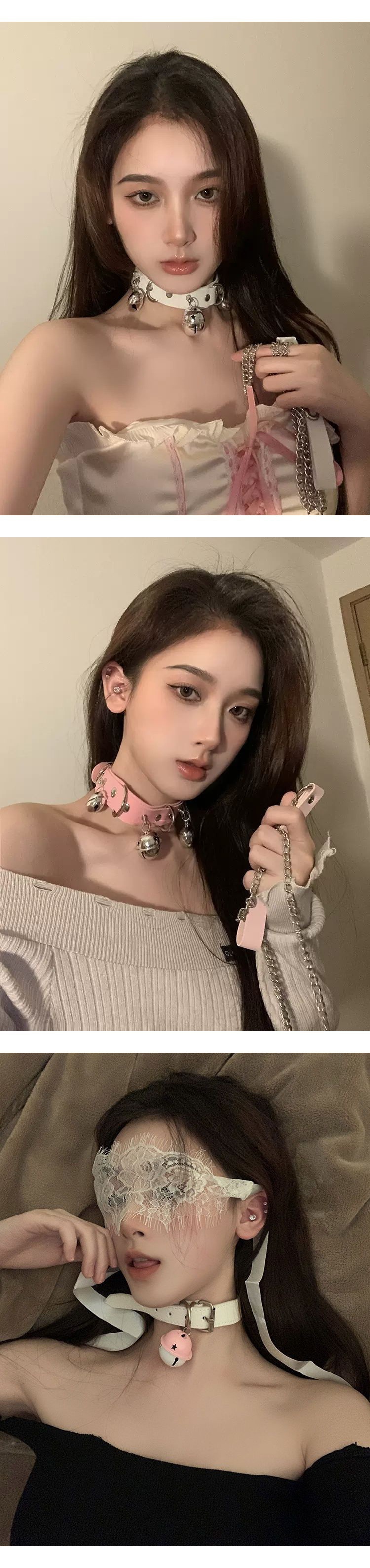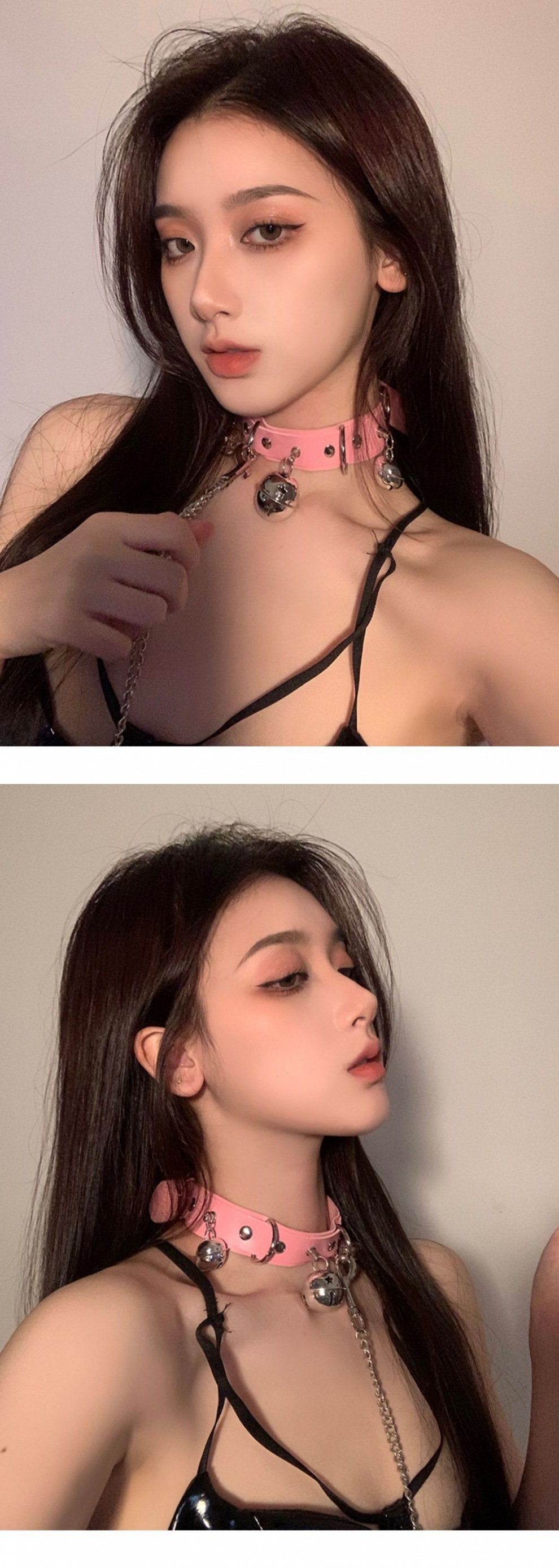 Color: Leather large bell collar-pink-(43cm)