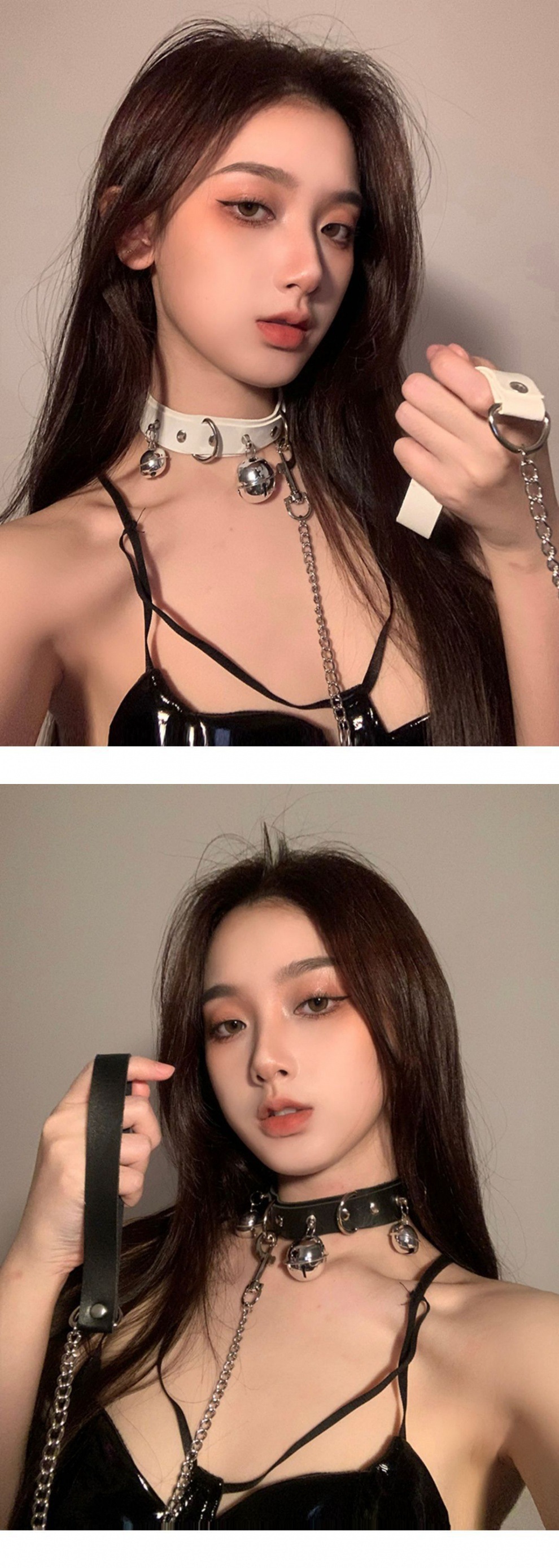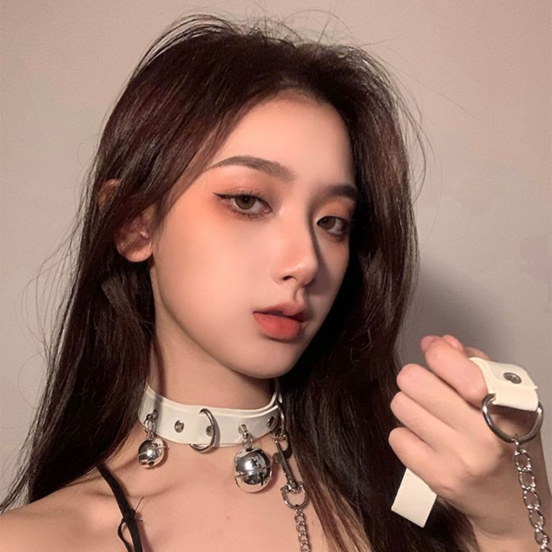 Color: Leather large bell collar-white-(43cm)