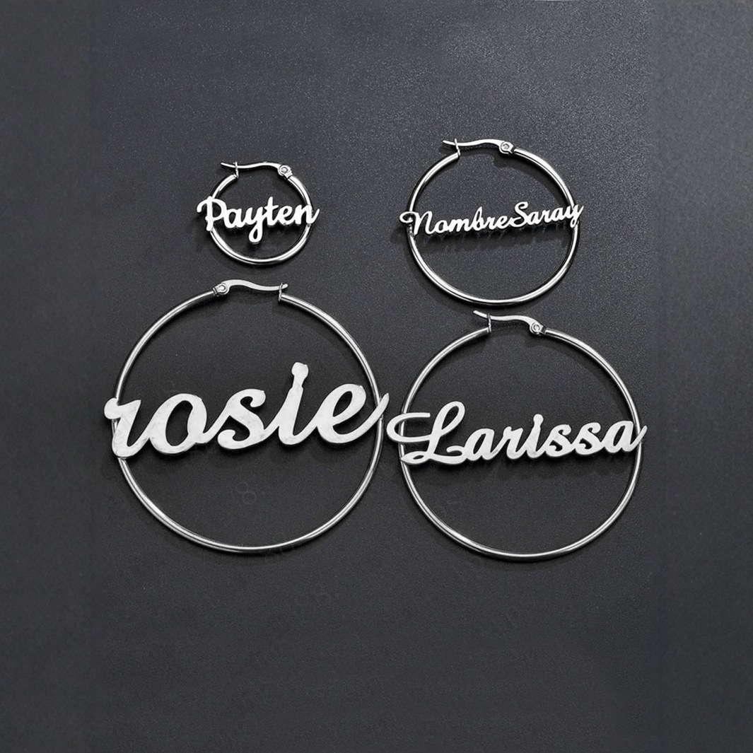 European and American trend jewelry stainless steel DIY letter name earrings exaggerated popular big ear ring earrings a generation of hair