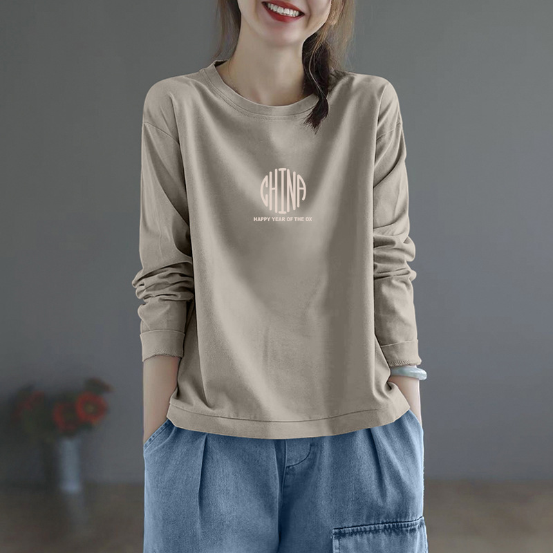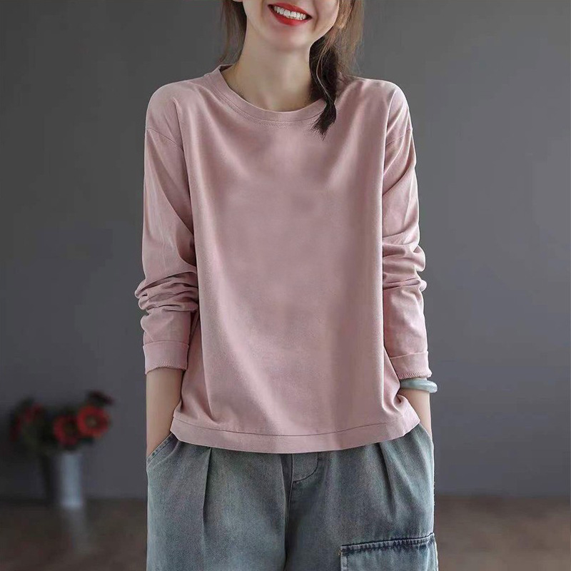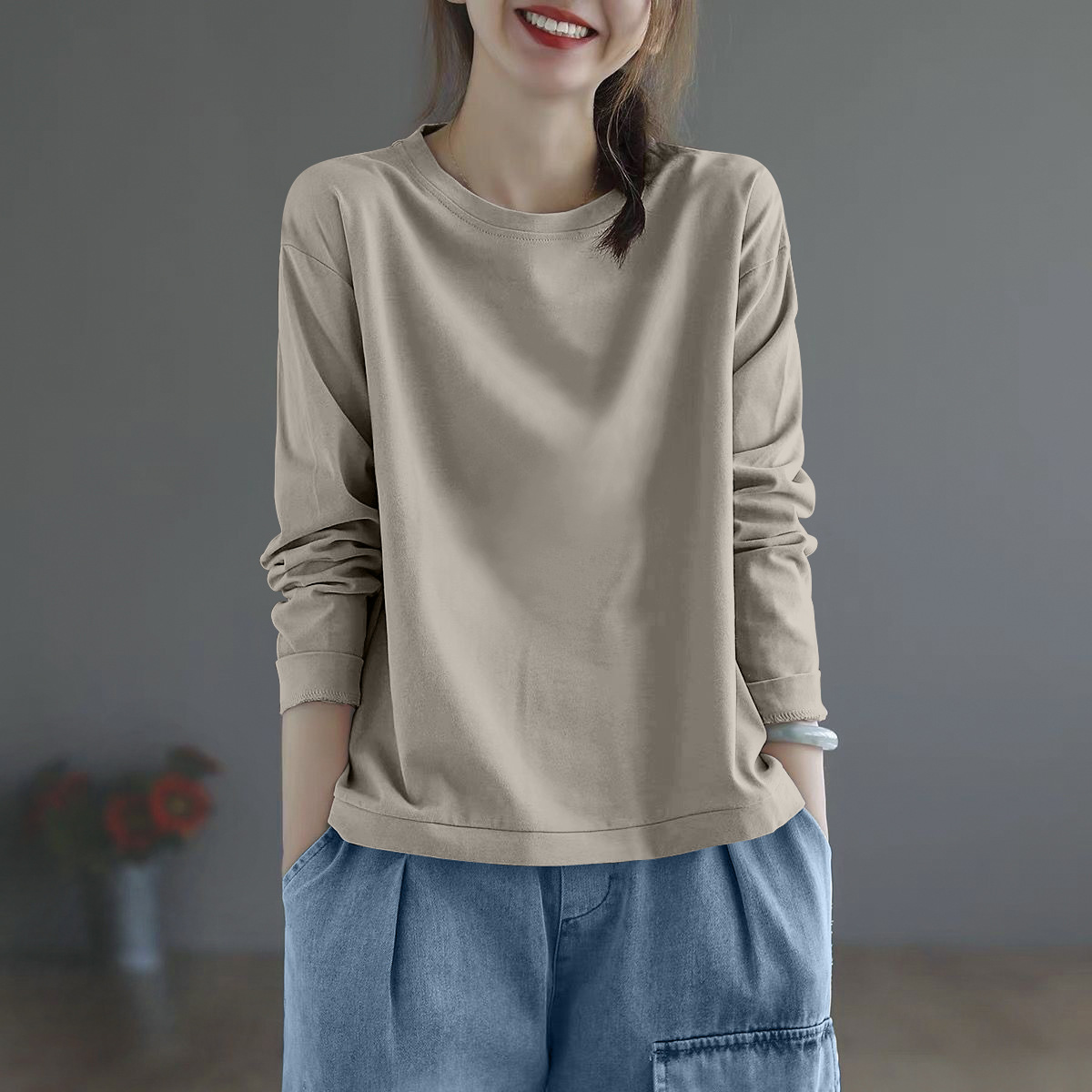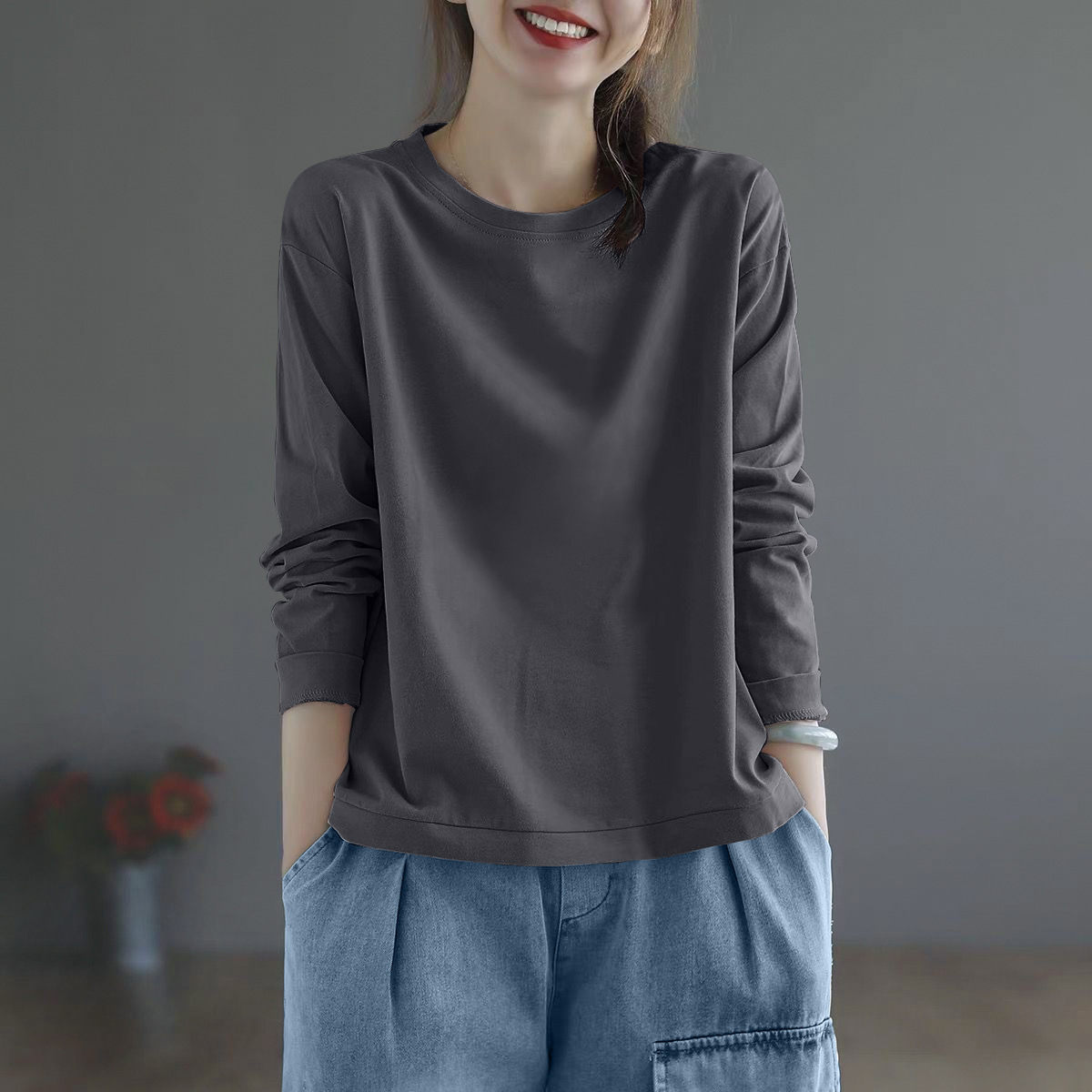Foreign trade export original cut label cotton long-sleeved T-shirt women's all-match age-reducing leisure slim coat autumn