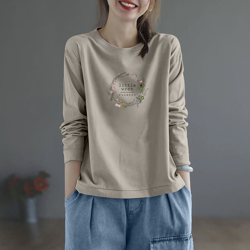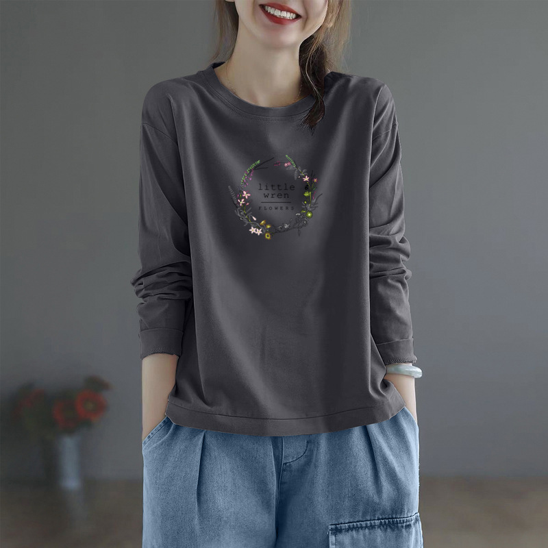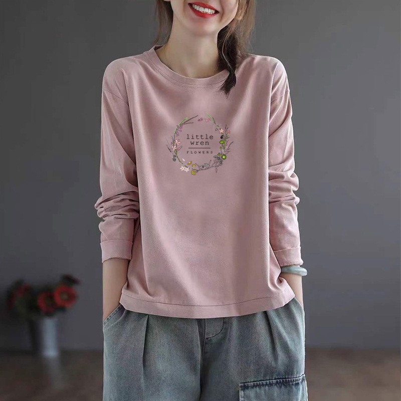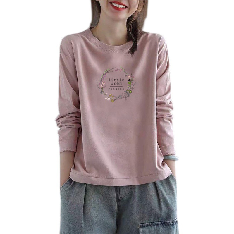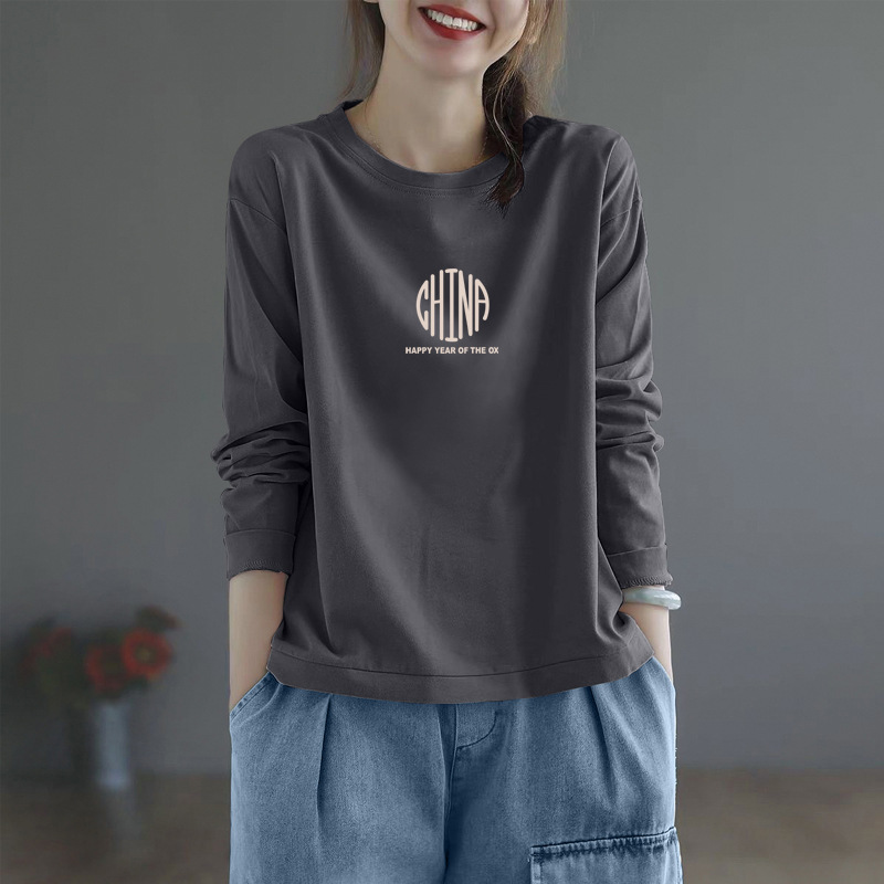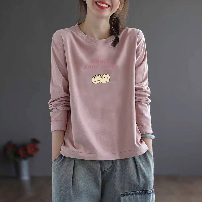 Foreign trade export original cut label cotton long-sleeved T-shirt women's all-match age-reducing leisure slim coat autumn