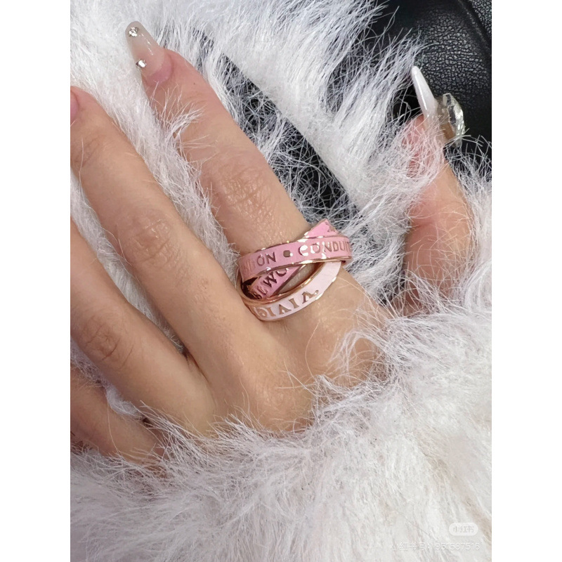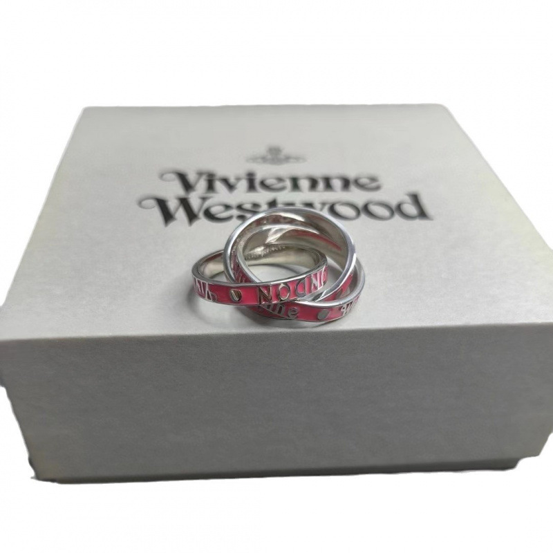 Empress Dowager Enamel Tricyclic Winding Ring Female Vivian Sweet Spicy Saturn Letter 3 Circle Stacked Ring