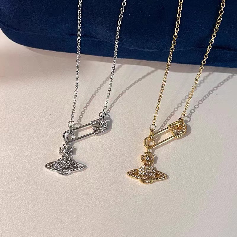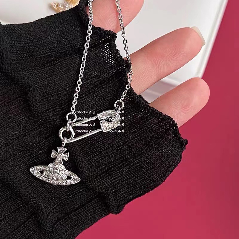 The Queen Mother's Full Diamond Saturn Pin Chain Necklace Women's Hollow Sparkling Paperclip Stacked Clavicle Chain High Version