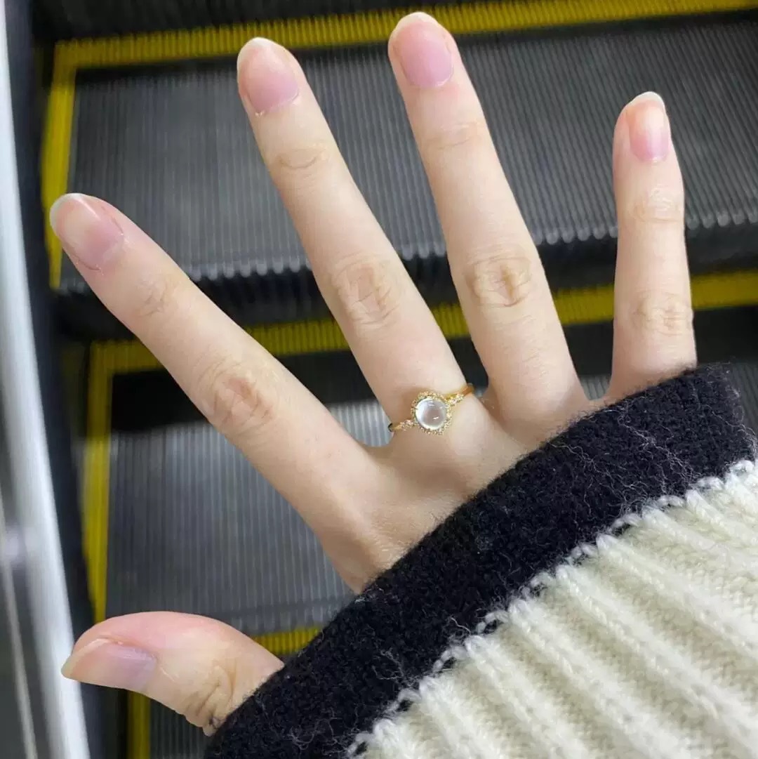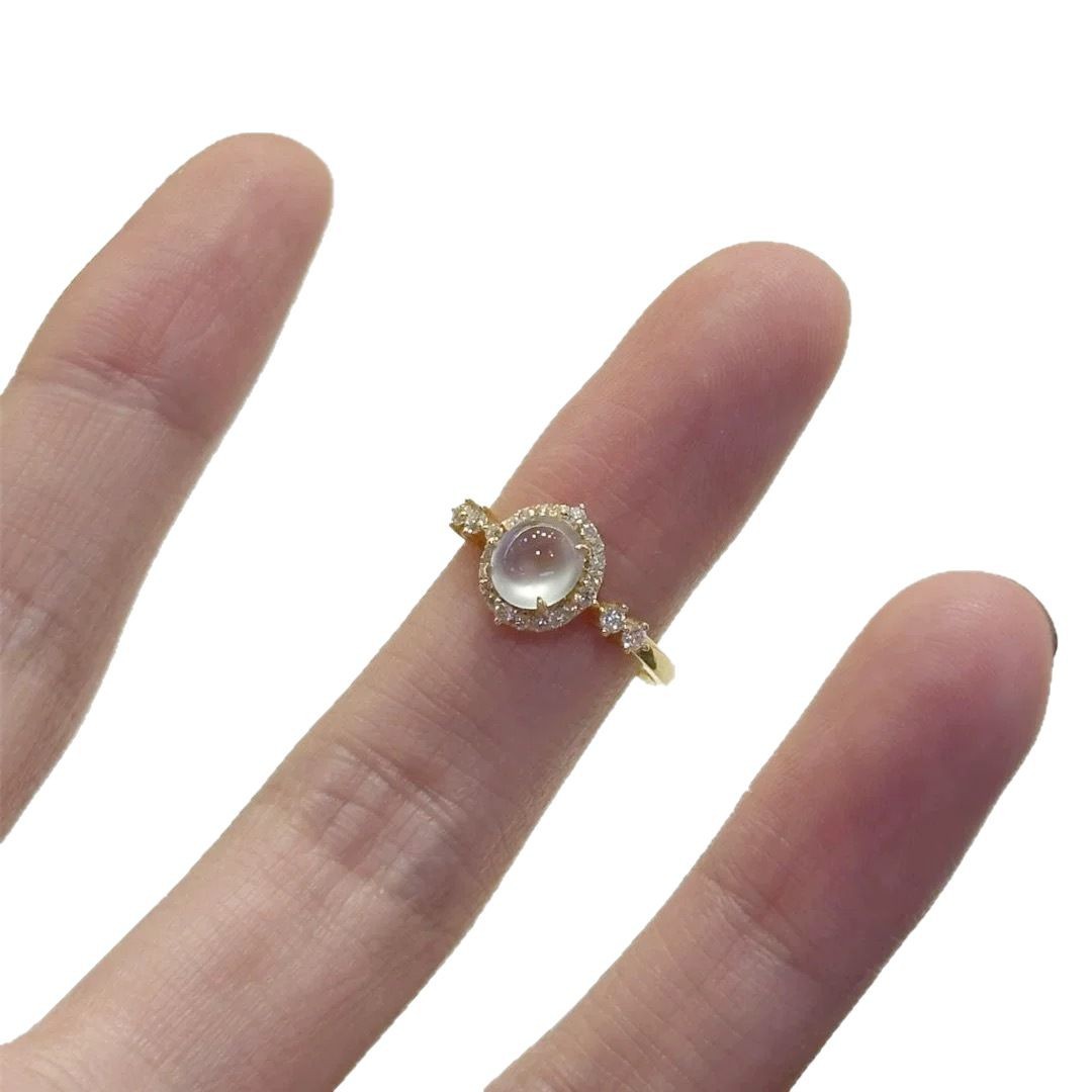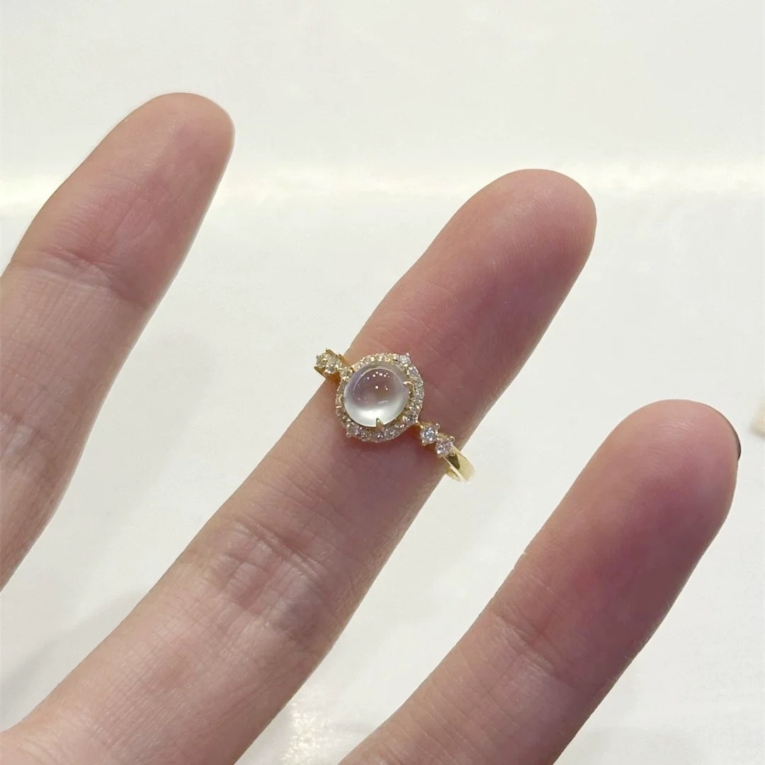 White Ice Imitation Chalcedony Egg Face Ring Women's Opening Gentle Light Luxury Elegant Ring Niche High-end Fashion Finger Ring