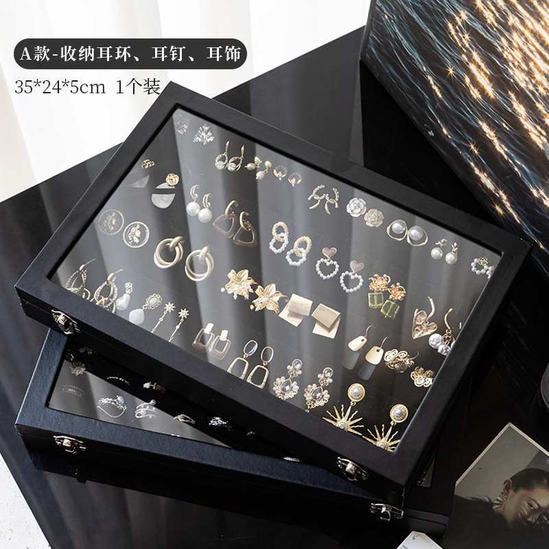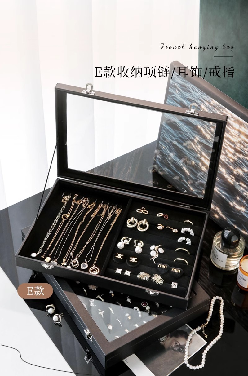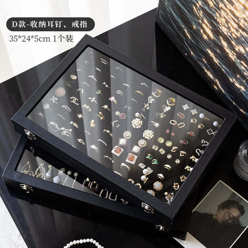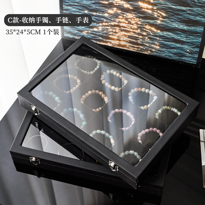 Color: Large black leather hundred-digit ring jewelry box