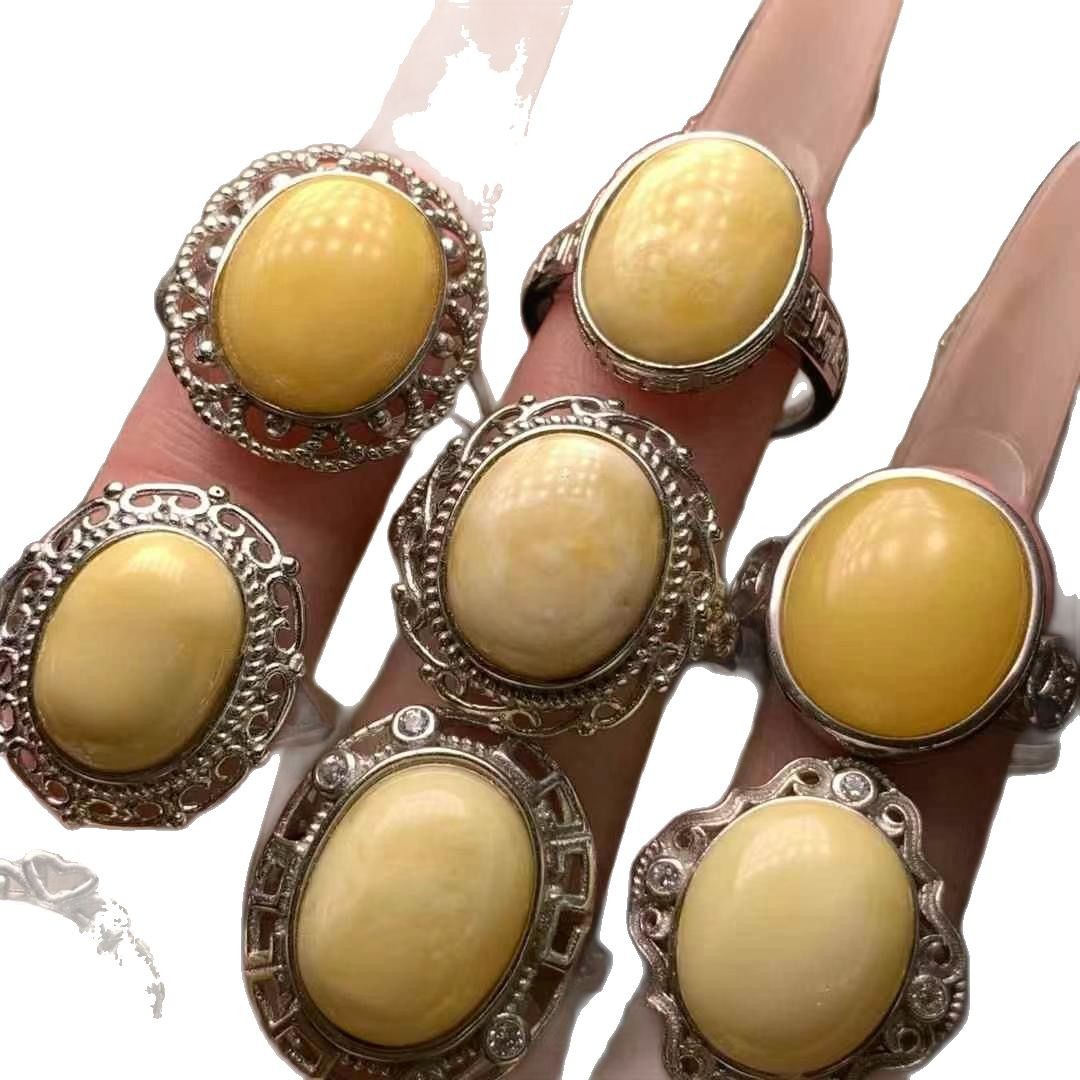 Natural Amber Beeswax White Flower Wax Ring with Full Wax and Clear Texture and Enchanting Inlaid with S925 Silver D