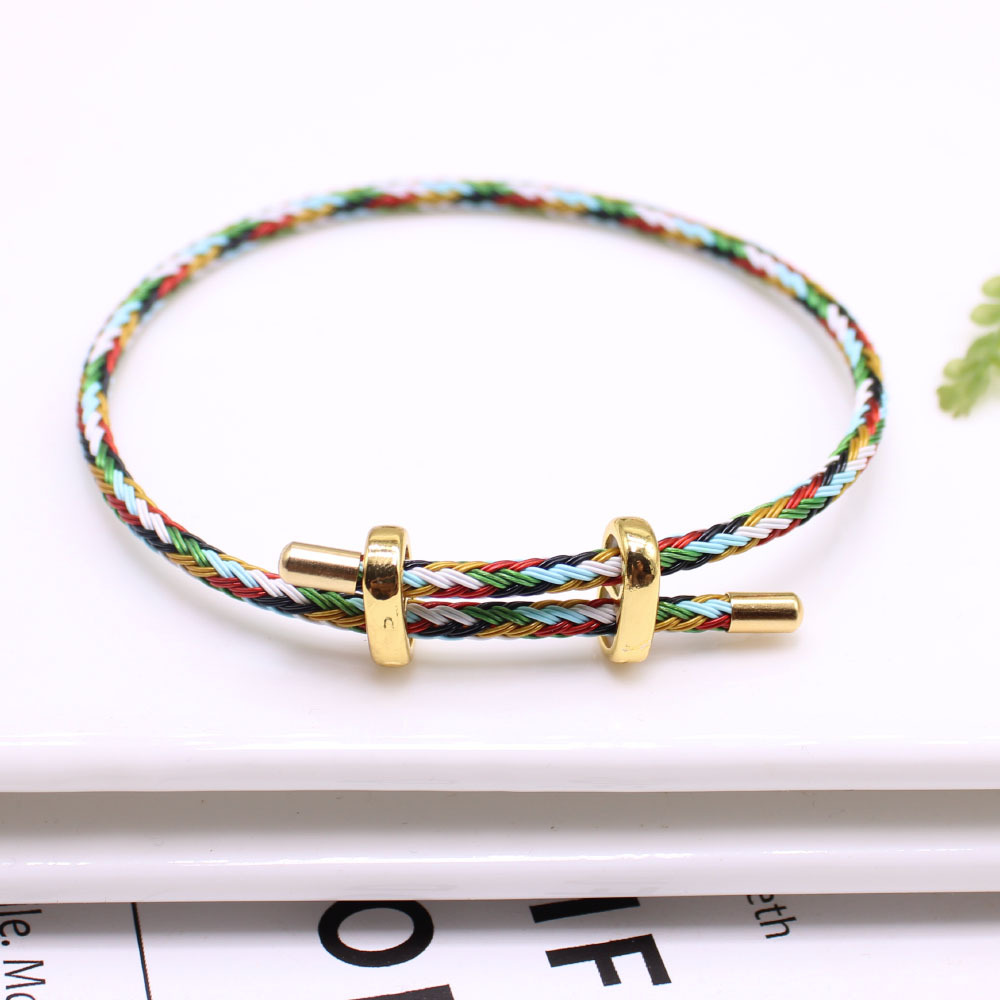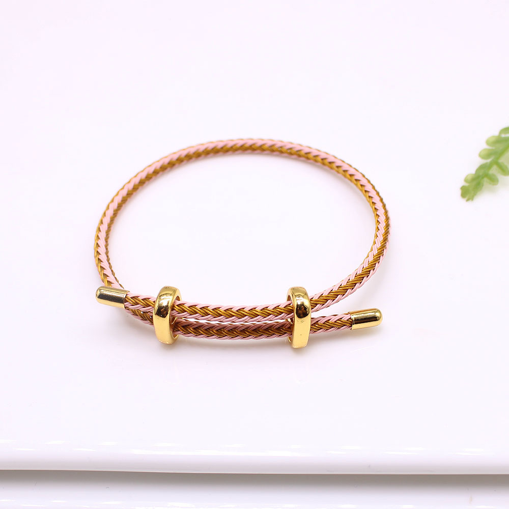 DIY beaded steel wire hand rope 3mm couple diy8 buckle steel wire rope bracelet bidirectional adjustment wear transfer beads