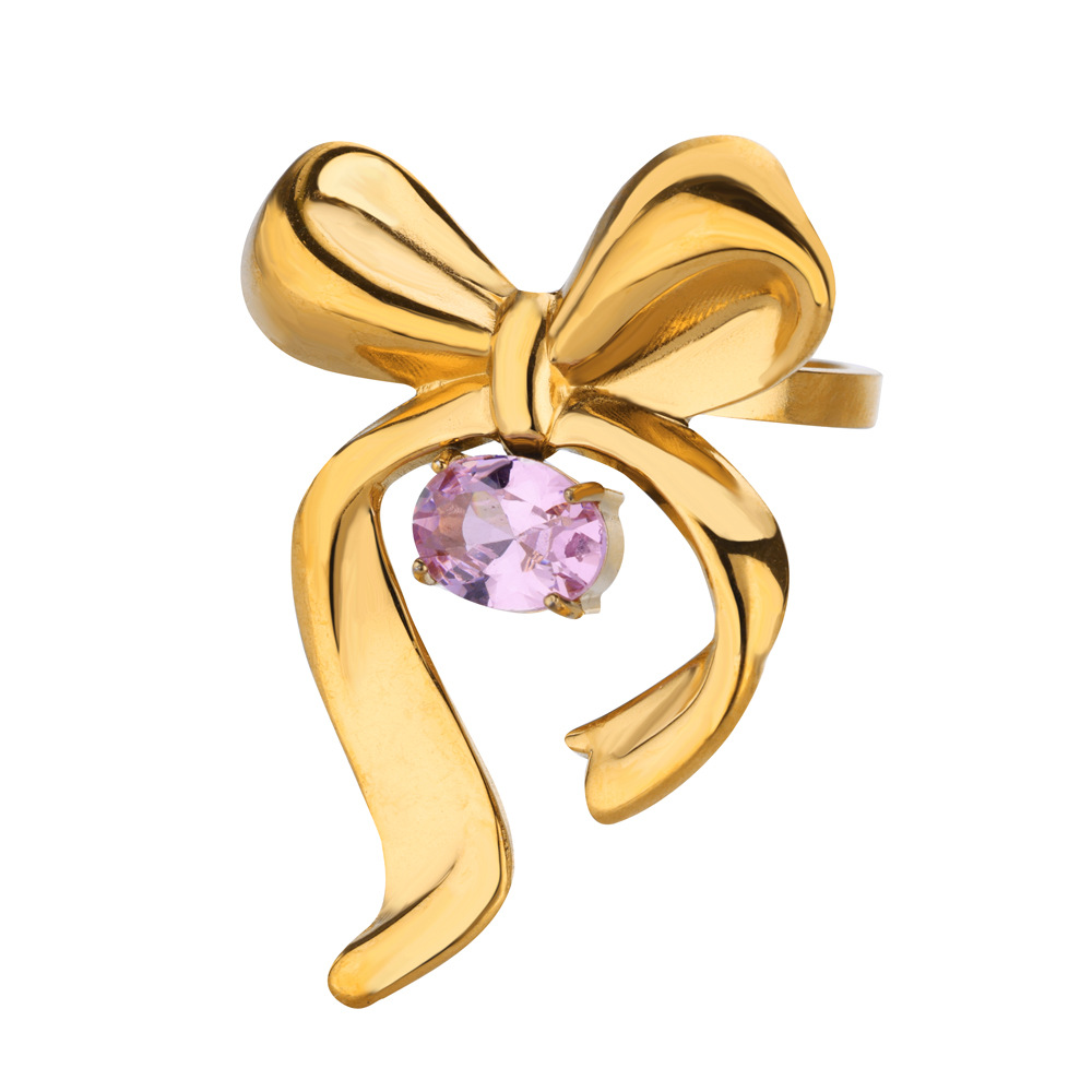 European and American fashion exaggerated irregular ring niche design oil pressure bow love ring plated 18k gold wholesale