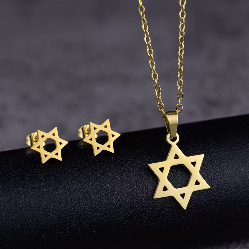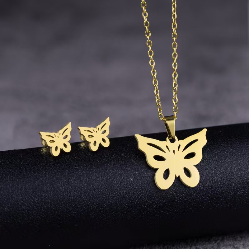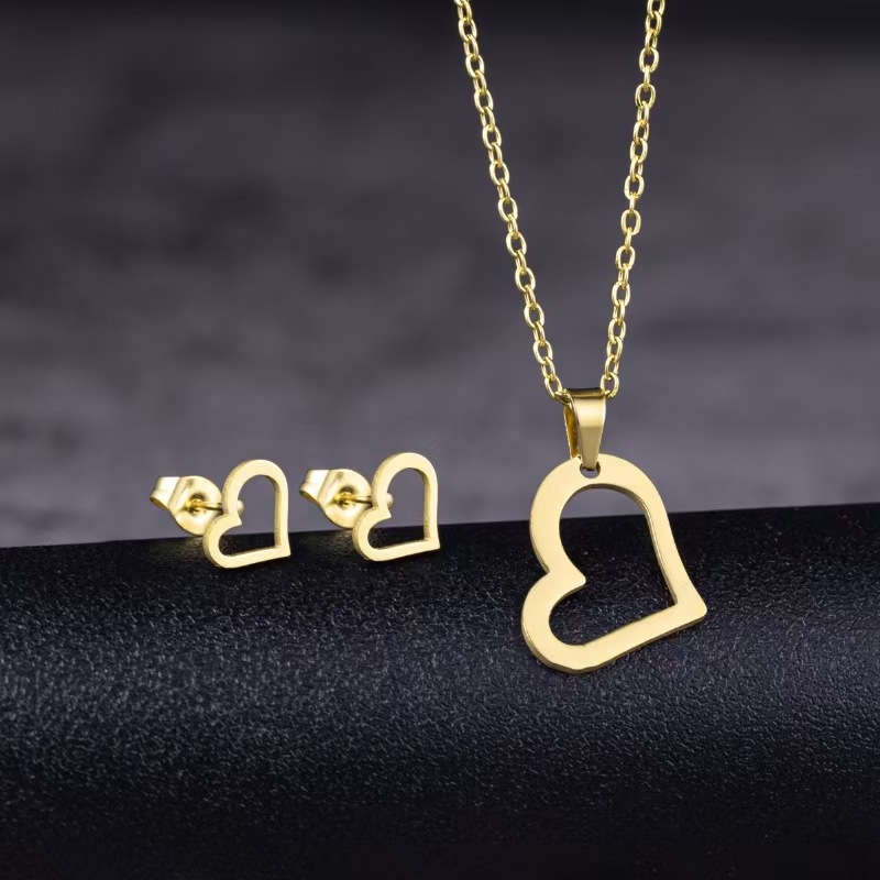 European and American hip-hop accessories stainless steel necklace earrings suit three-piece women's smooth geometric suit necklace