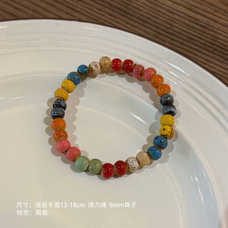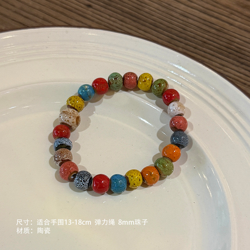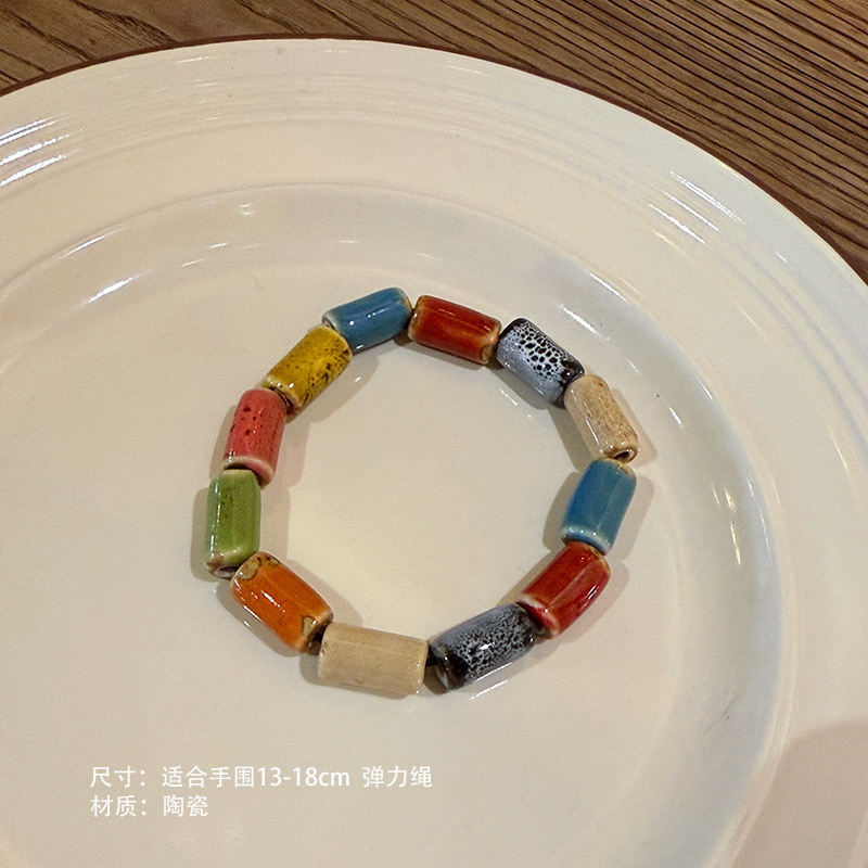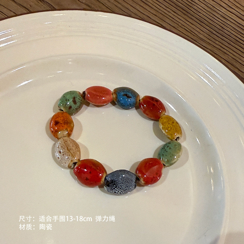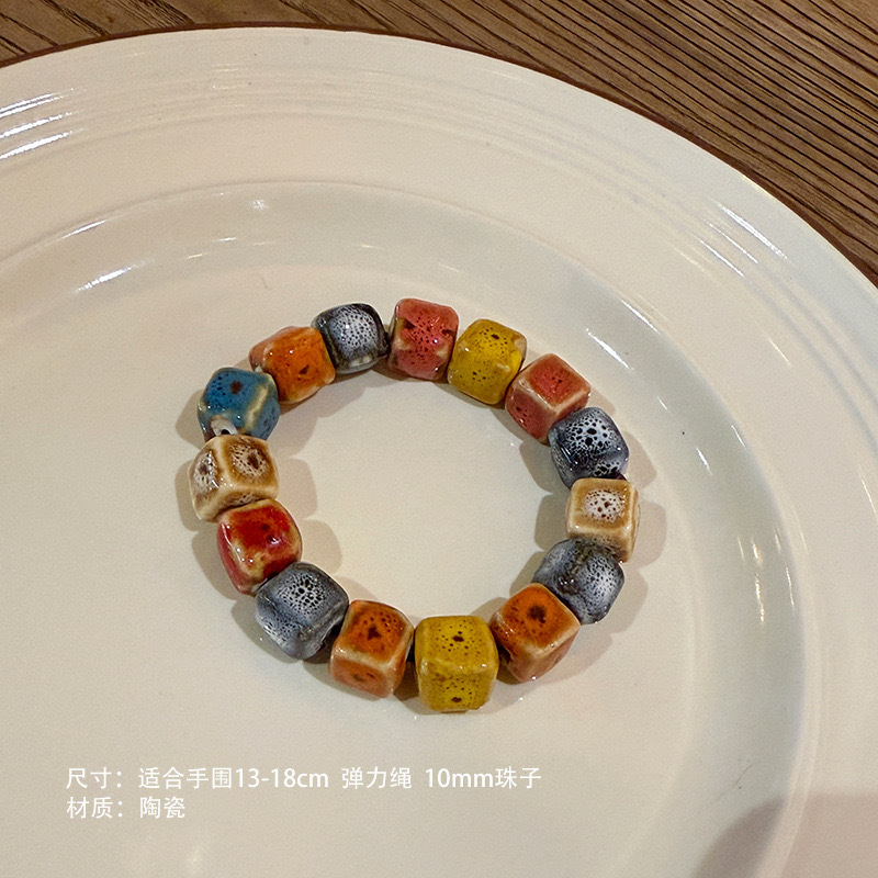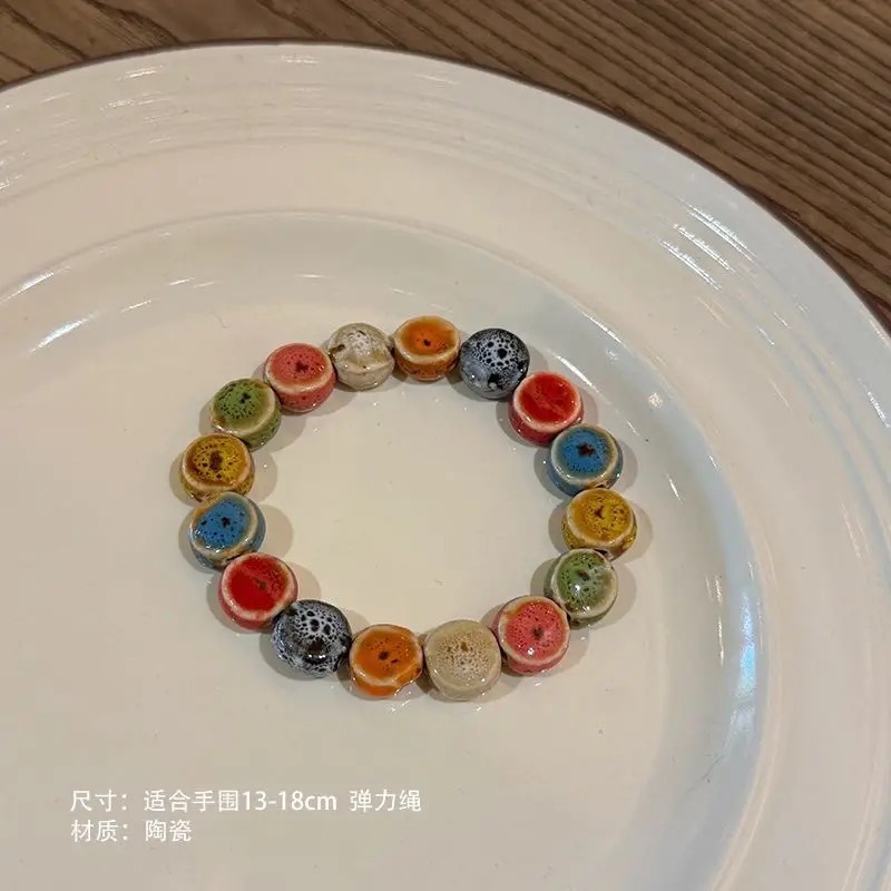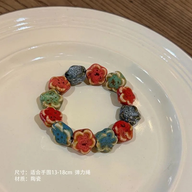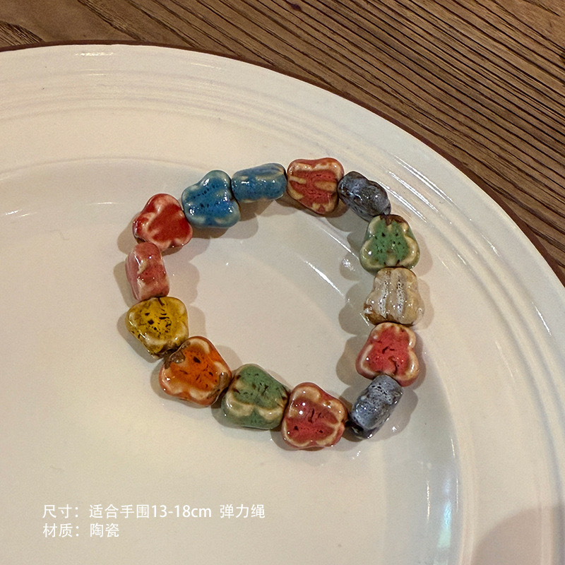 Ethnic Style Floral Glaze Ceramic Geometric Bead Heart Bracelet Zen Colorful Unisex Bracelet Women's Geometric Ceramic Bracelet