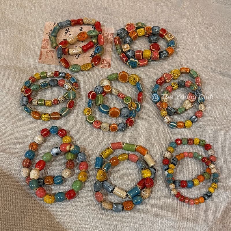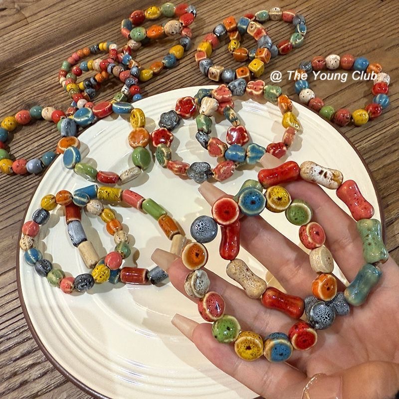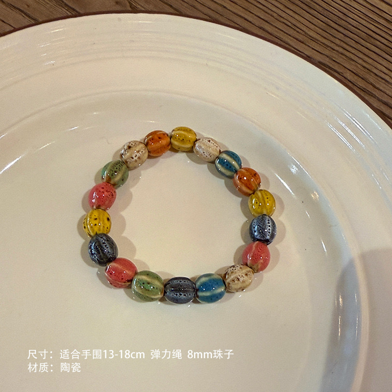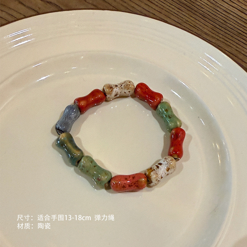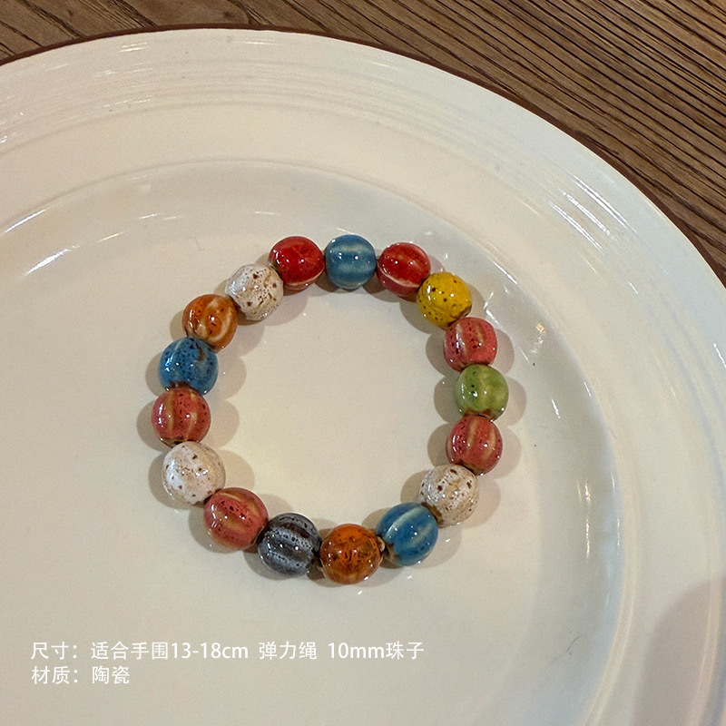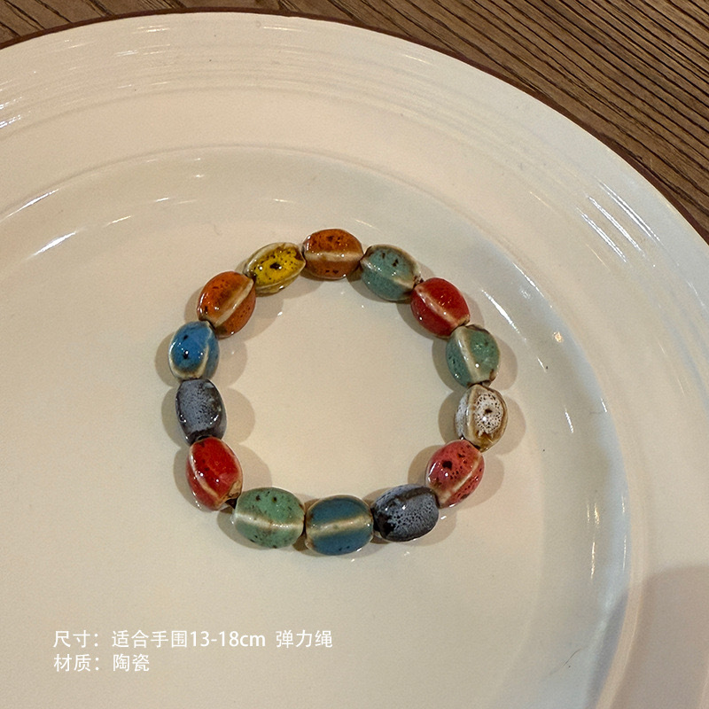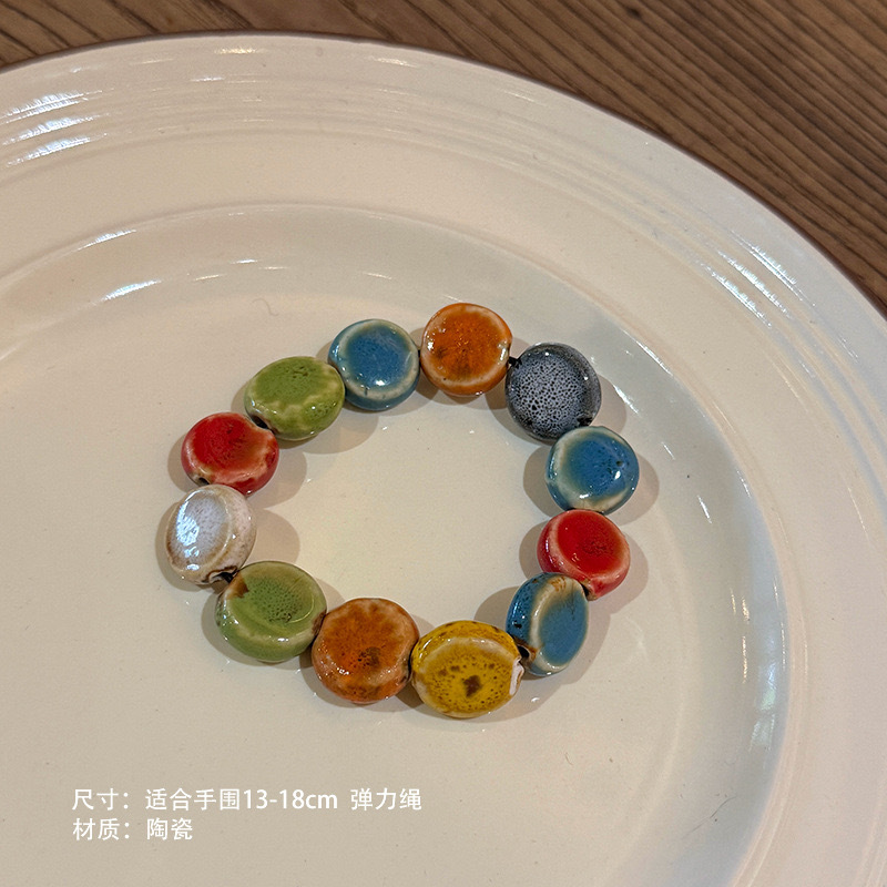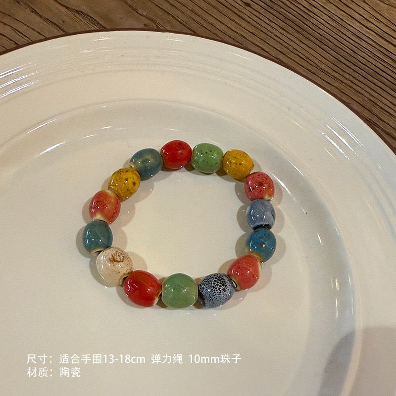Ethnic Style Floral Glaze Ceramic Geometric Bead Heart Bracelet Zen Colorful Unisex Bracelet Women's Geometric Ceramic Bracelet