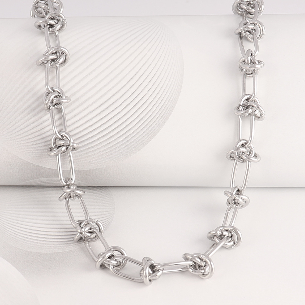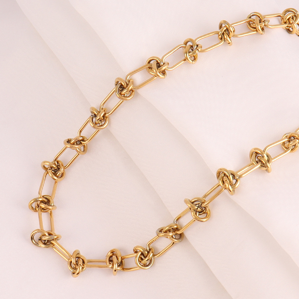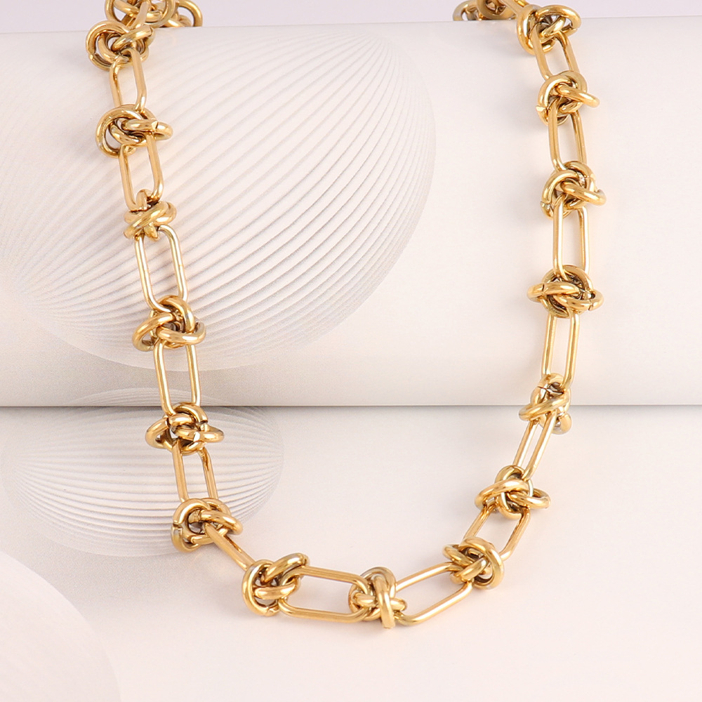 European and American Cross-border Titanium Steel Color-free Necklace Hip-hop Fashion Simple 18K Gold Stainless Steel Knot Chain Necklace