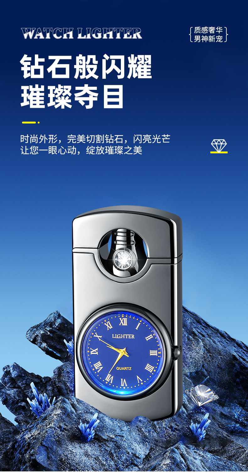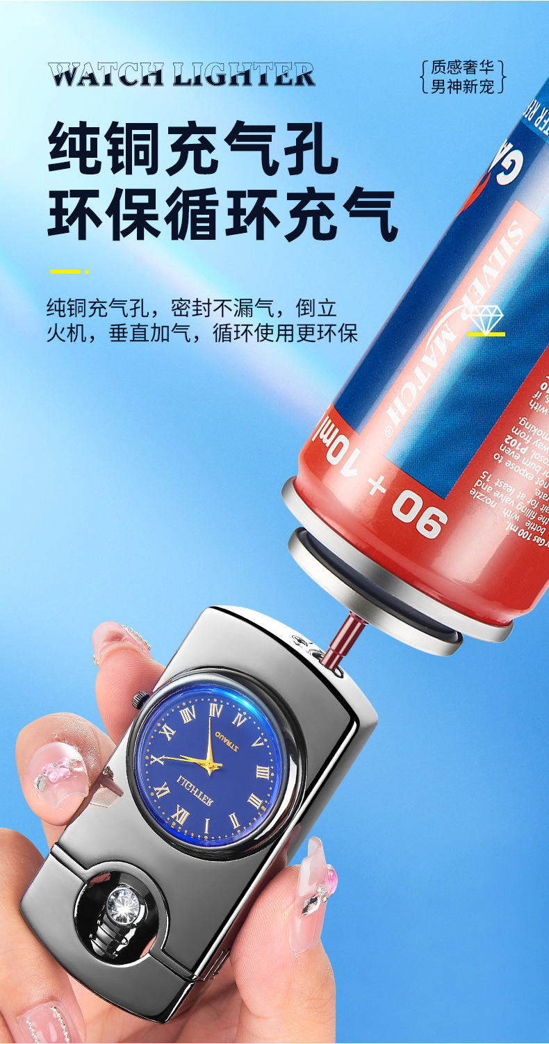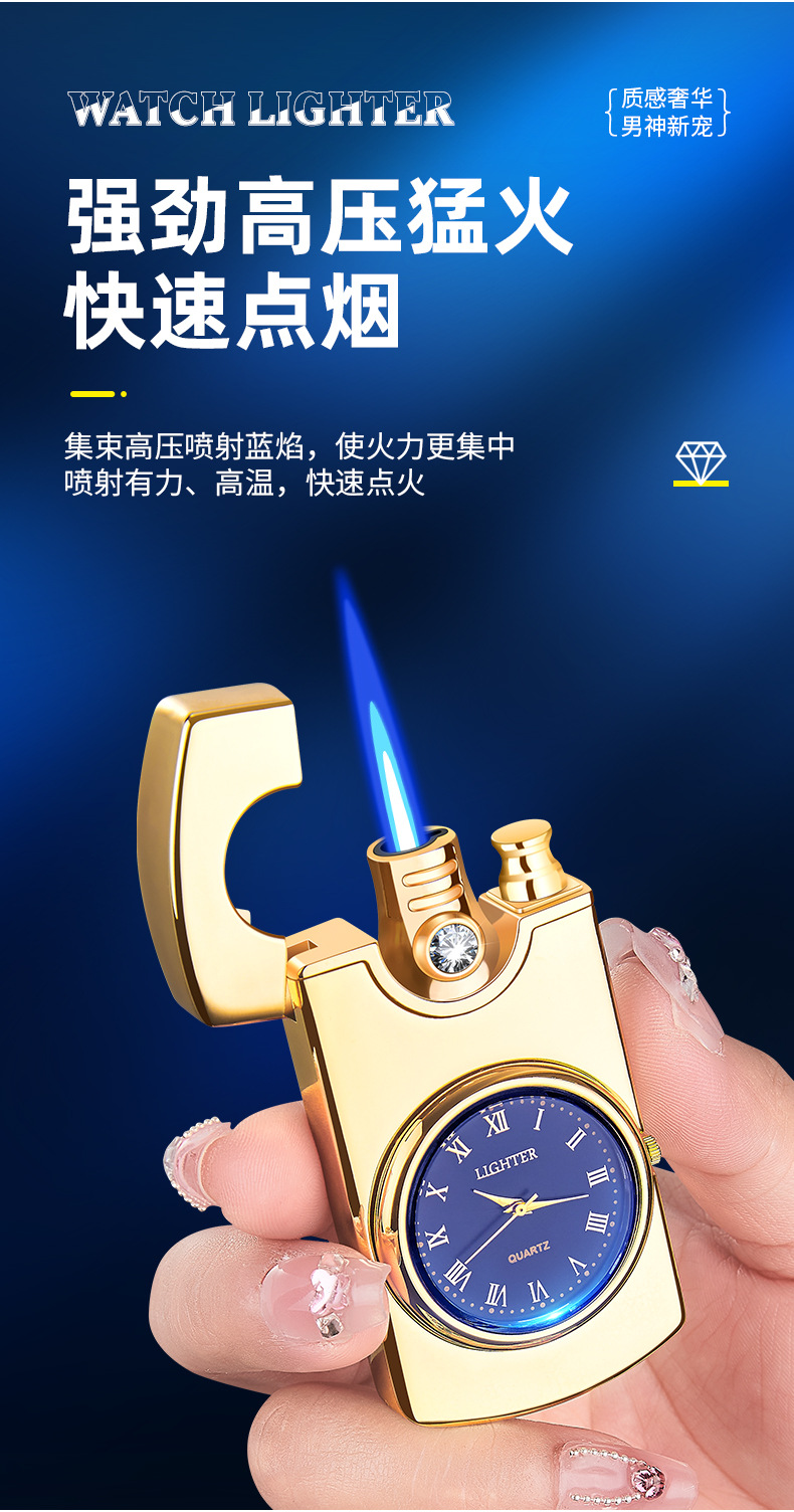 Watch Lighter Direct Blue Flame Creative Cool Dial Fashion Dial Strong Blue Flame Shiny Diamond Creative