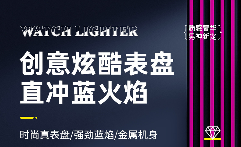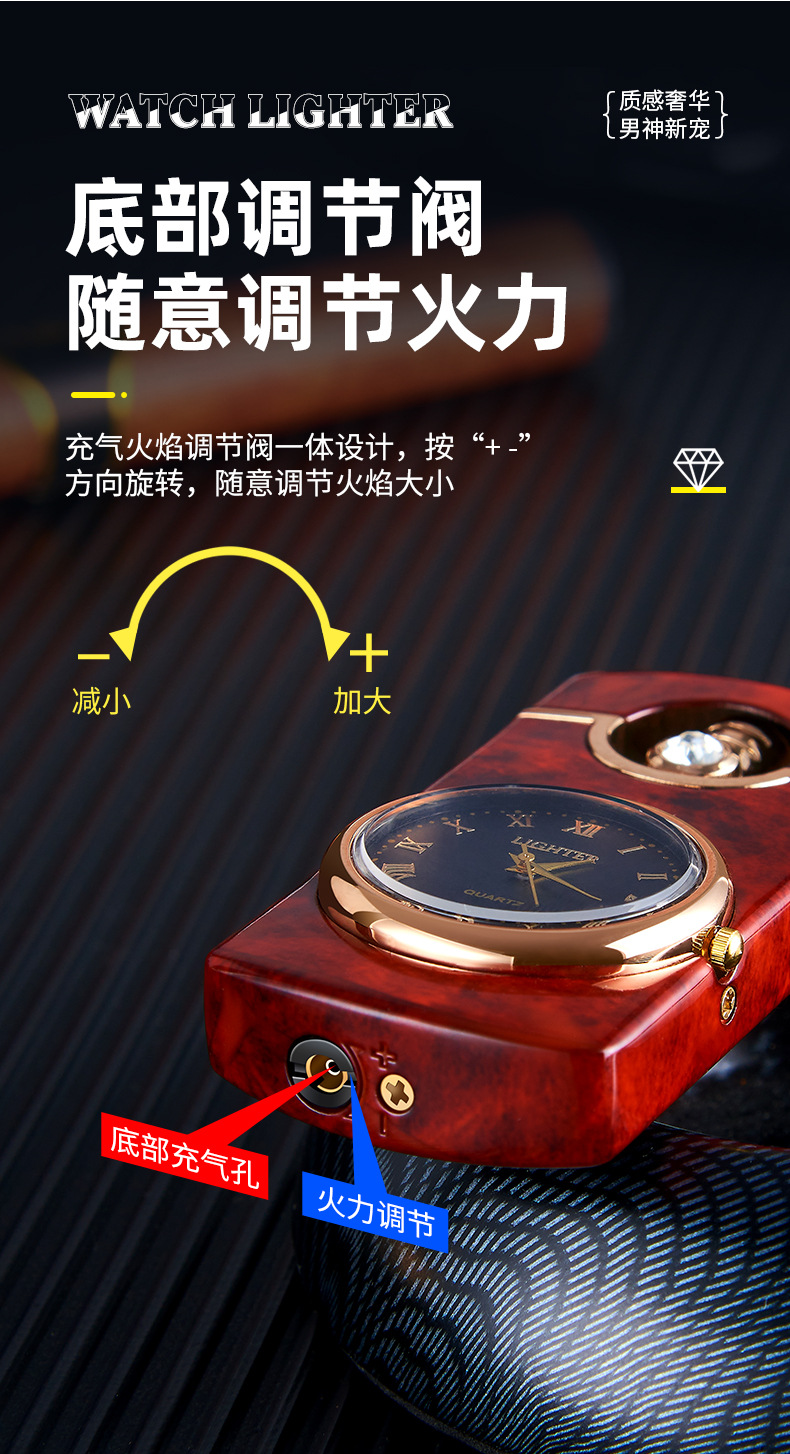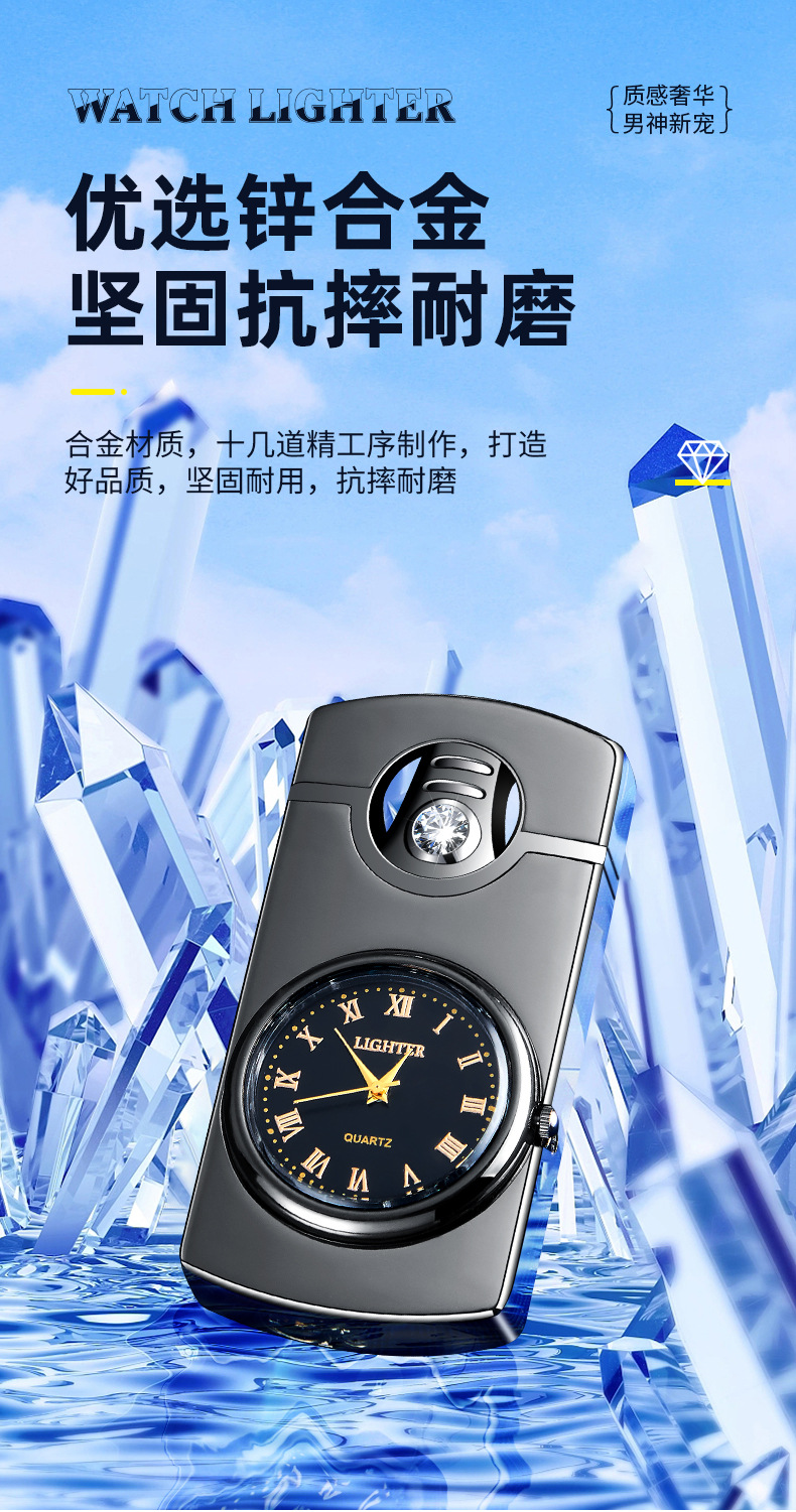 Watch Lighter Direct Blue Flame Creative Cool Dial Fashion Dial Strong Blue Flame Shiny Diamond Creative