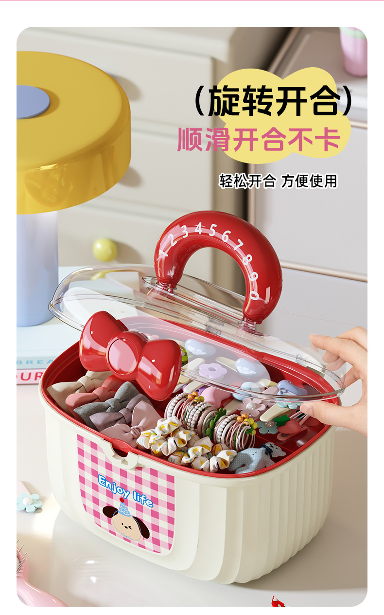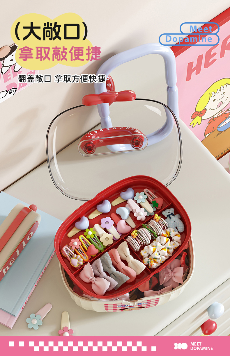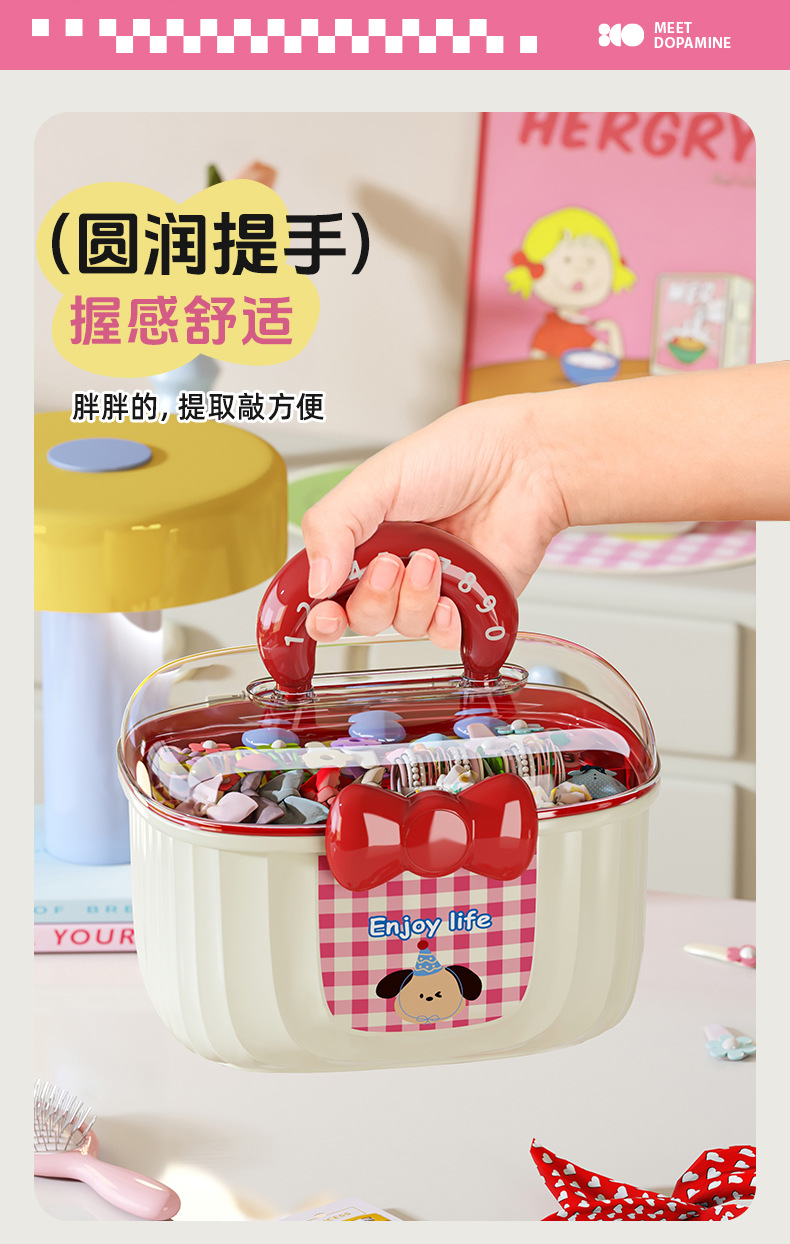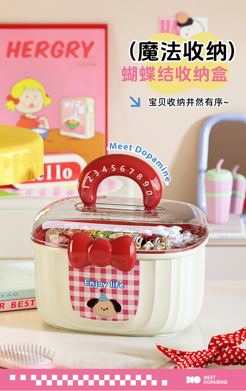 Bow Storage Box Dopamine Double-Layer Hair Accessories Storage Rubber Rib Jewelry Multi-Functional Cute Desktop Finishing Box
