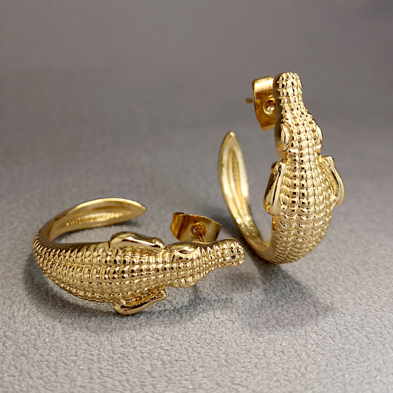 Cross-border Europe and the United States hot selling creative retro crocodile design ring earrings party personality earrings