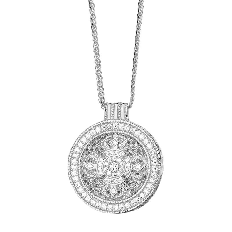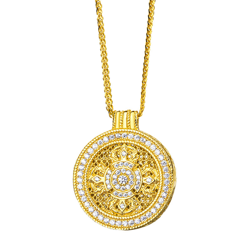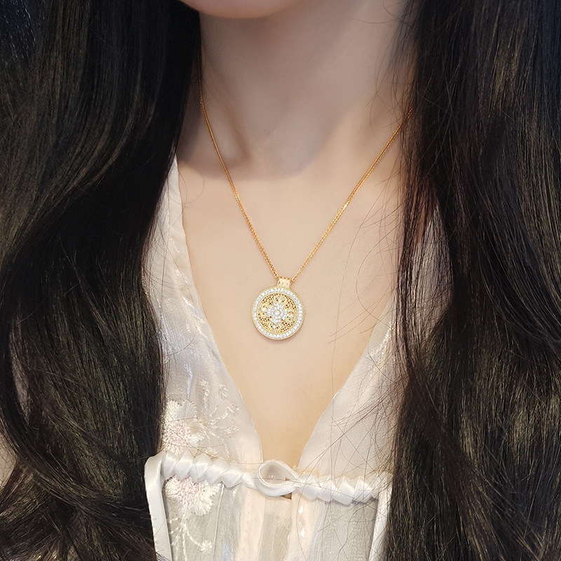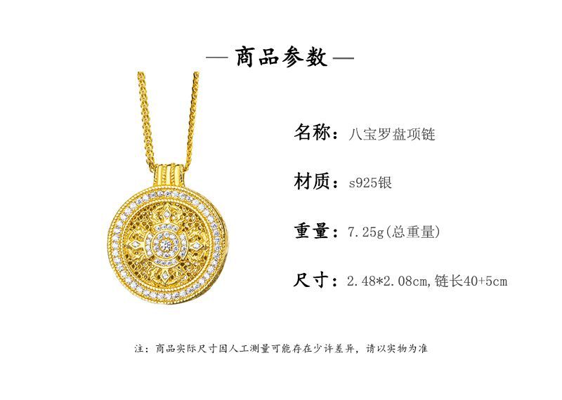 S925 Sterling Silver Disc Diamond Pestle Necklace Women's Ancient Method Diamond-encrusted Gold Color Eight Treasure Compasses Necklace Pendant Gold Shop Same