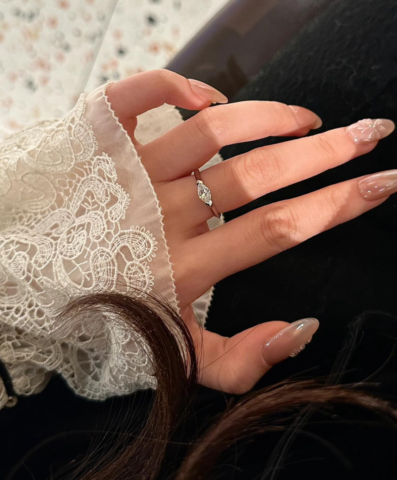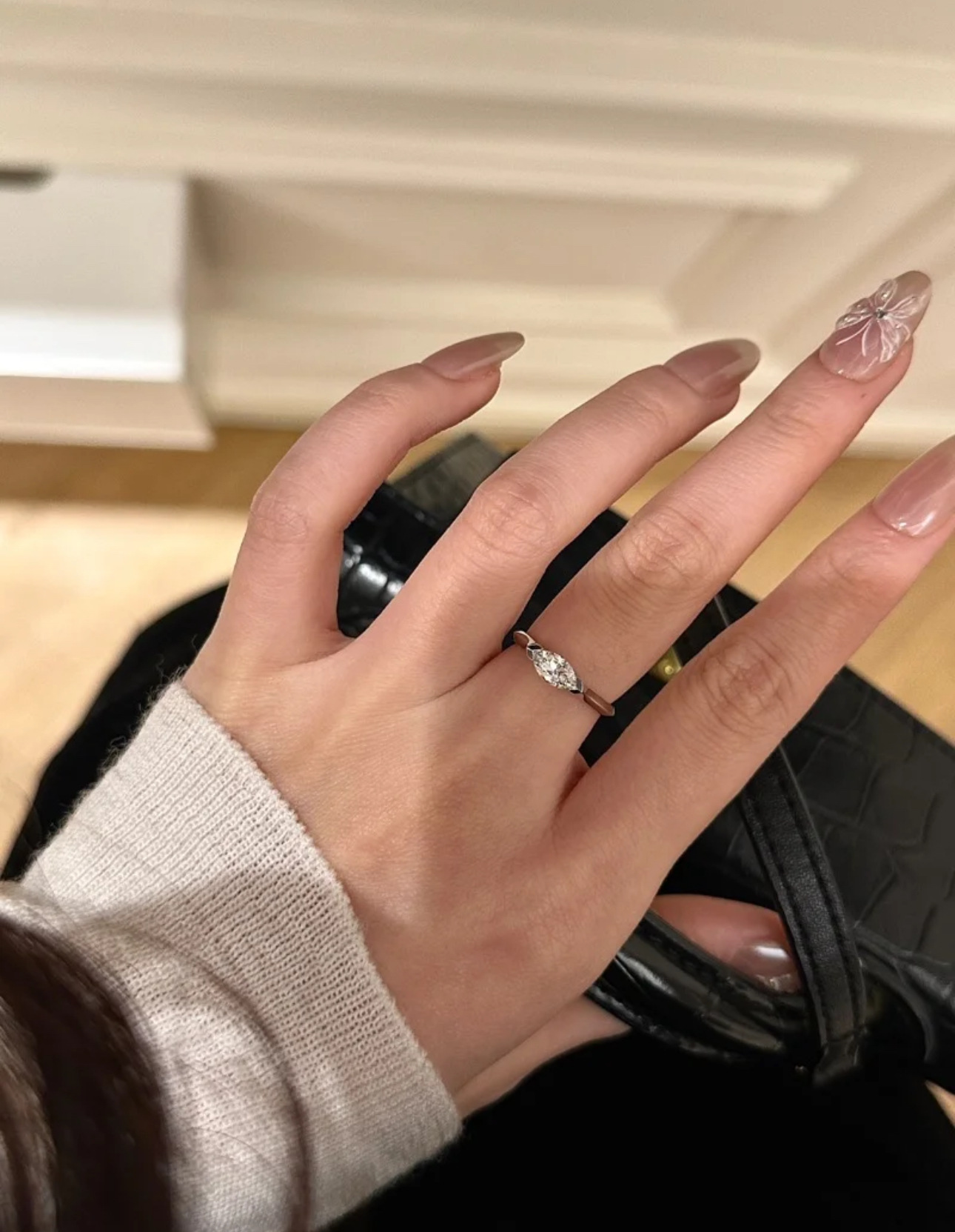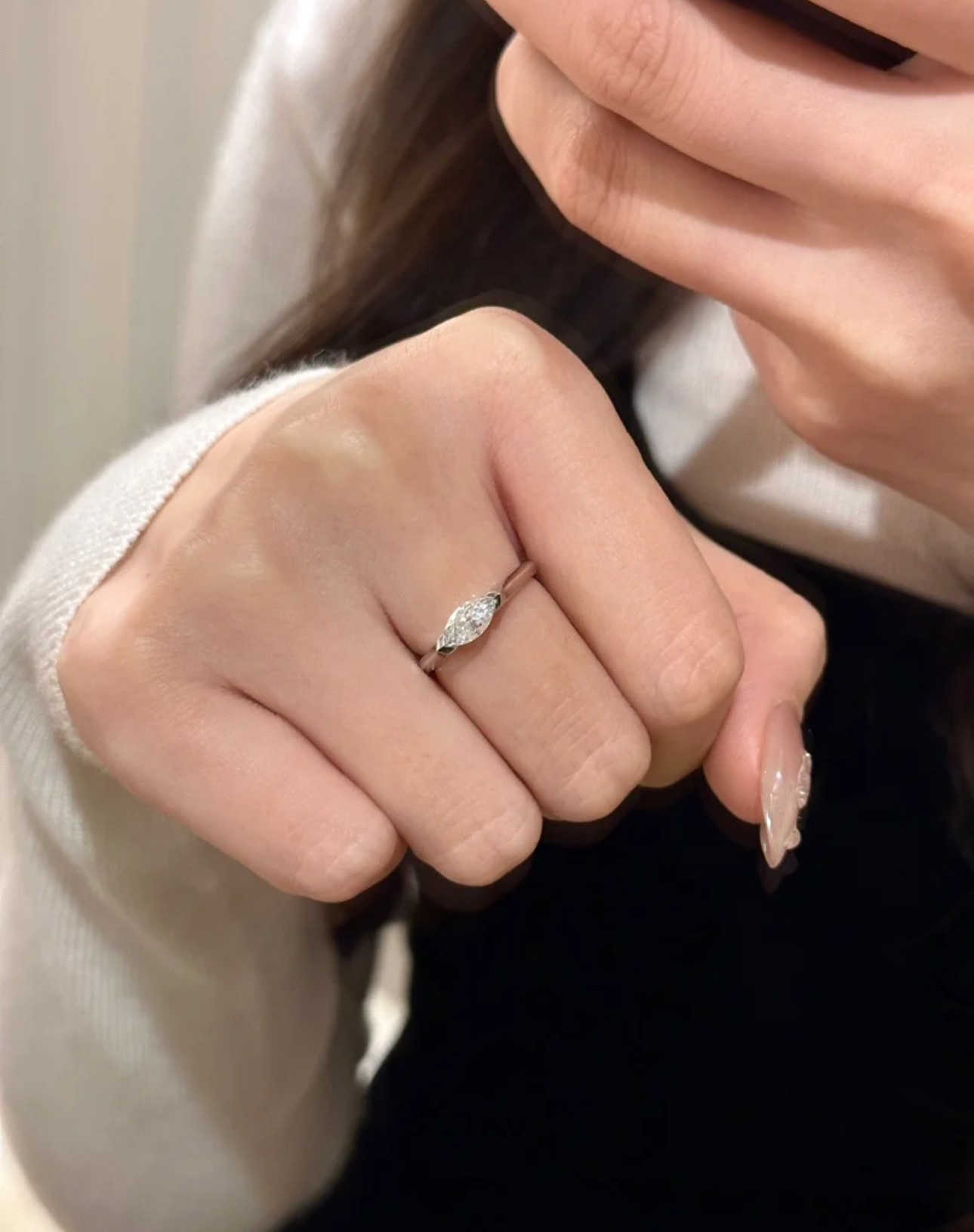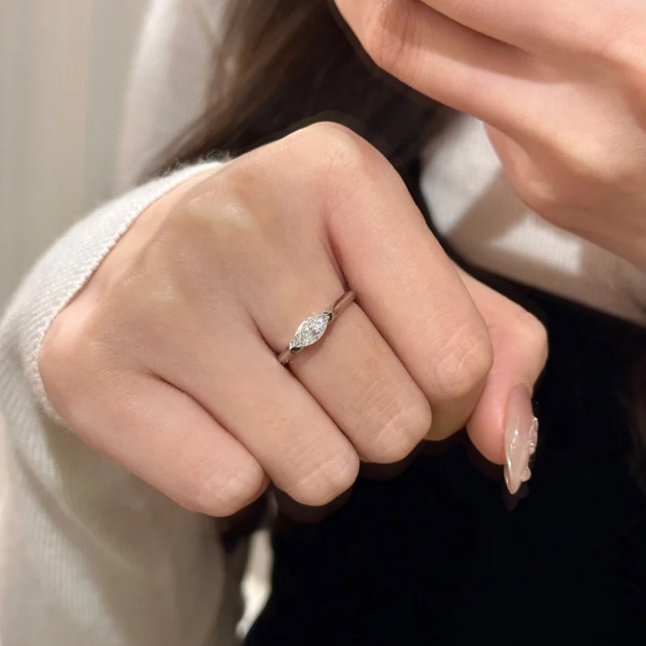 New Shaped Horse Eye Diamond Ring for Women's Niche Design Open Ring Simple All-match High-end Gifts for Girlfriend