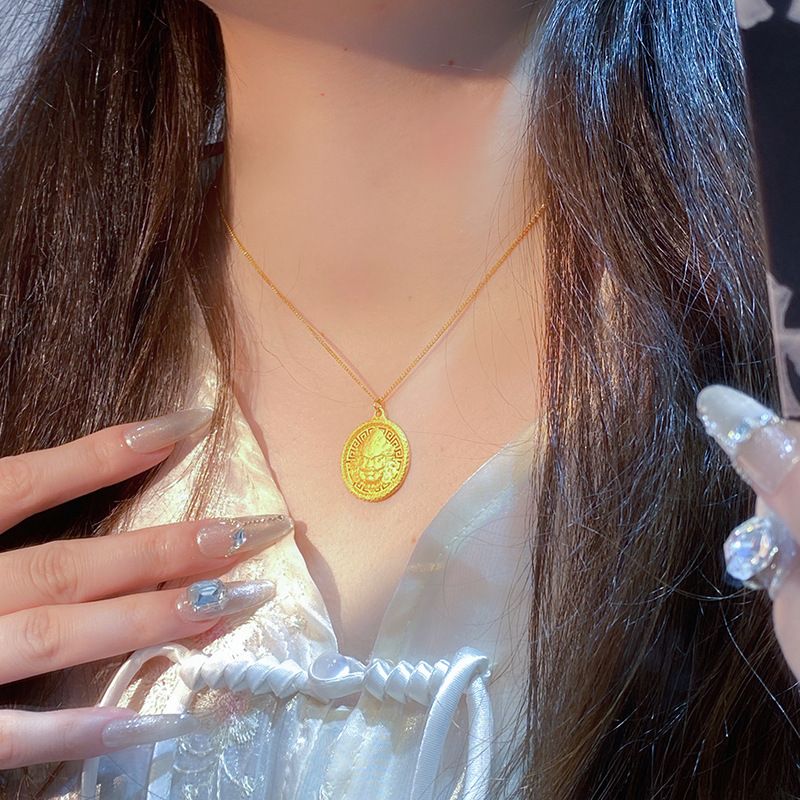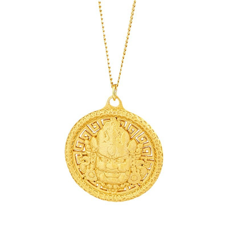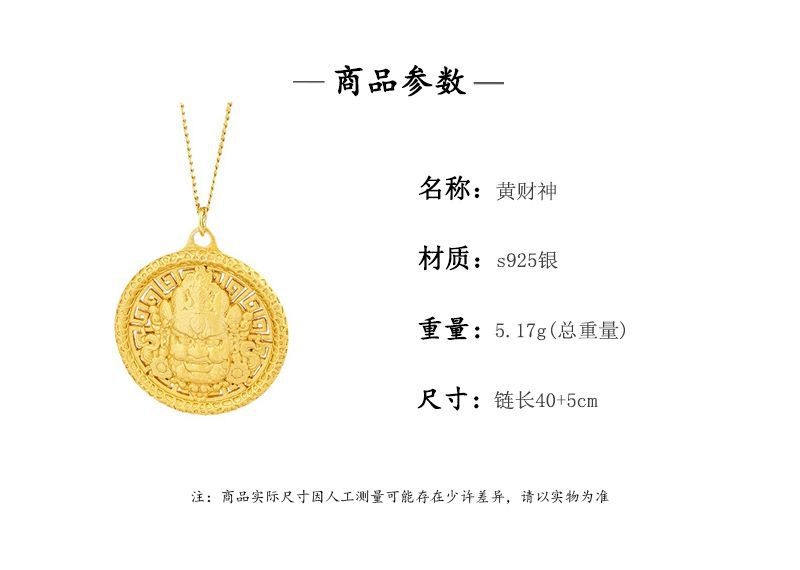 S925 Sterling Silver Yellow God of Wealth Pendant Men's and Women's Zakilam Disc Necklace Lucky New Chinese Gold Shop Same Style