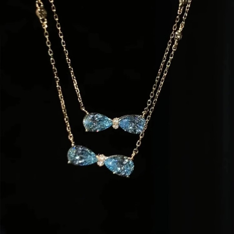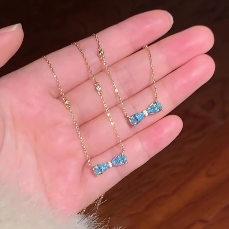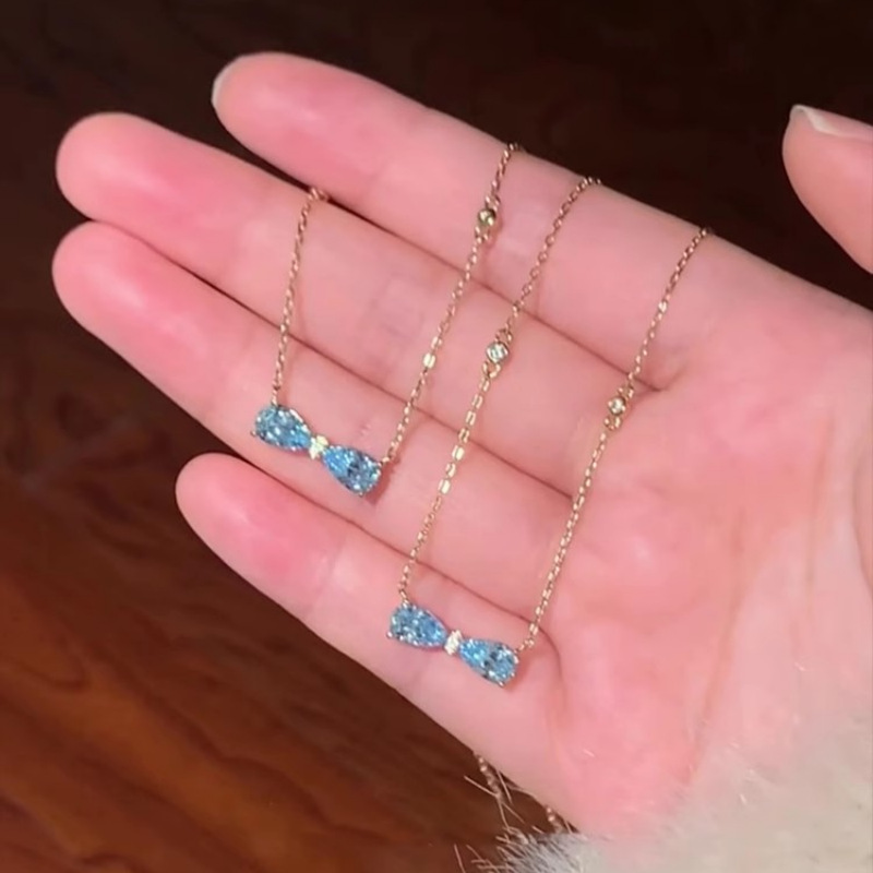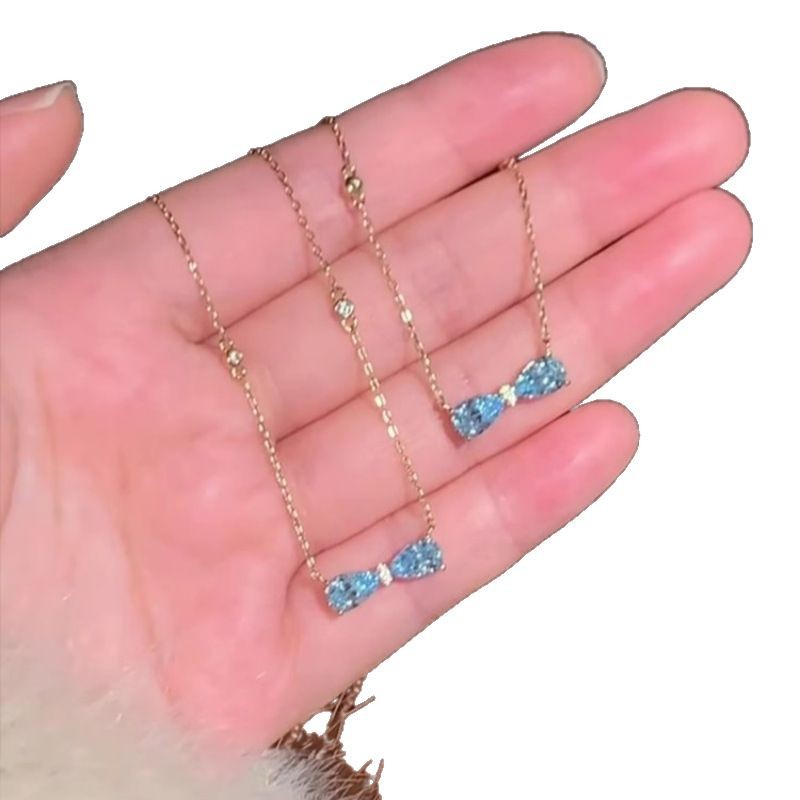 "Sailimu Lake" French Romantic Blue Zircon Bow Necklace Cold Style Light Luxury Exquisite Clavicle Chain for Women
