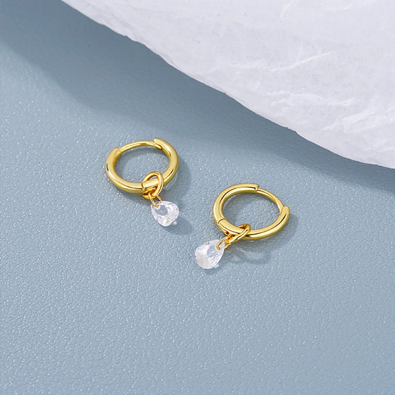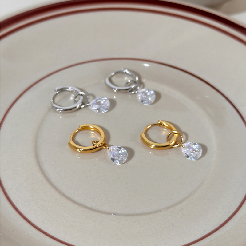 Cross-border fashion circle stainless steel earring earbuckle simple exquisite water drop zircon earrings INS wholesale earrings