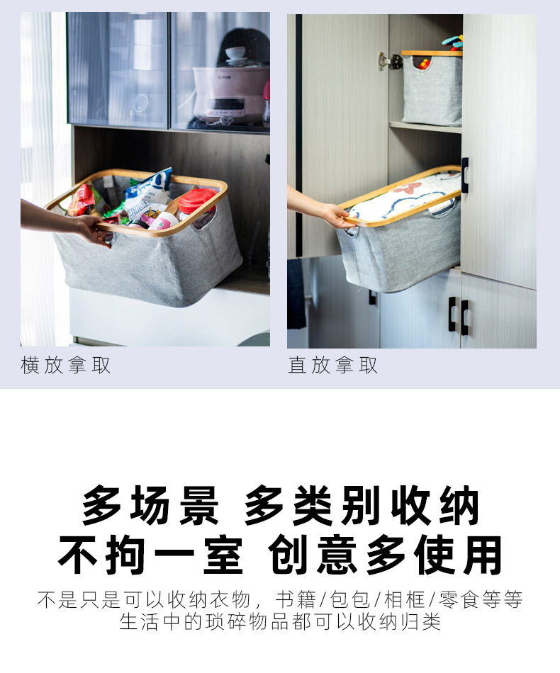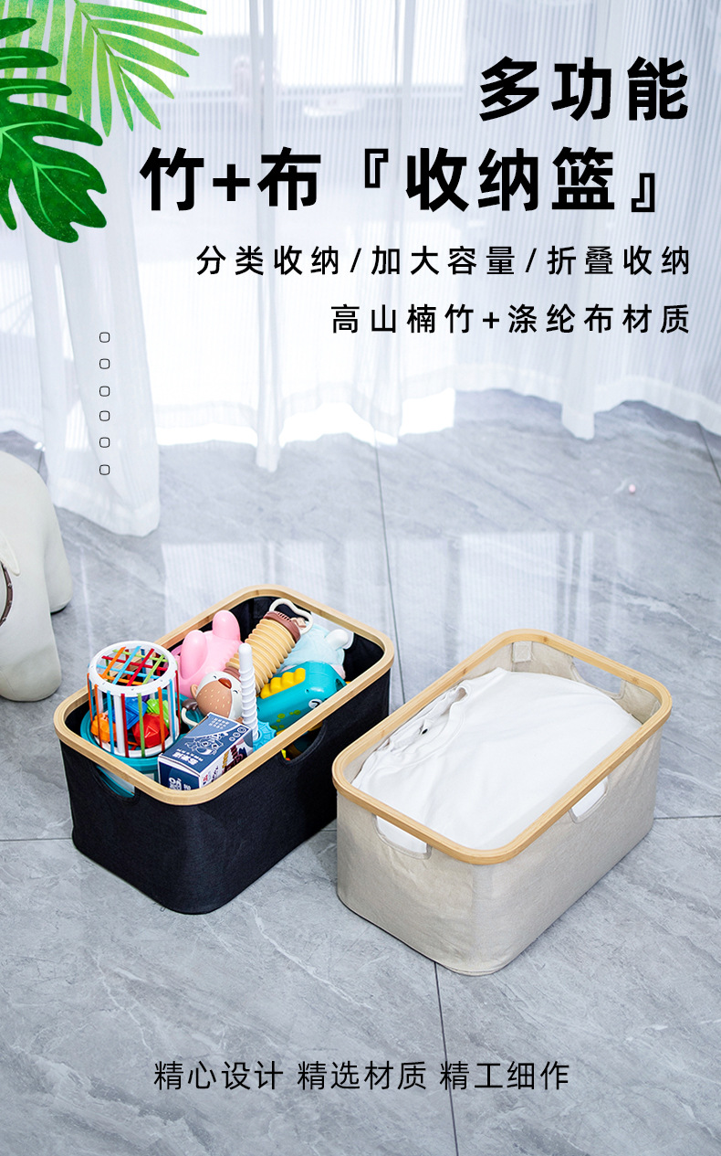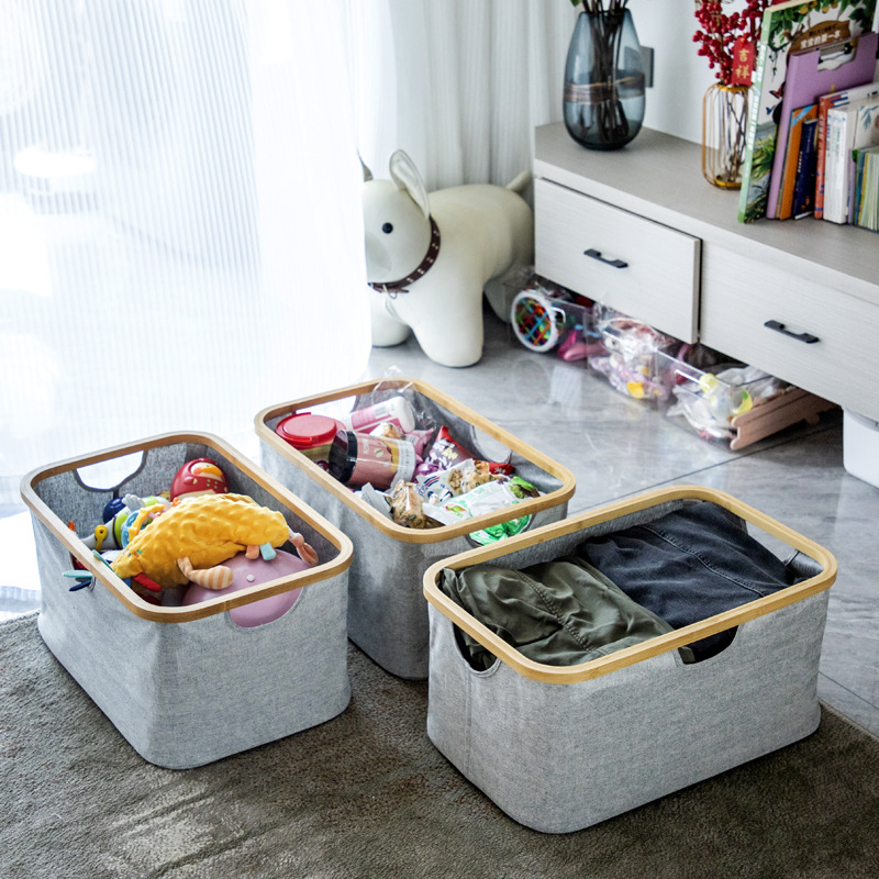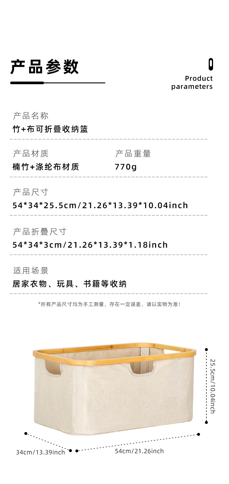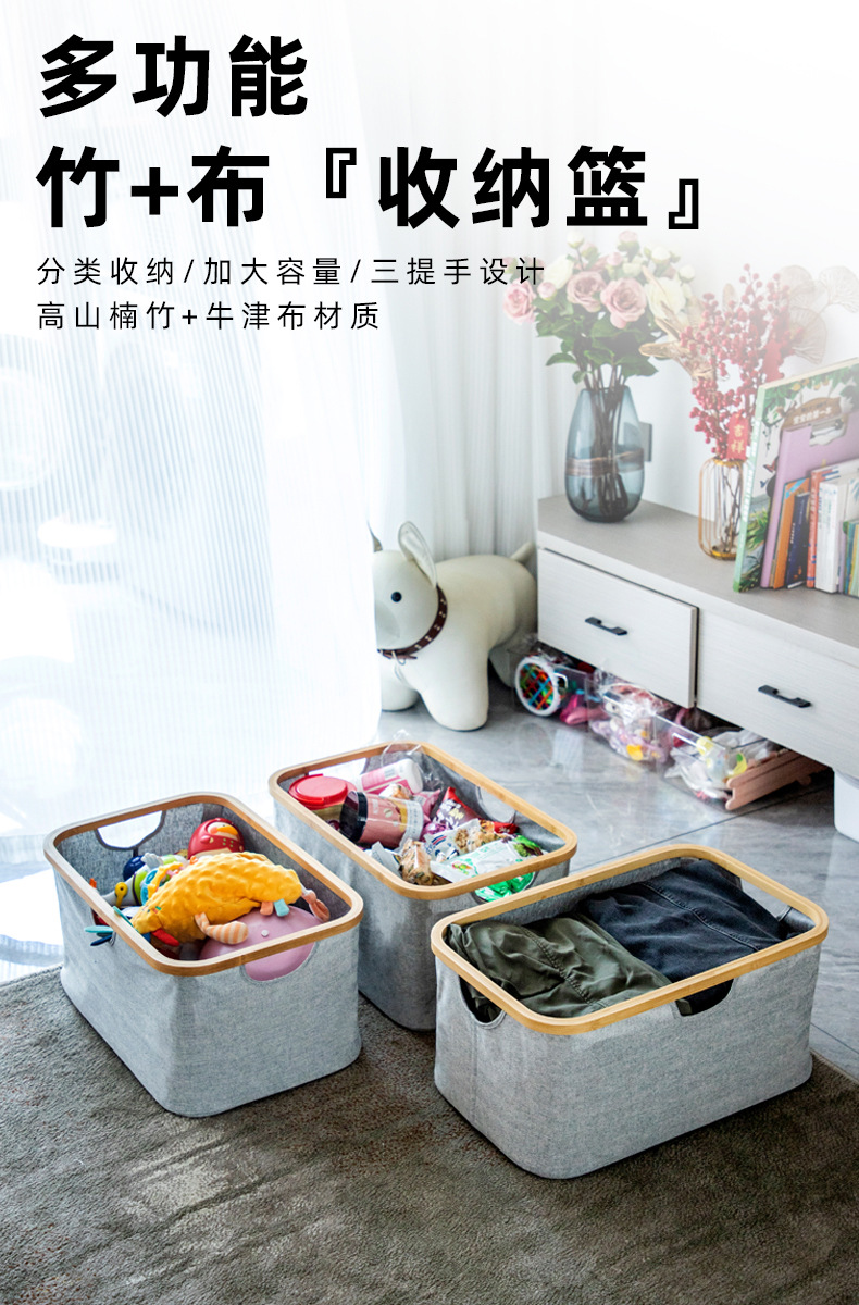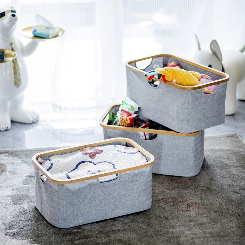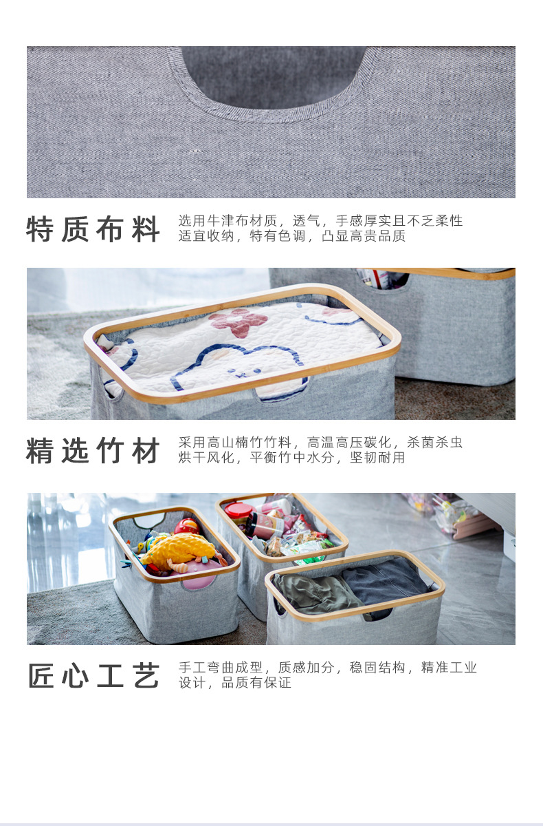 Large Capacity Bamboo and Cloth Storage Box for Household Items, Quilt Bag, Fabric Storage Basket