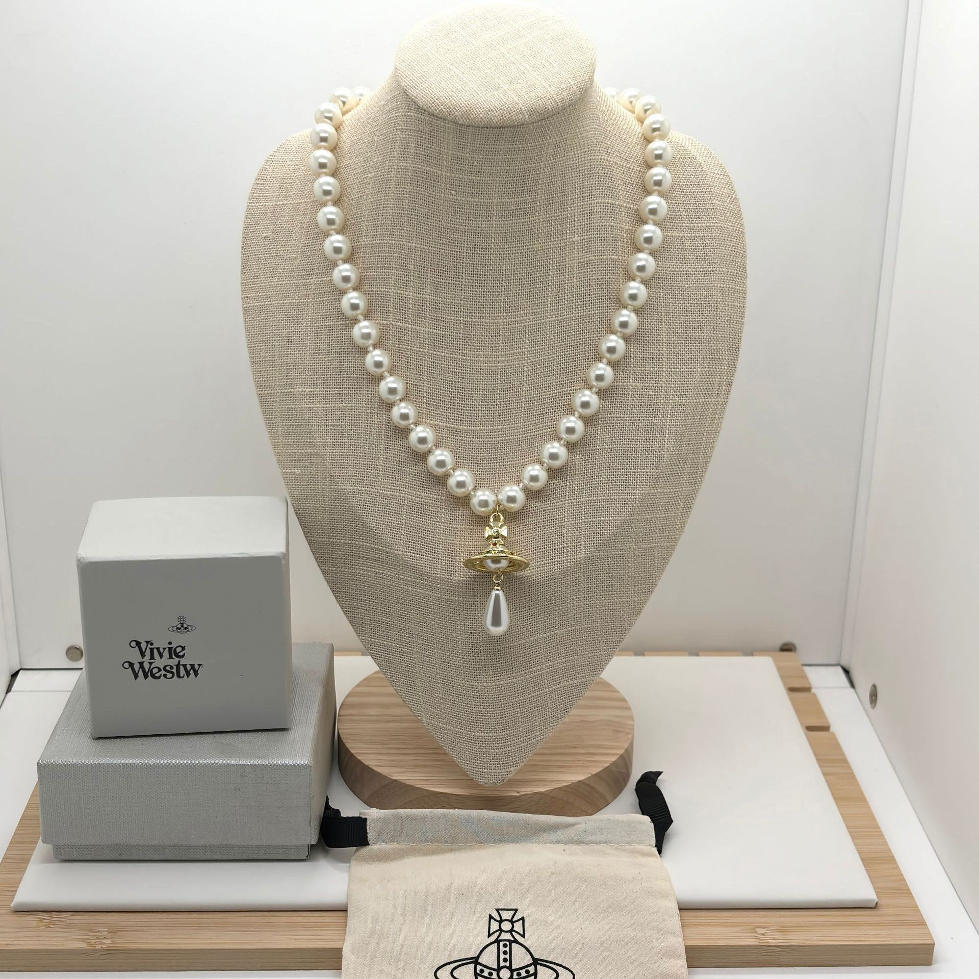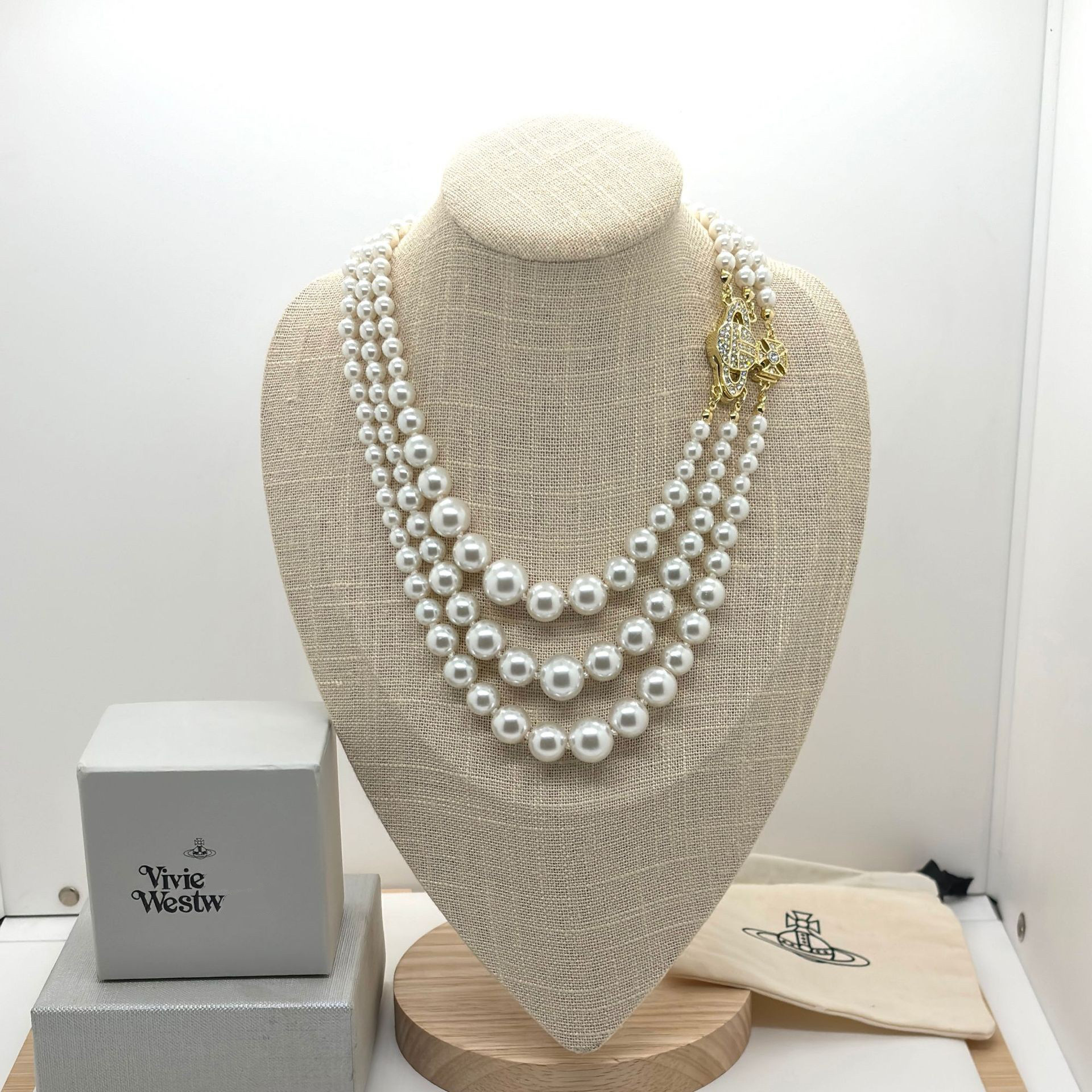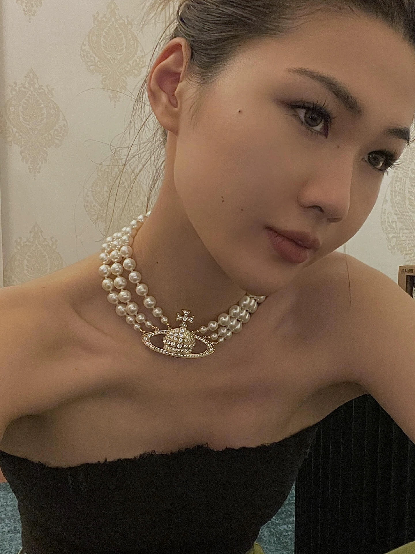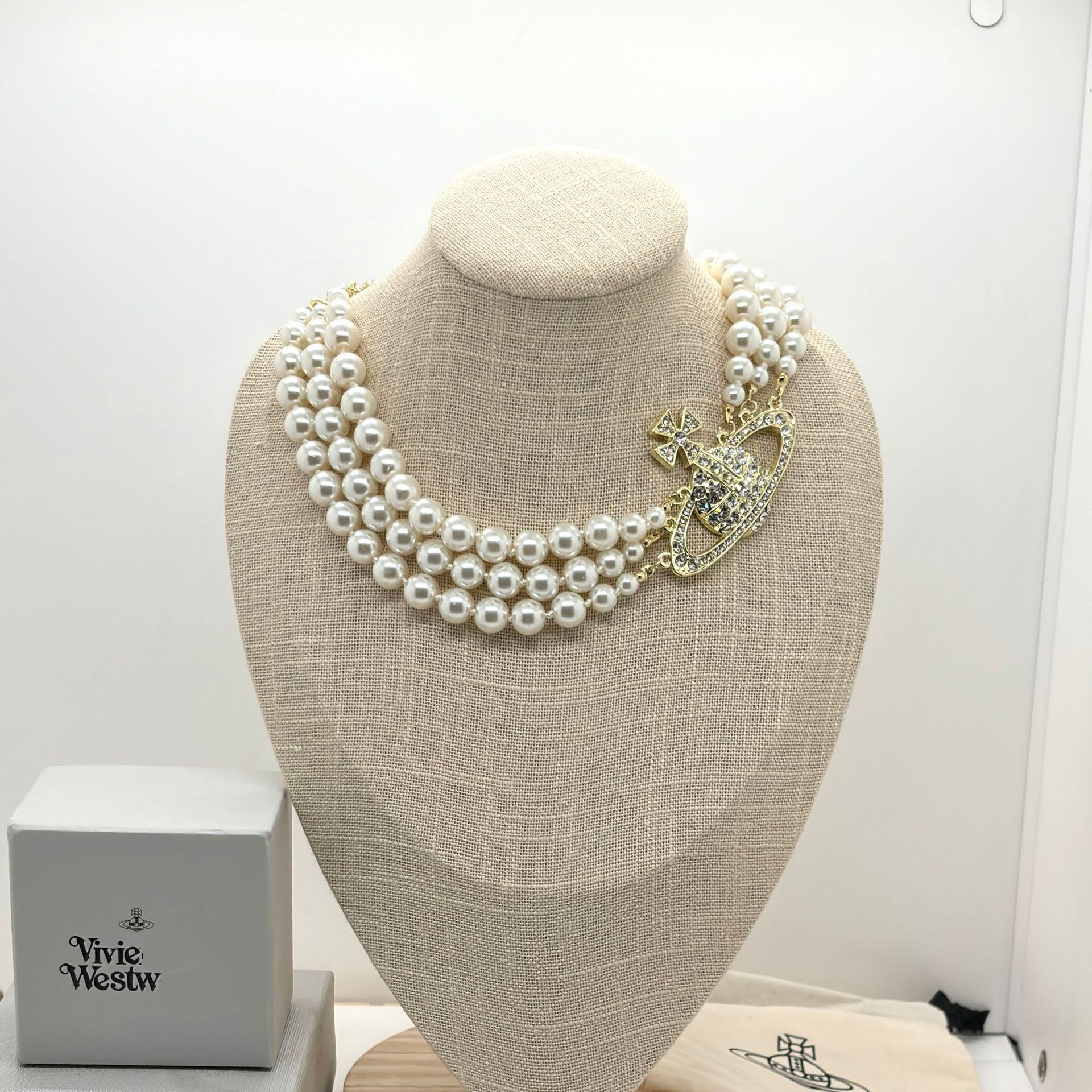 Color: Three rows of saturn gold mermaid tears pendant necklace