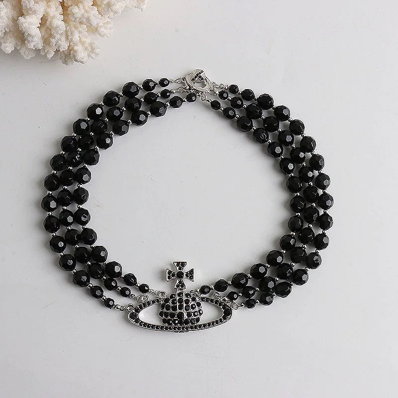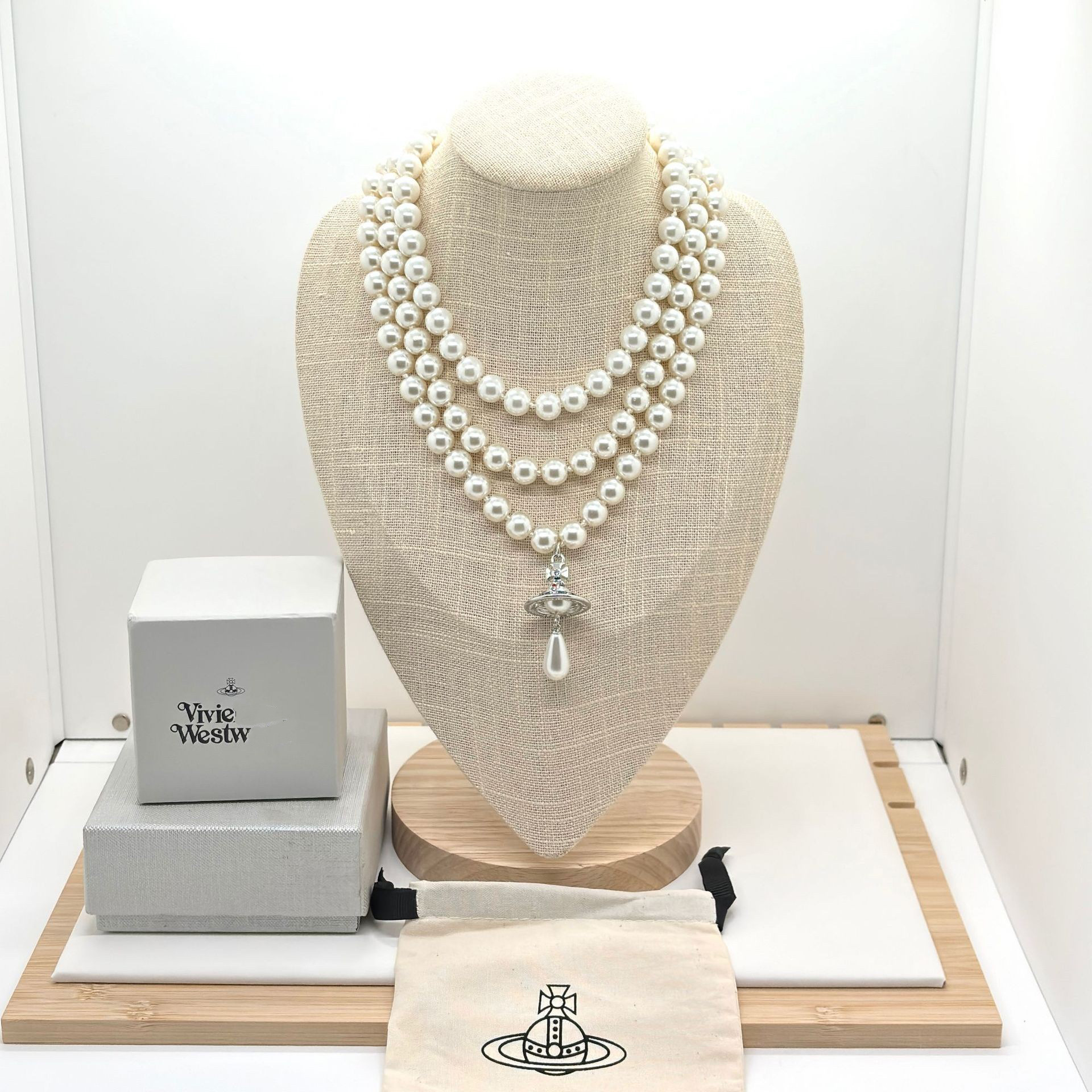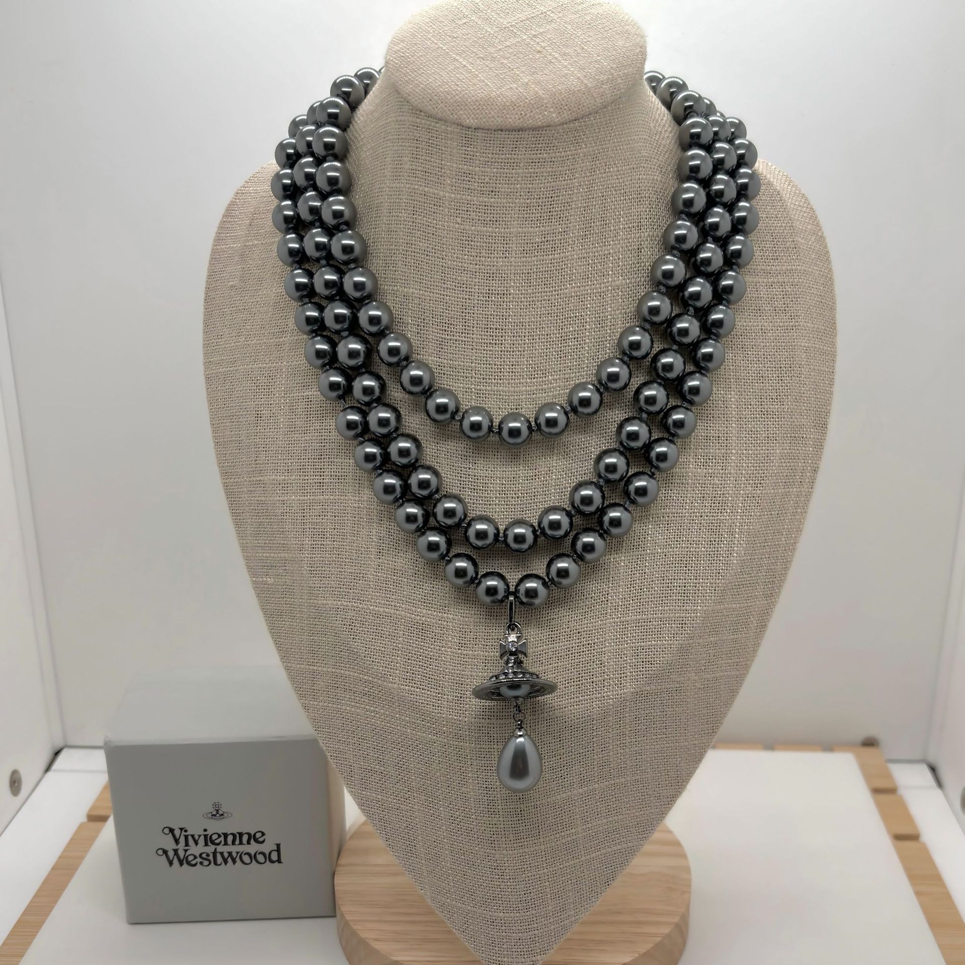 Color: Three rows saturn silver mermaid tears pendant necklace