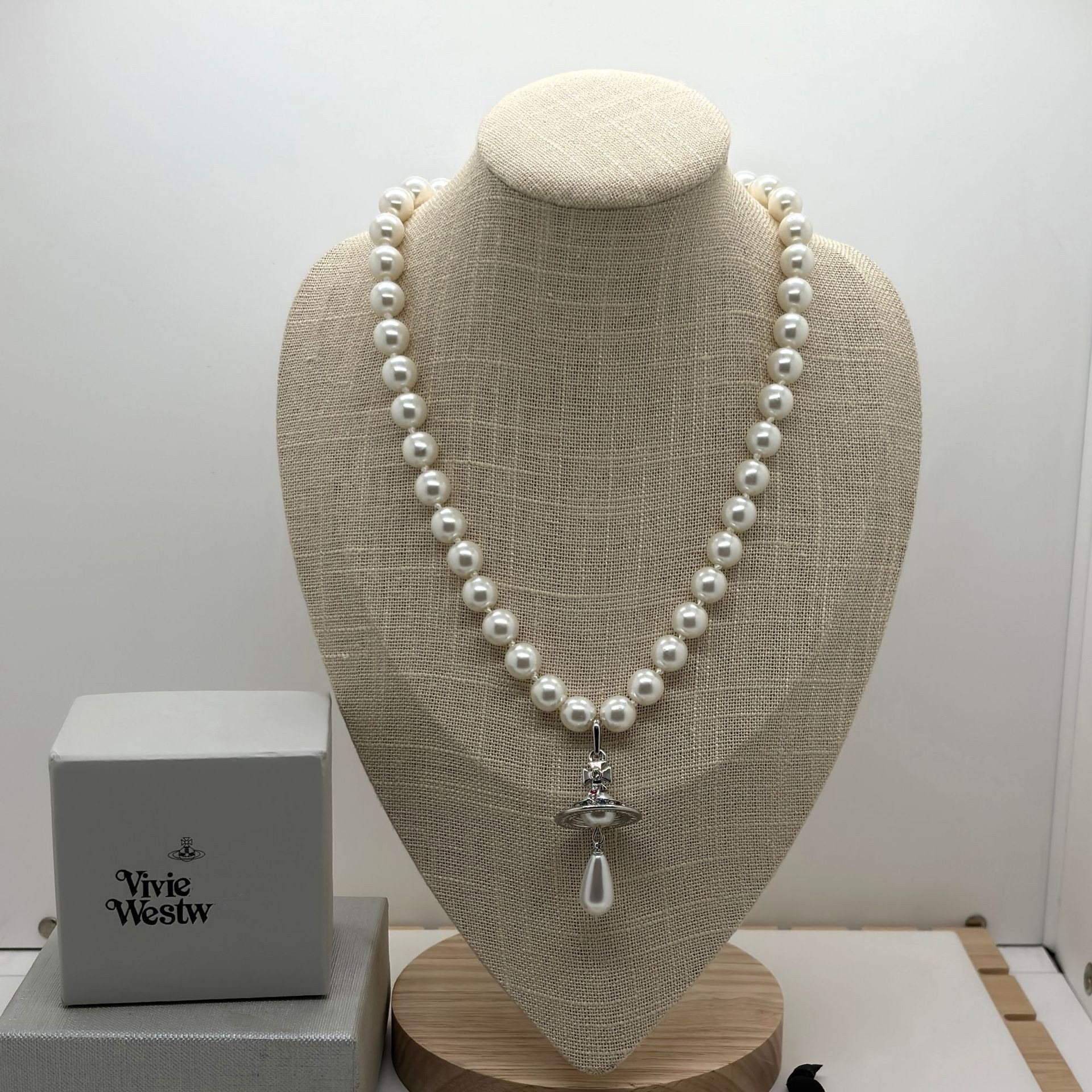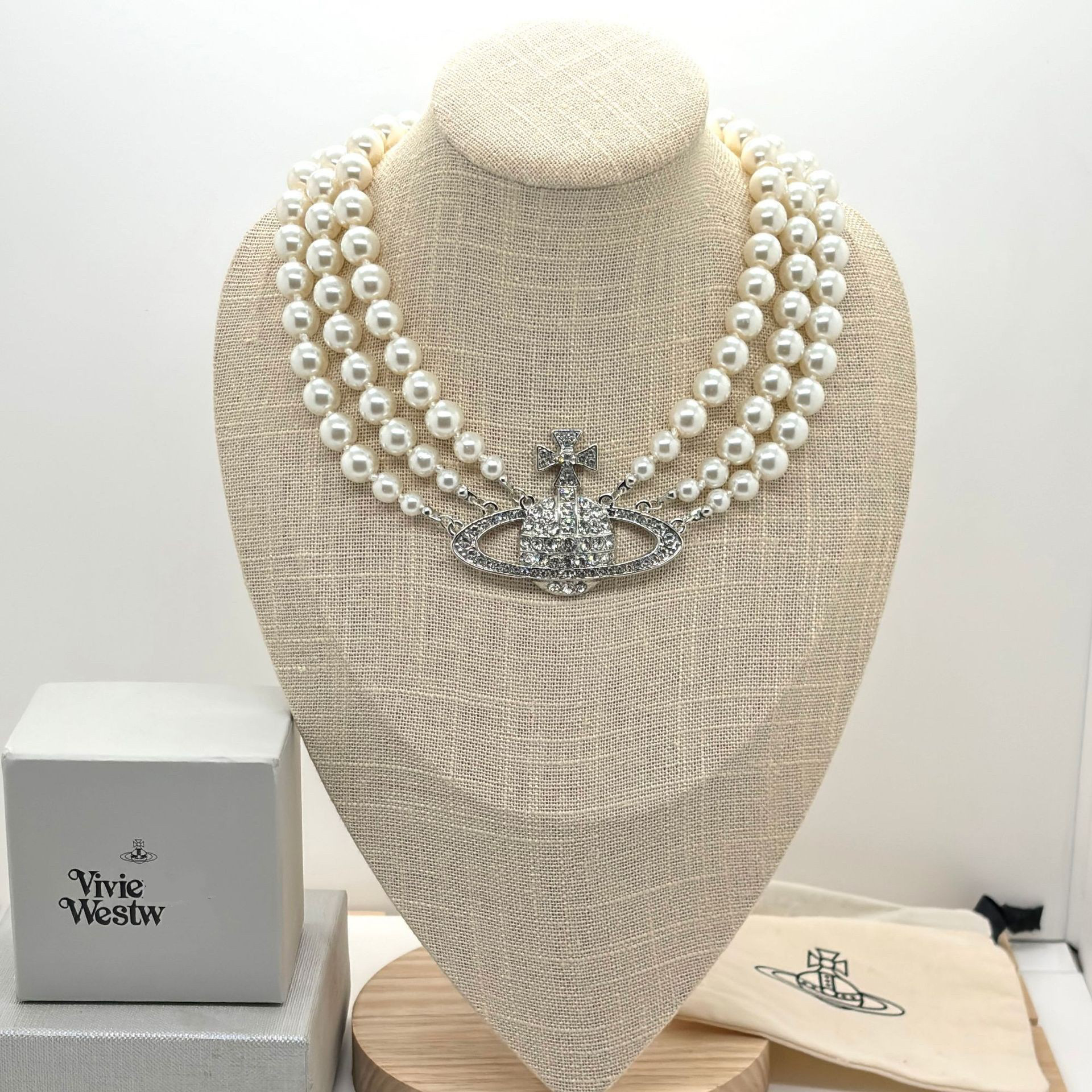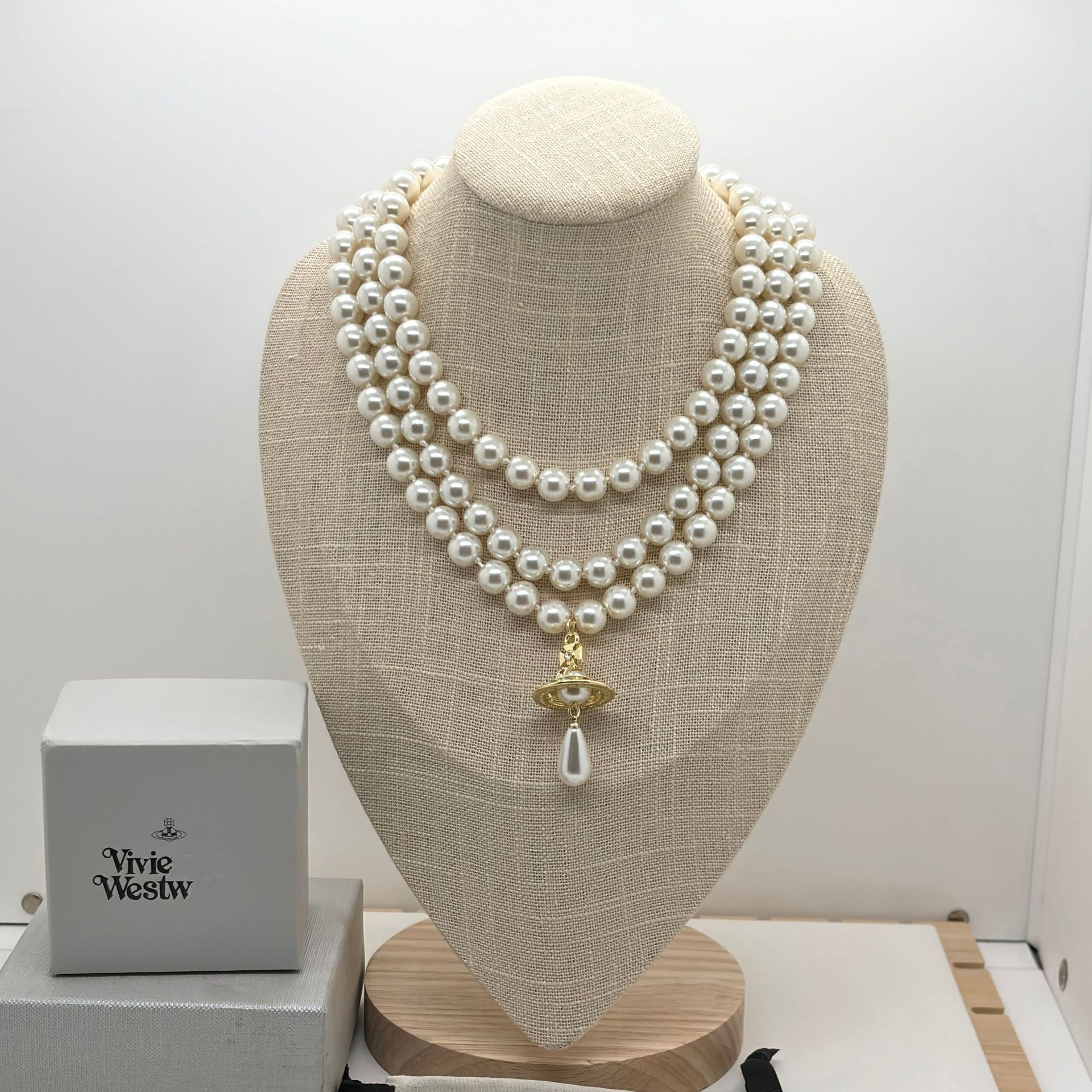 Color: Three rows saturn silver mermaid tears pendant necklace