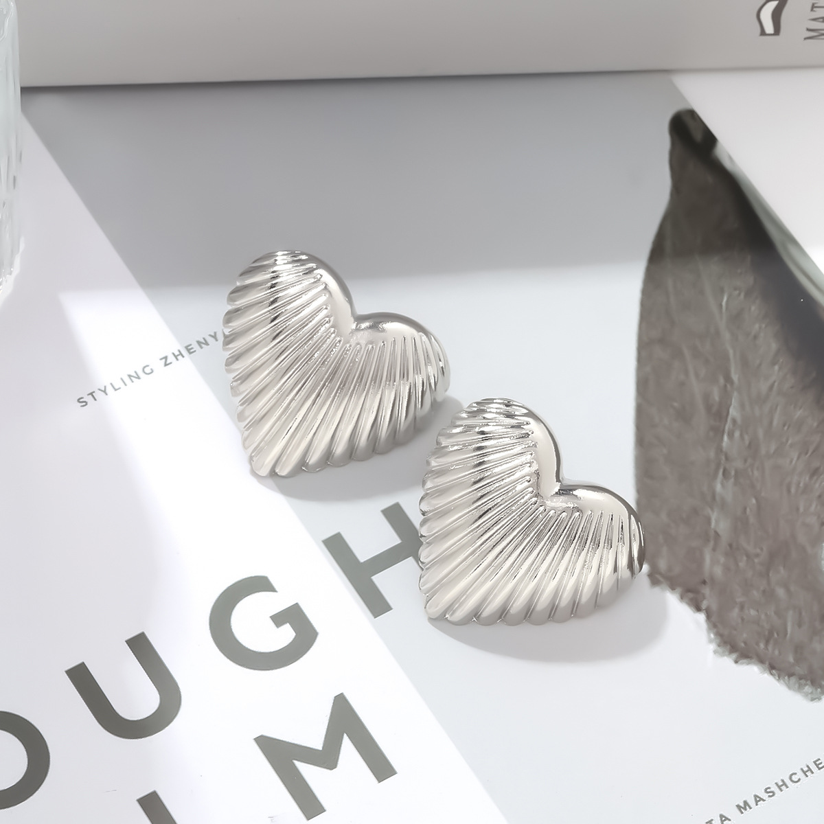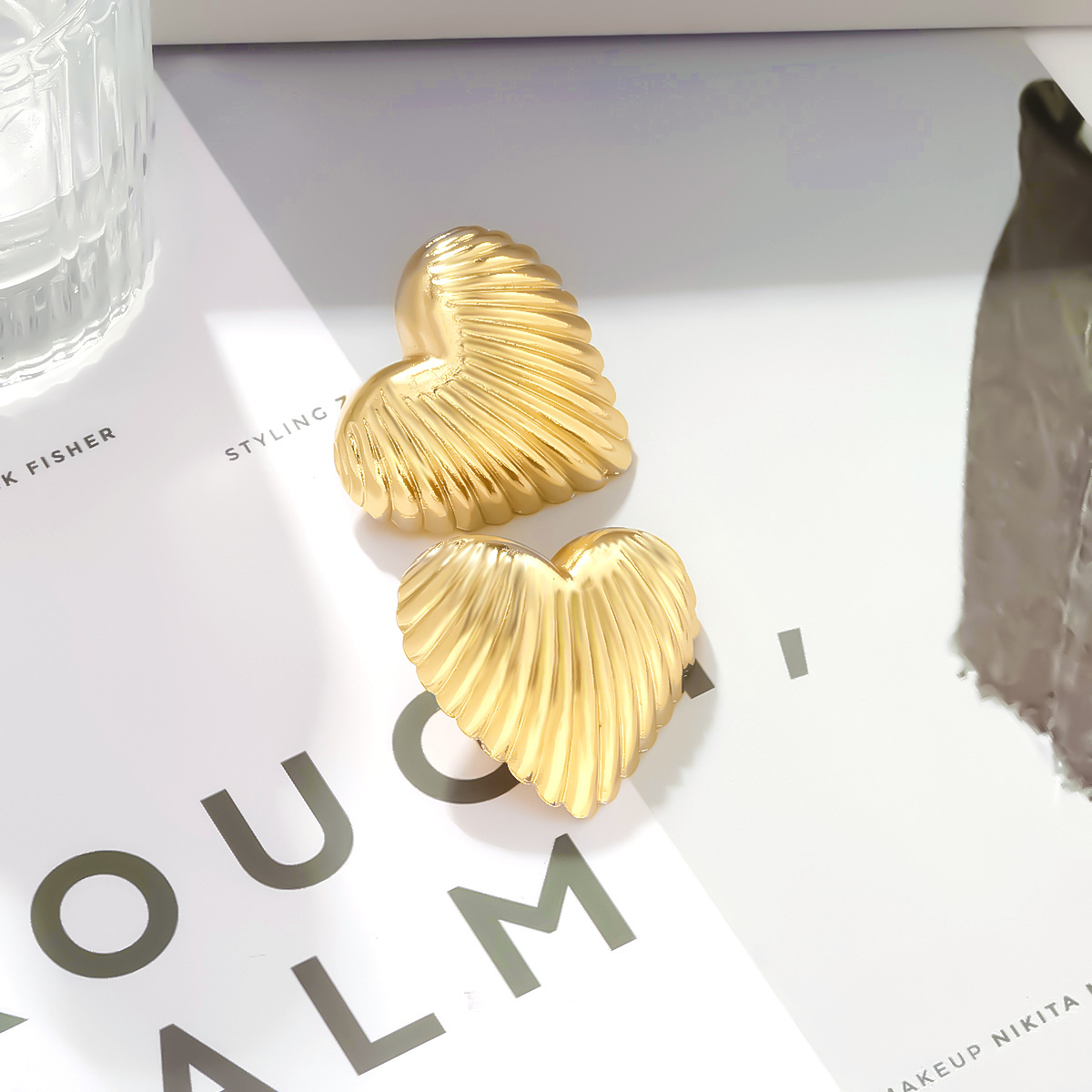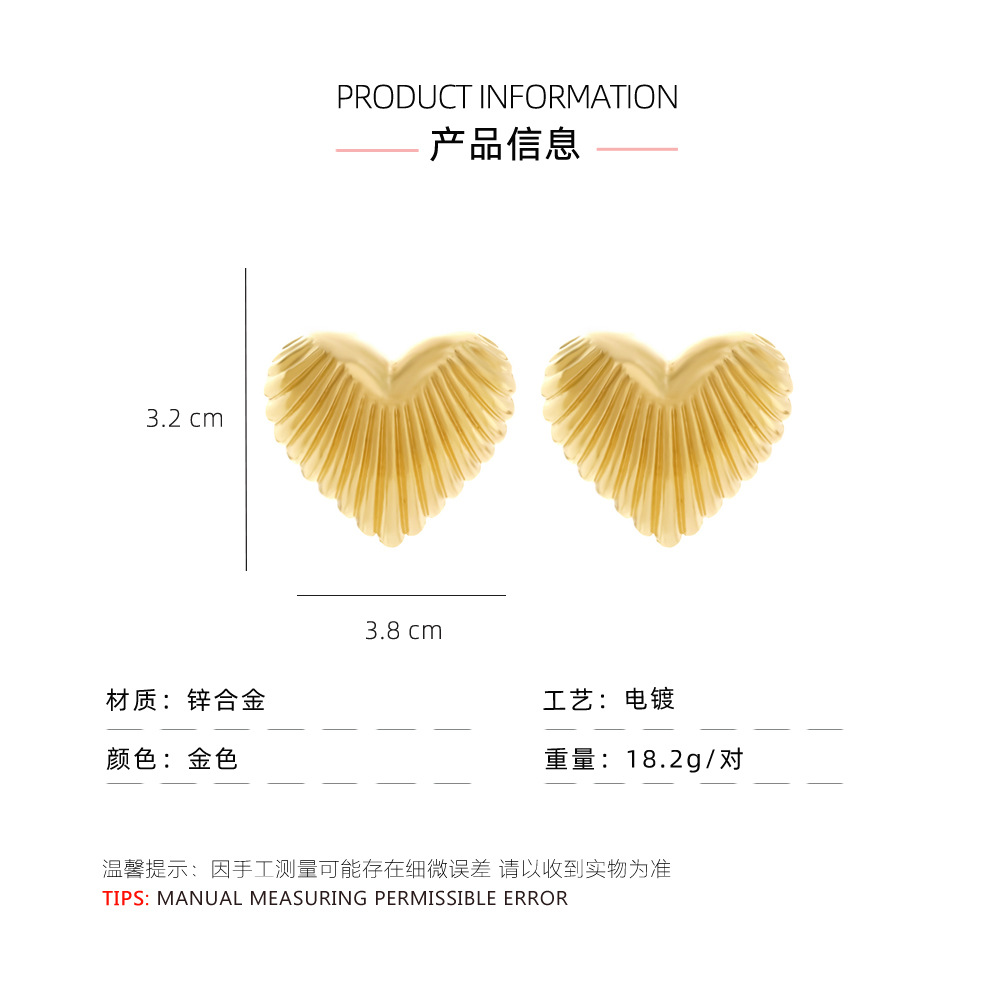 ZA Exaggerated Heavy Industry Alloy Texture Love Earrings European and American Retro Striped Texture Heart-shaped Earrings Accessories Women