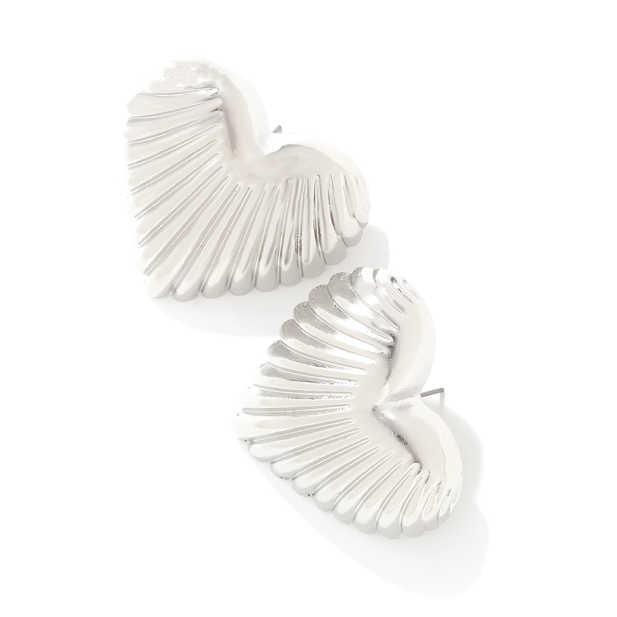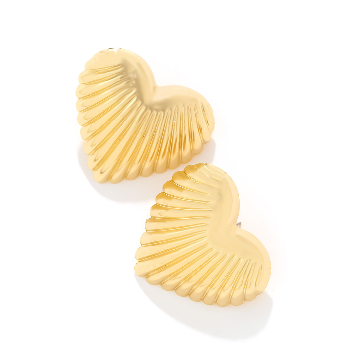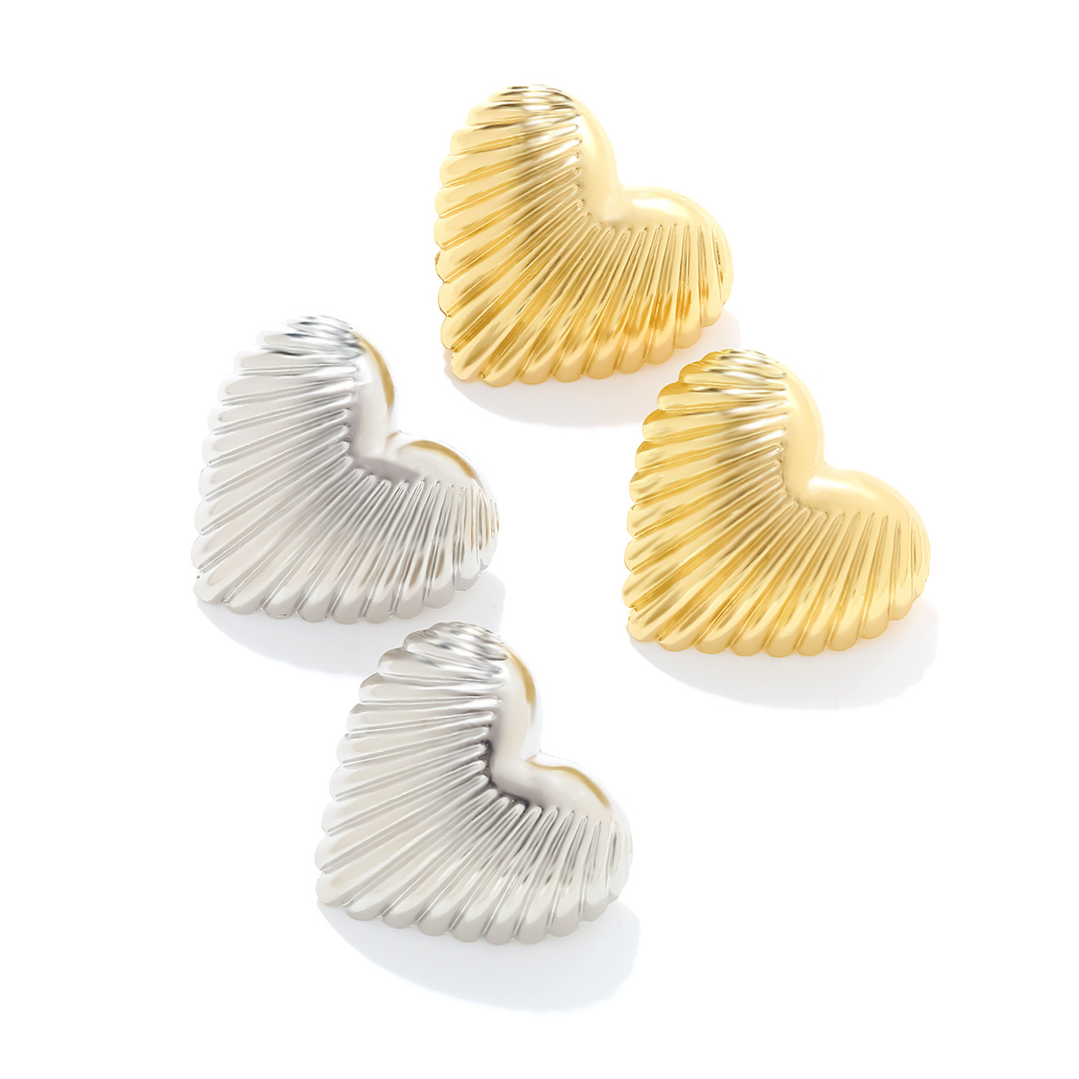 ZA Exaggerated Heavy Industry Alloy Texture Love Earrings European and American Retro Striped Texture Heart-shaped Earrings Accessories Women