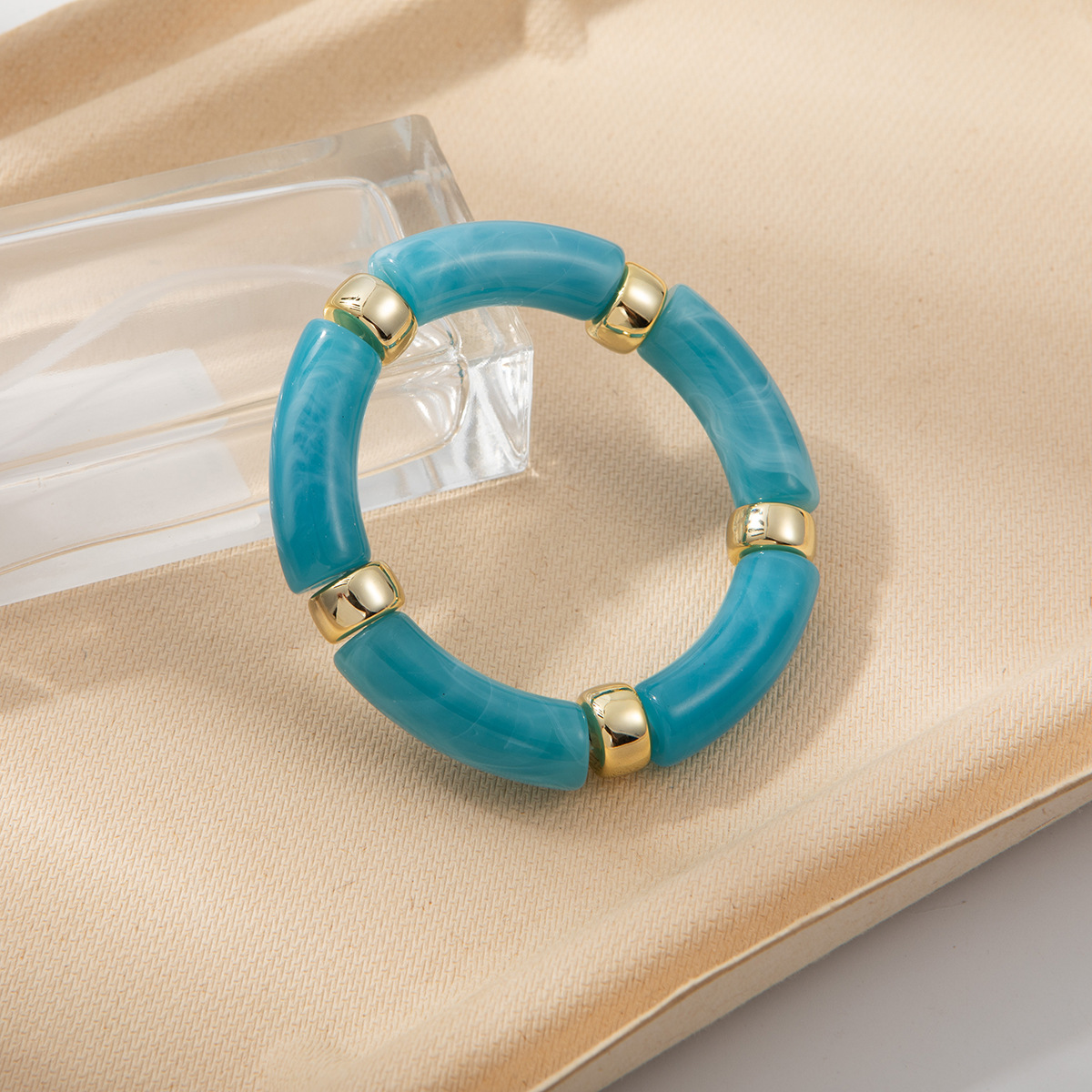 European and American Fashionable Personalized New Acrylic Elbow Bracelet Curved Bamboo Tube Multi-Color Retro Marble Pattern Bracelet