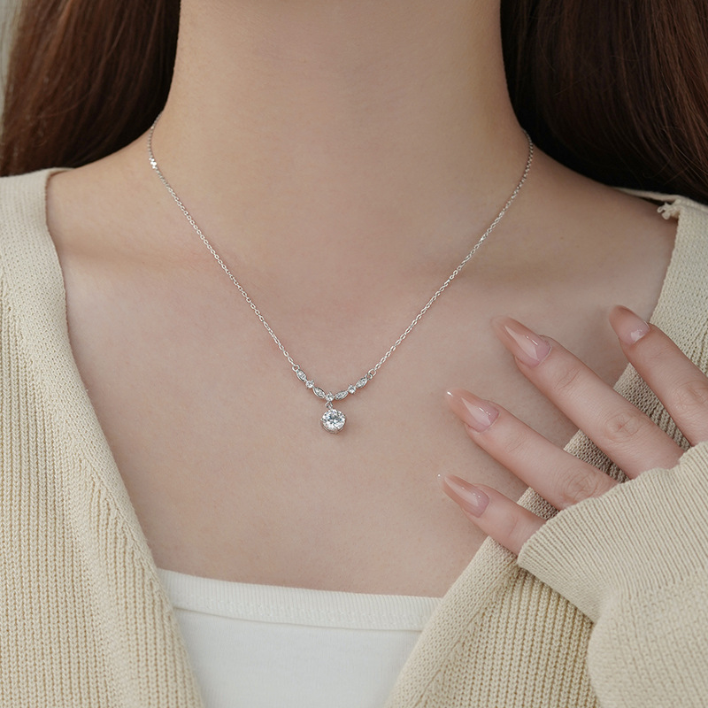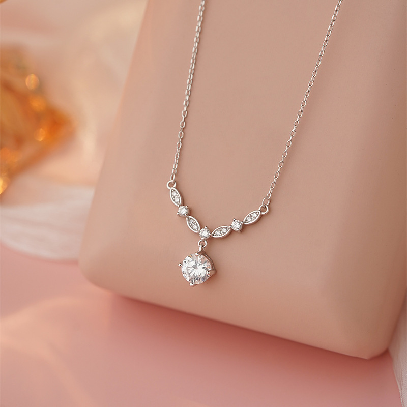 Color: S925 sterling silver moissanite flower necklace--white gold