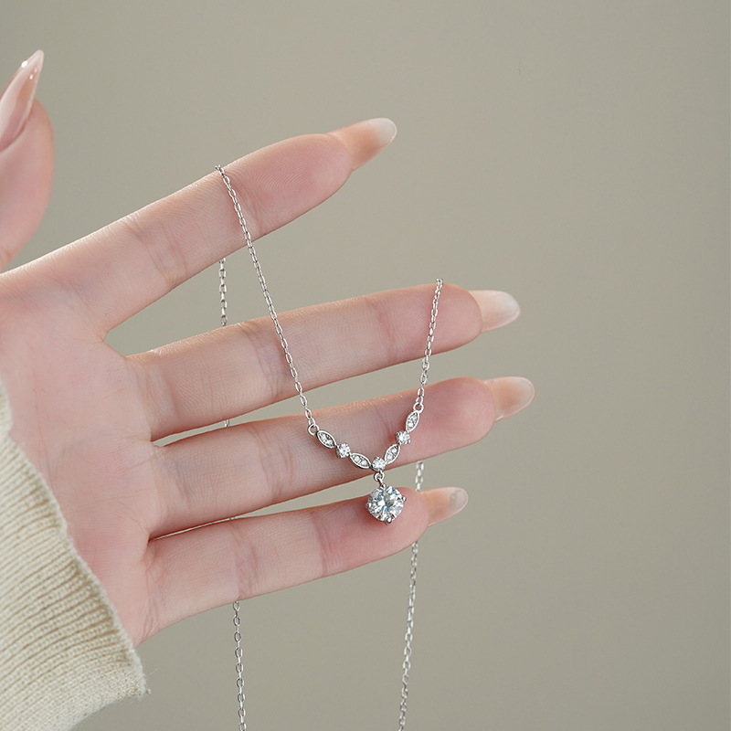 Ganjia S925 Sterling Silver S999 Foot Silver Zircon Flower Necklace All-match Elegant Sweet Shining Clavicle Chain for Hair