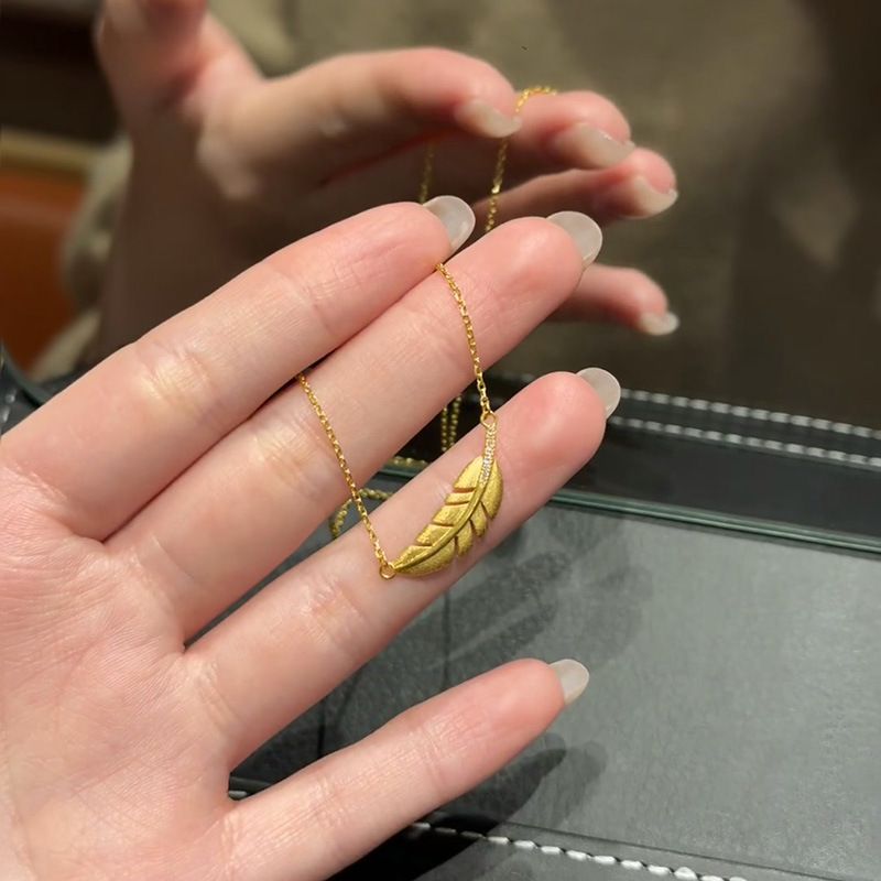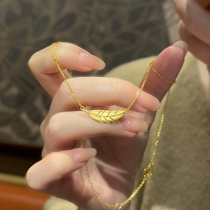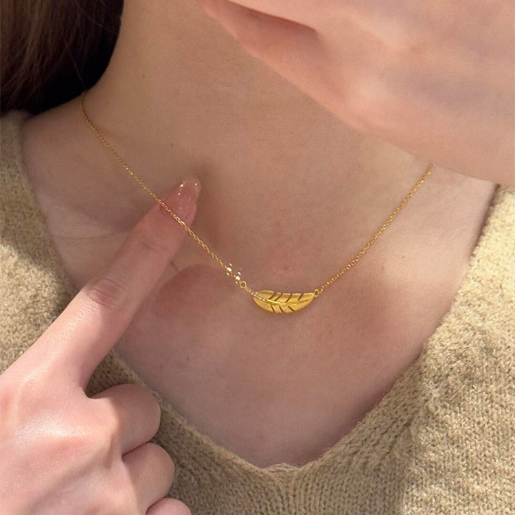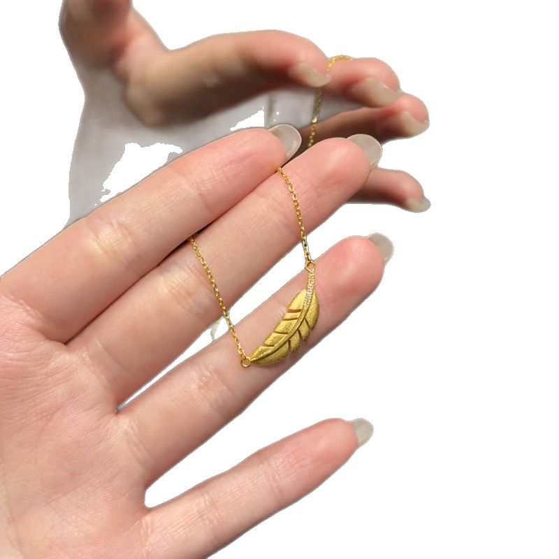 Frosted Golden Feather Necklace Niche National Style Accessories Women's Golden Branches and Jade Leaves Simple High-end Sense Woolen Chain Clavicle Chain