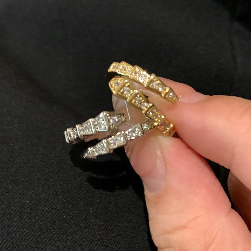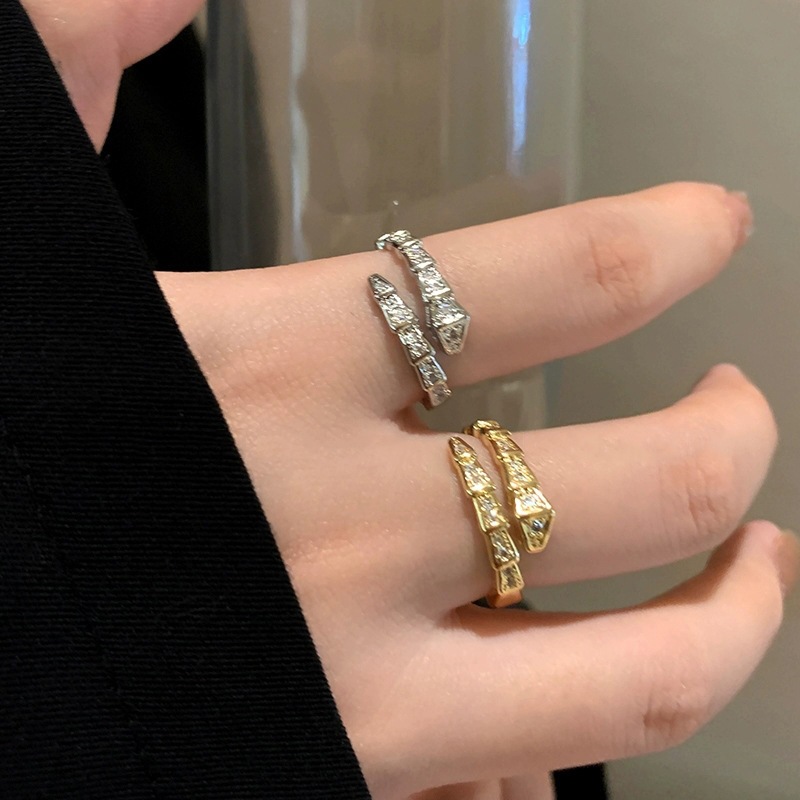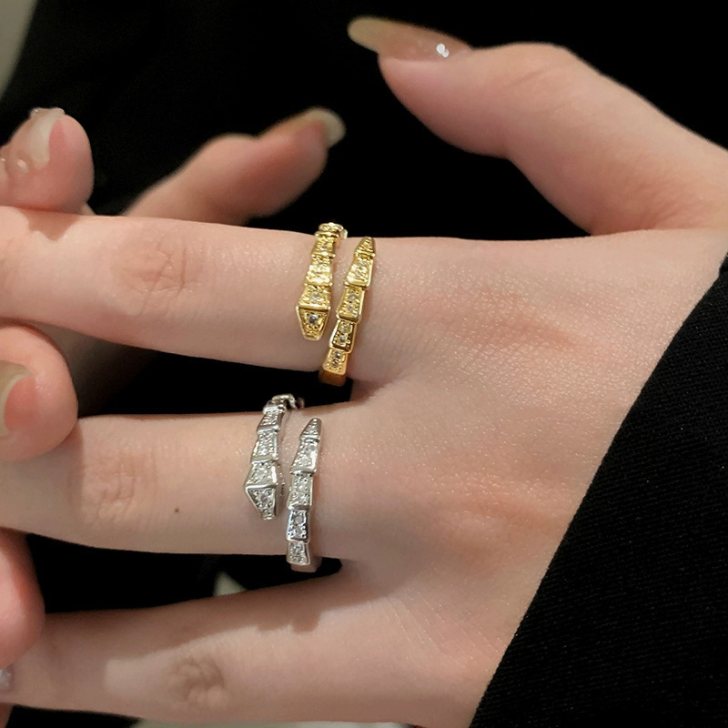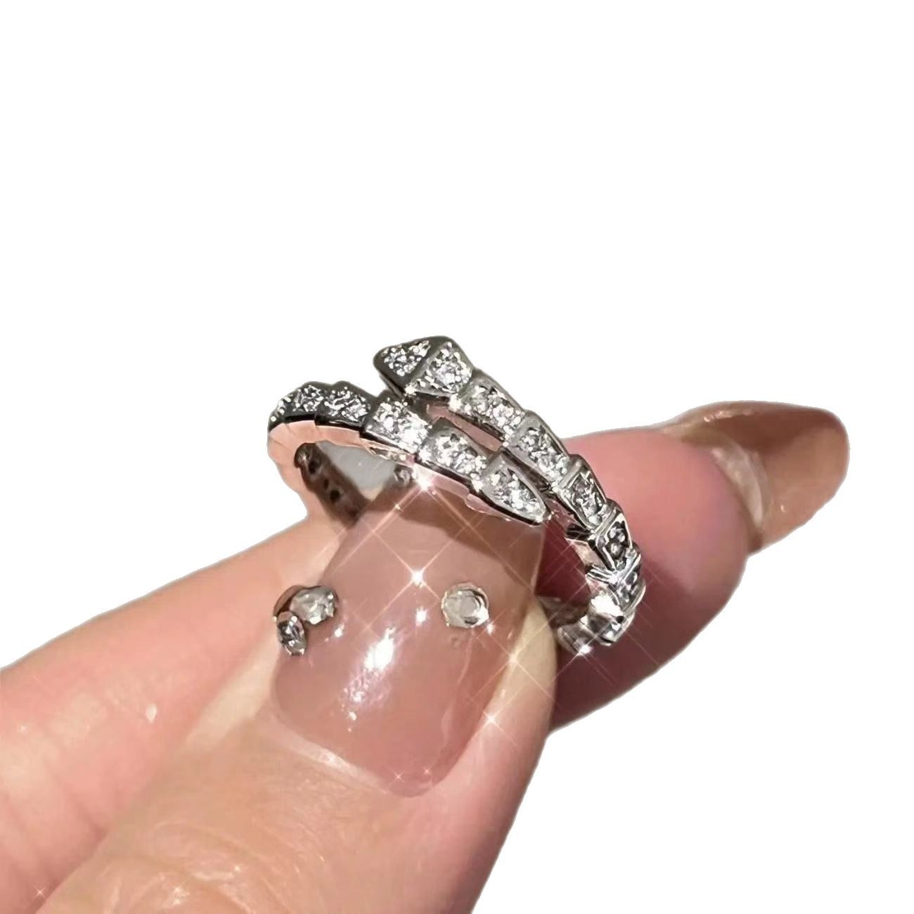 Fashion Commuter Flash Diamond Snake Ring Women's Ins Style Light Luxury Niche Opening Ring Simple All-match Accessories