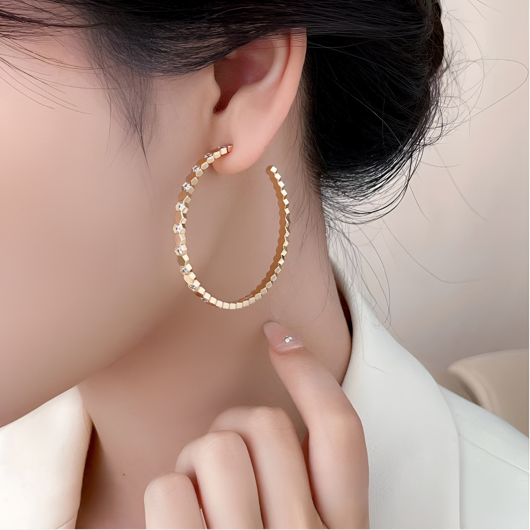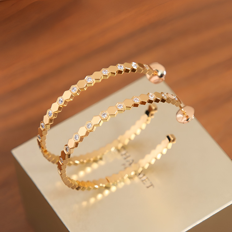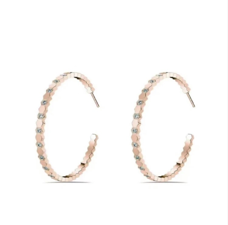 New Entry Luxury European and American Cross-border High Version Honeycomb Ear Ring 18K Rose Gold Niche Design Sense Fashion All-match