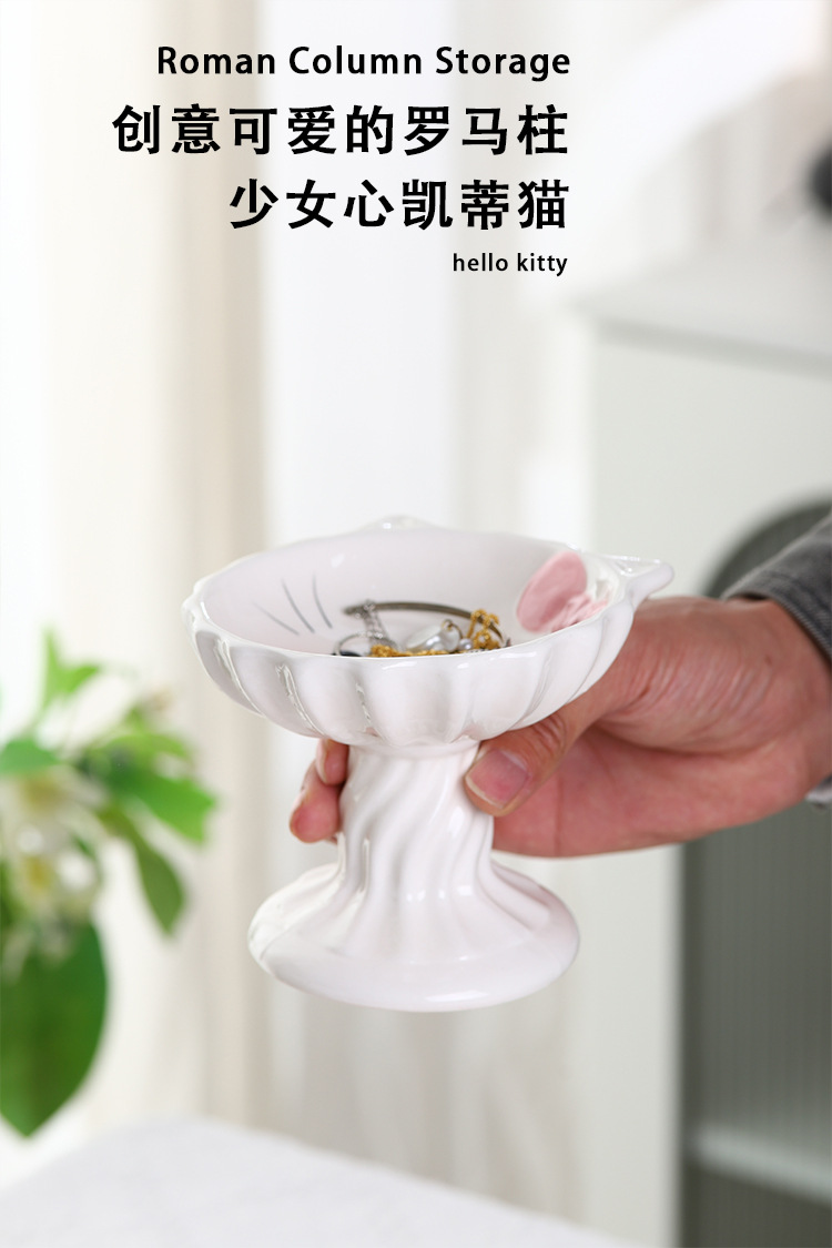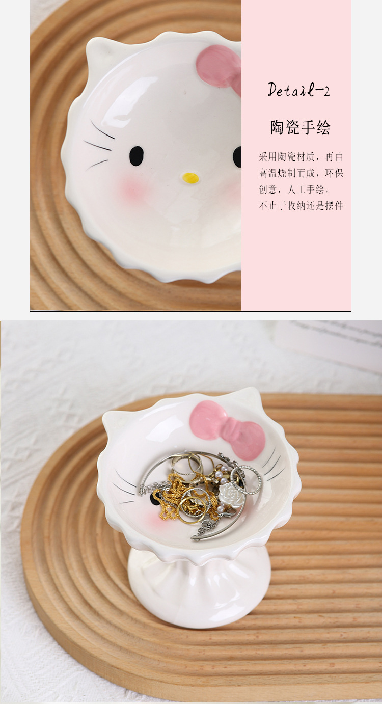 Cute helloKitty Cat Ceramic Tray High Color Value Home Jewelry Ornaments Keys Jewelry Storage Box Creative