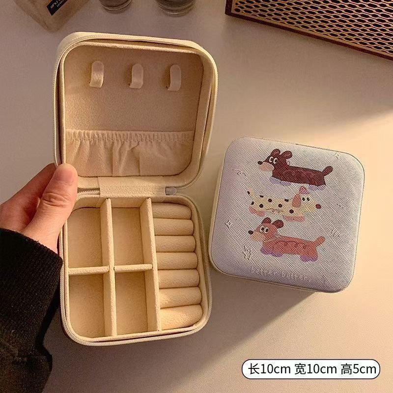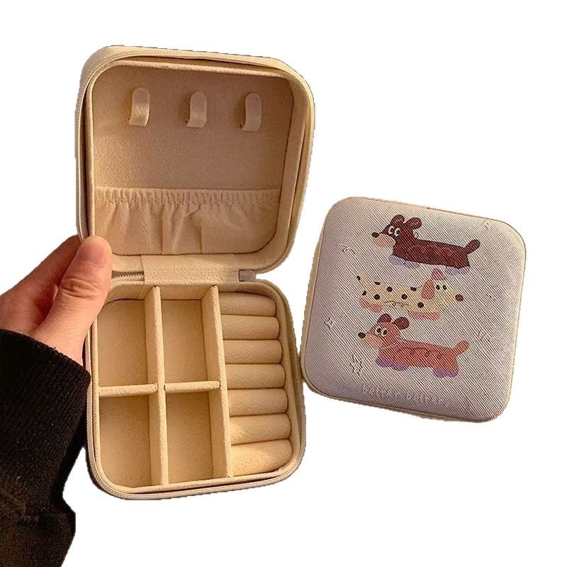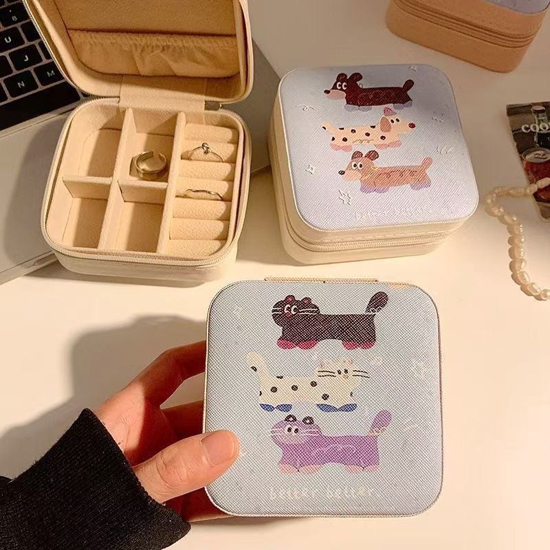 Cute Kitten Puppy Jewelry Box Portable Hand Jewelry Earrings Ring Storage Box Small Cartoon Necklace Jewelry Box
