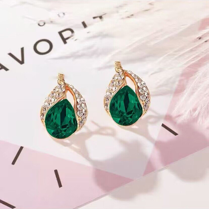 Vintage Red Crystal Glass Water Drop Earrings New Fashionable Internet Popular Simple Elegant South Korea All-match Jewelry Earrings for Women