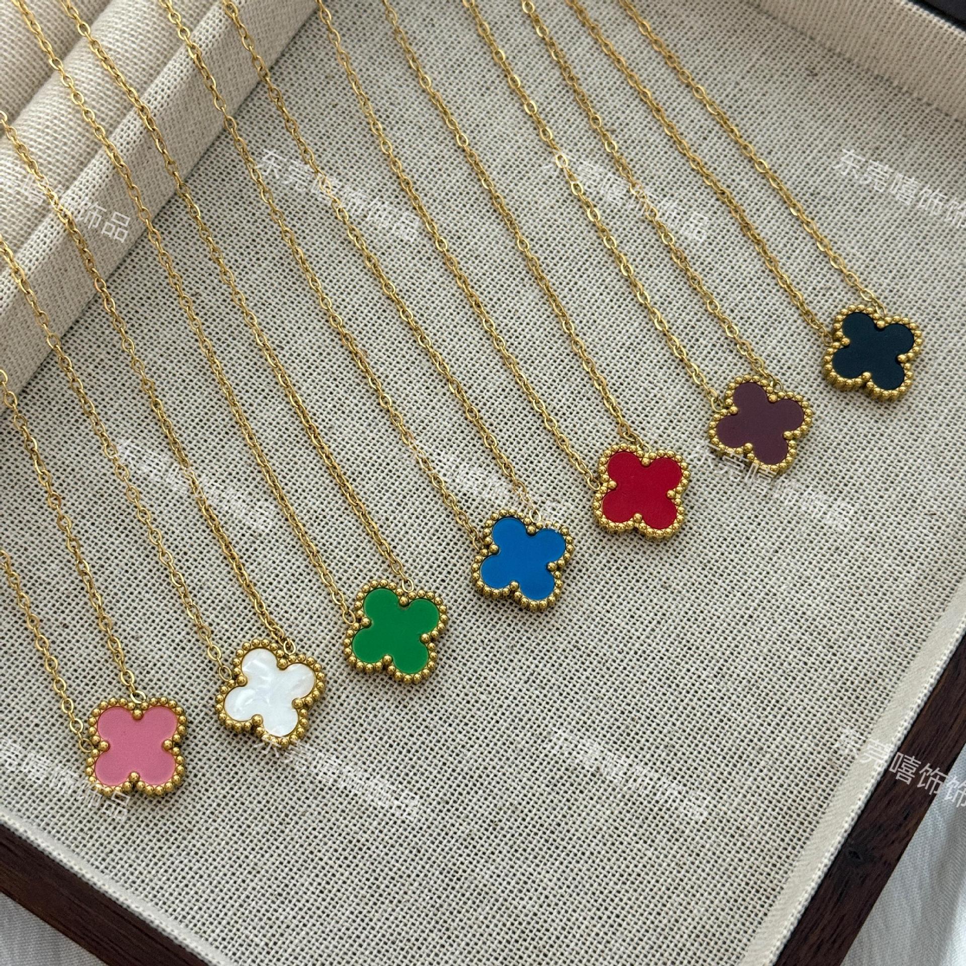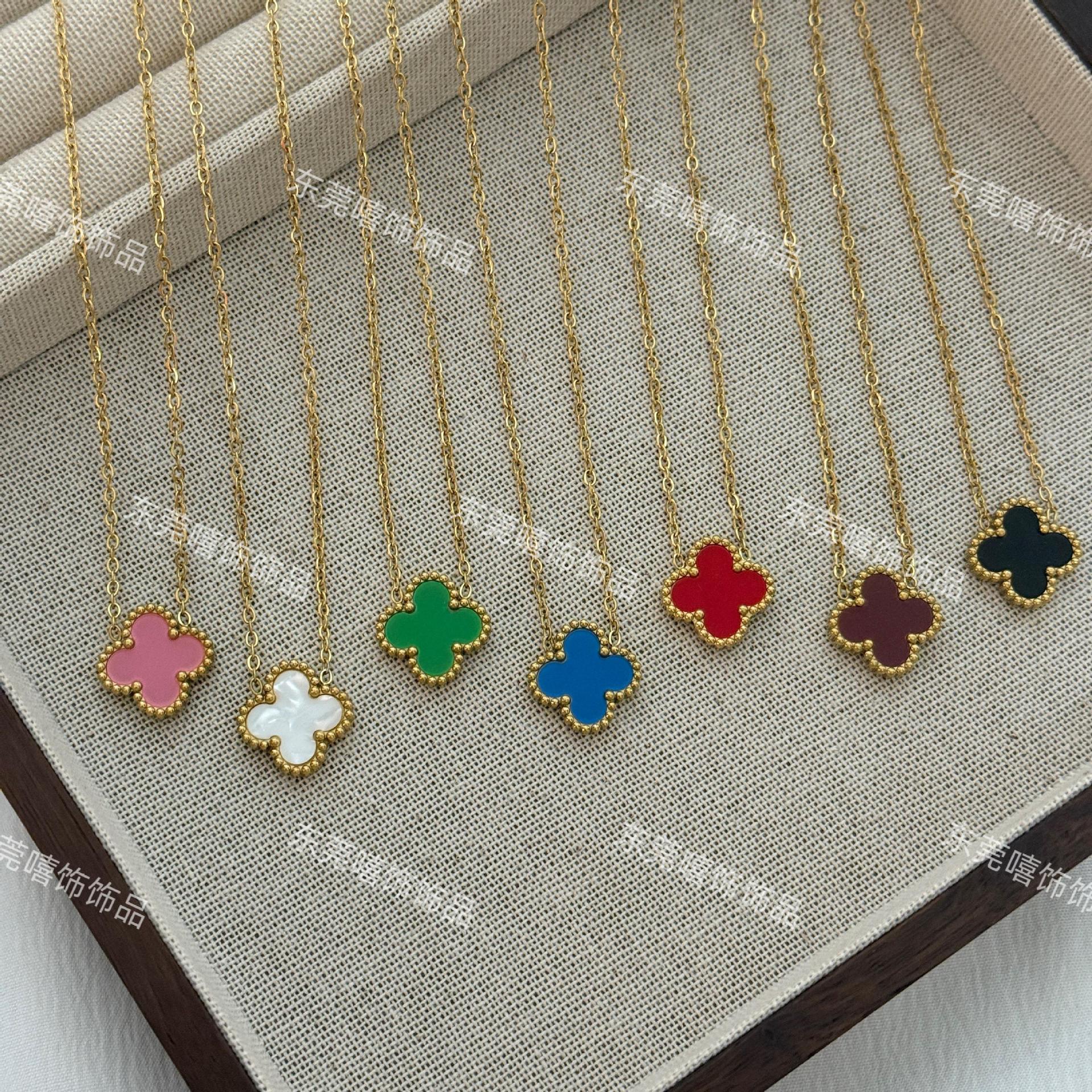 European and American Stainless Steel Set Four-Leaf Flower Necklace 9.13 15 26 Four-Leaf Flower Non-Fading Elegant Jewelry Pendant
