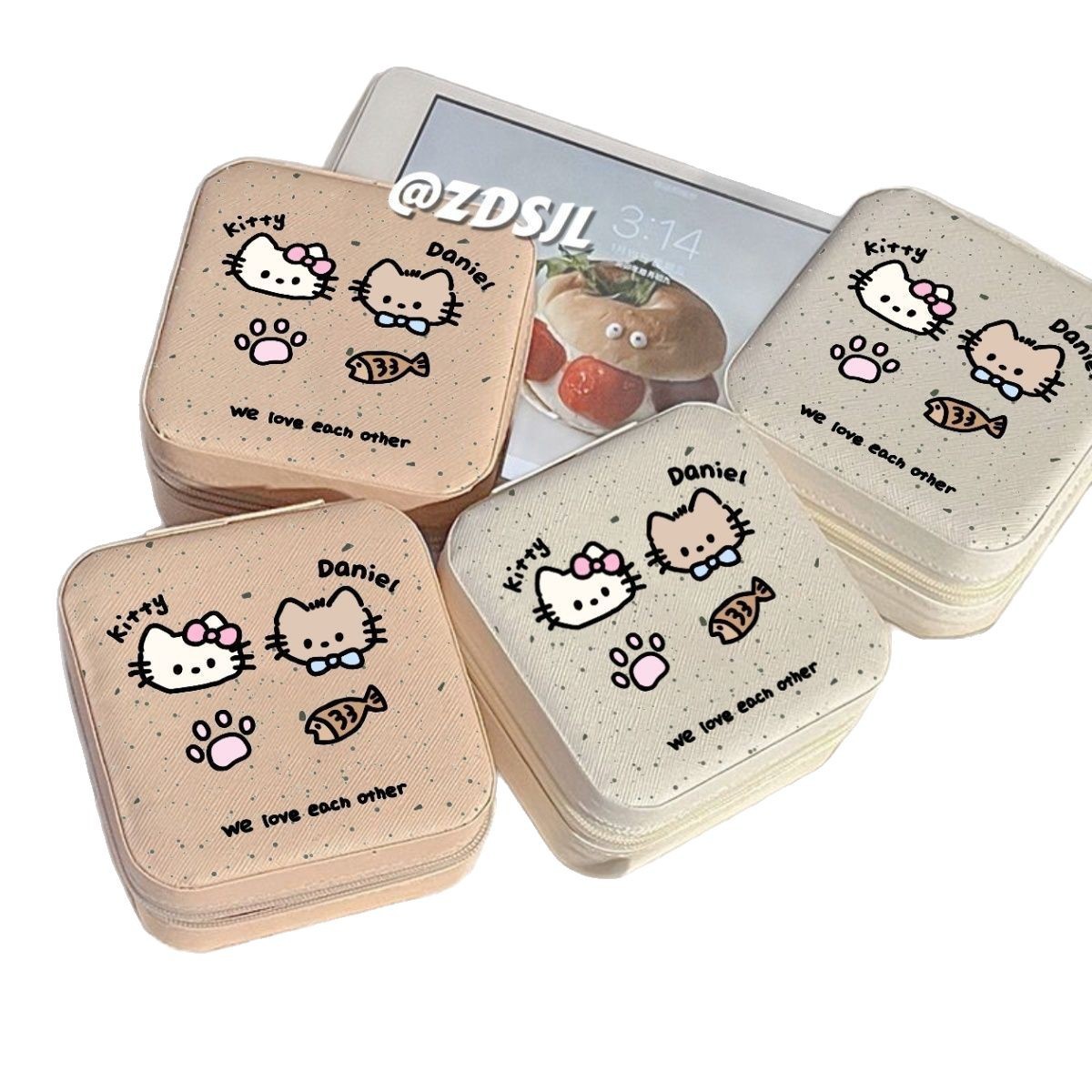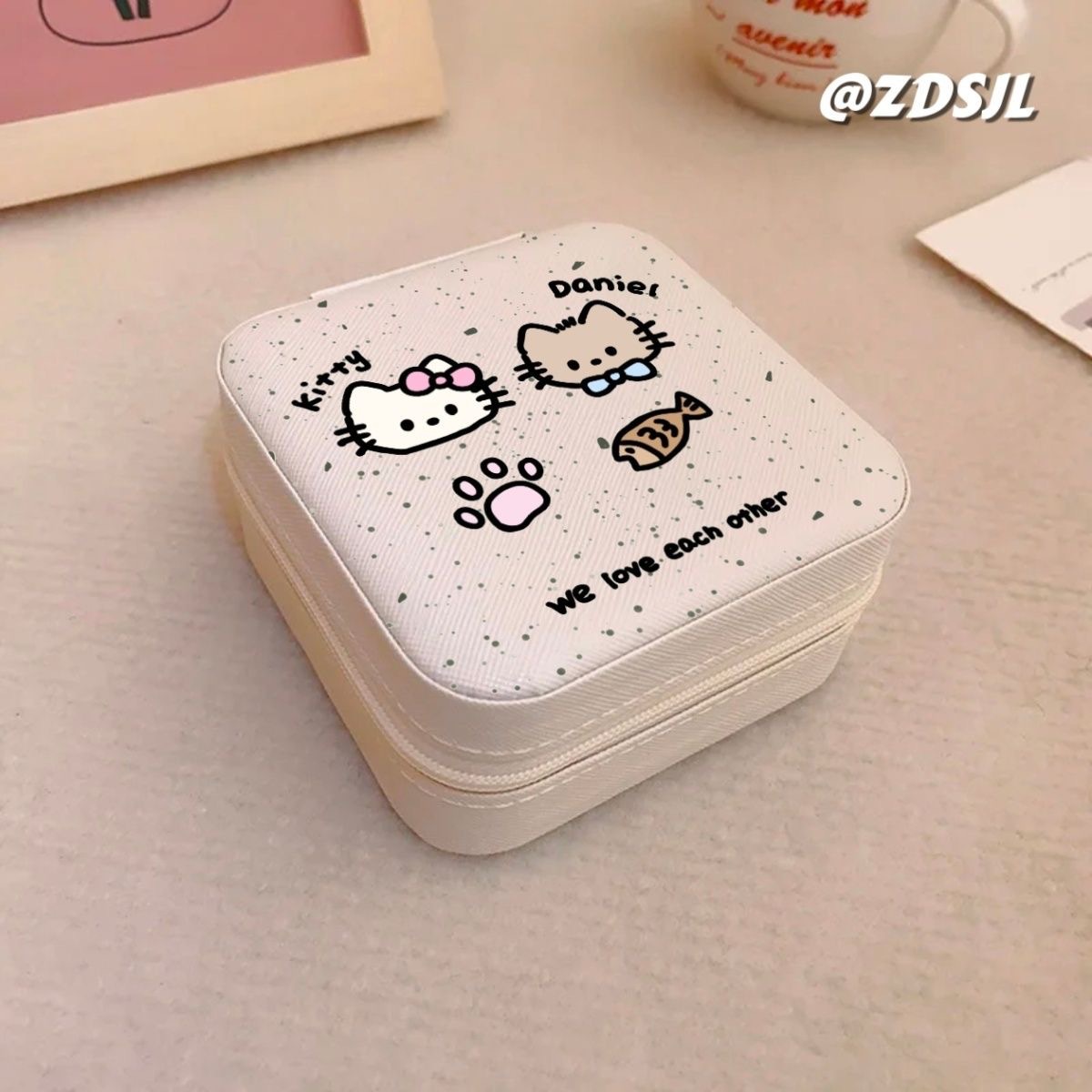 Colour: Jewelry box-white velvet jewelry bag [spotted cat cat fish fish]