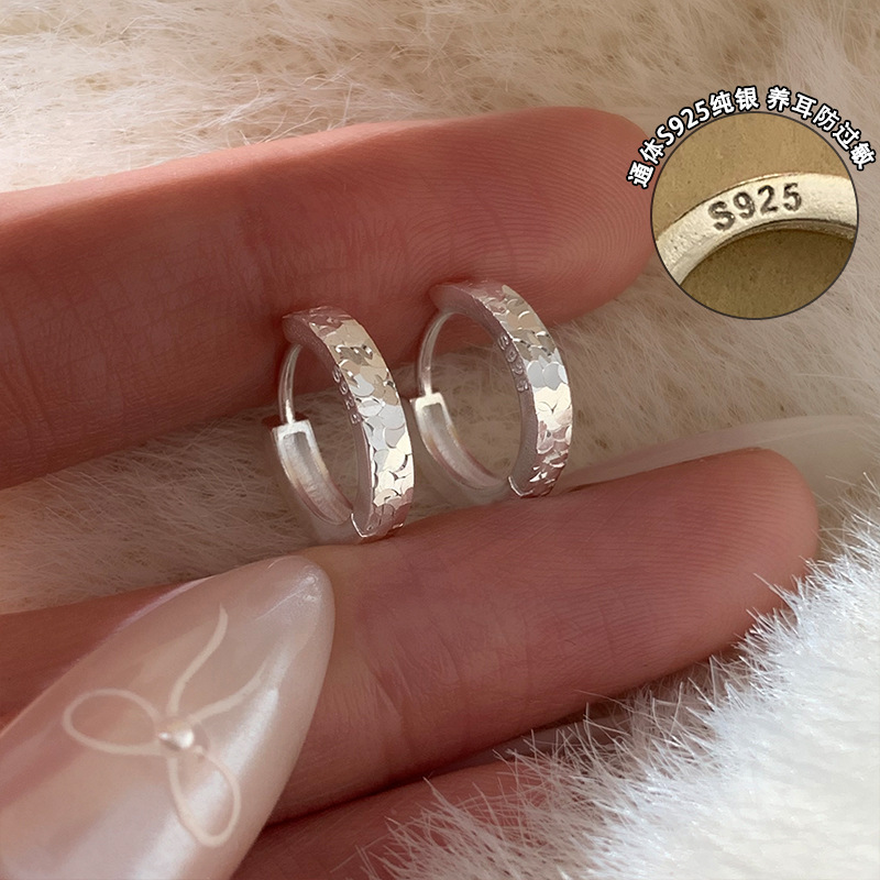 Tao Le s925 Sterling Silver Laser Crushed Ice Ice Ear Buckle Elegant Light Luxury High-end All-match Earrings Female Niche Design Sense