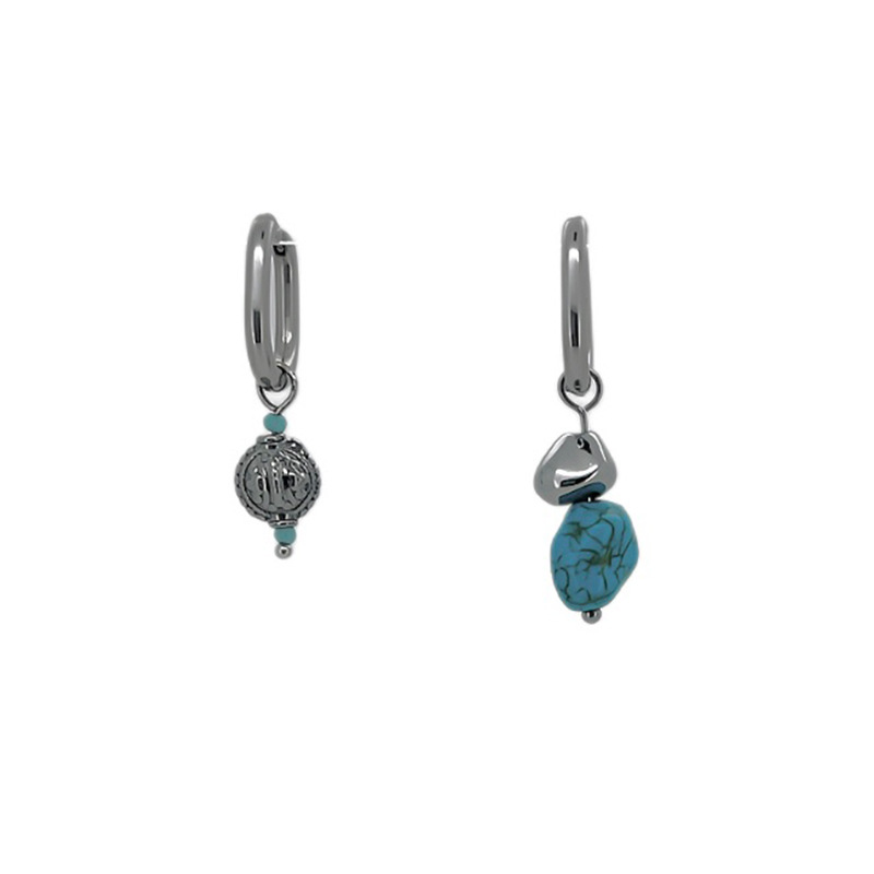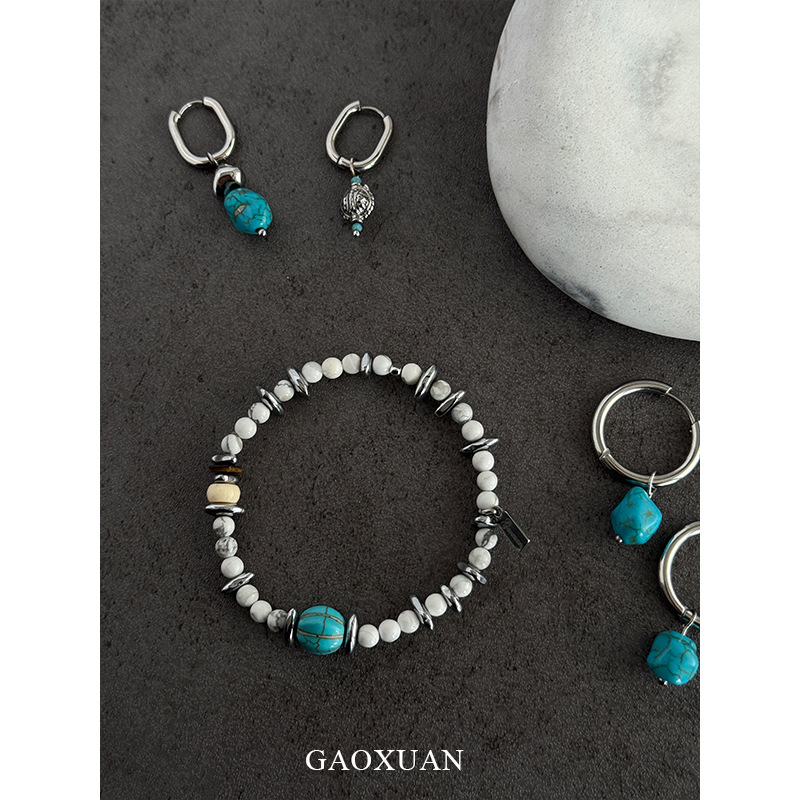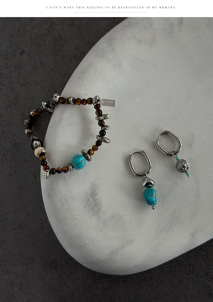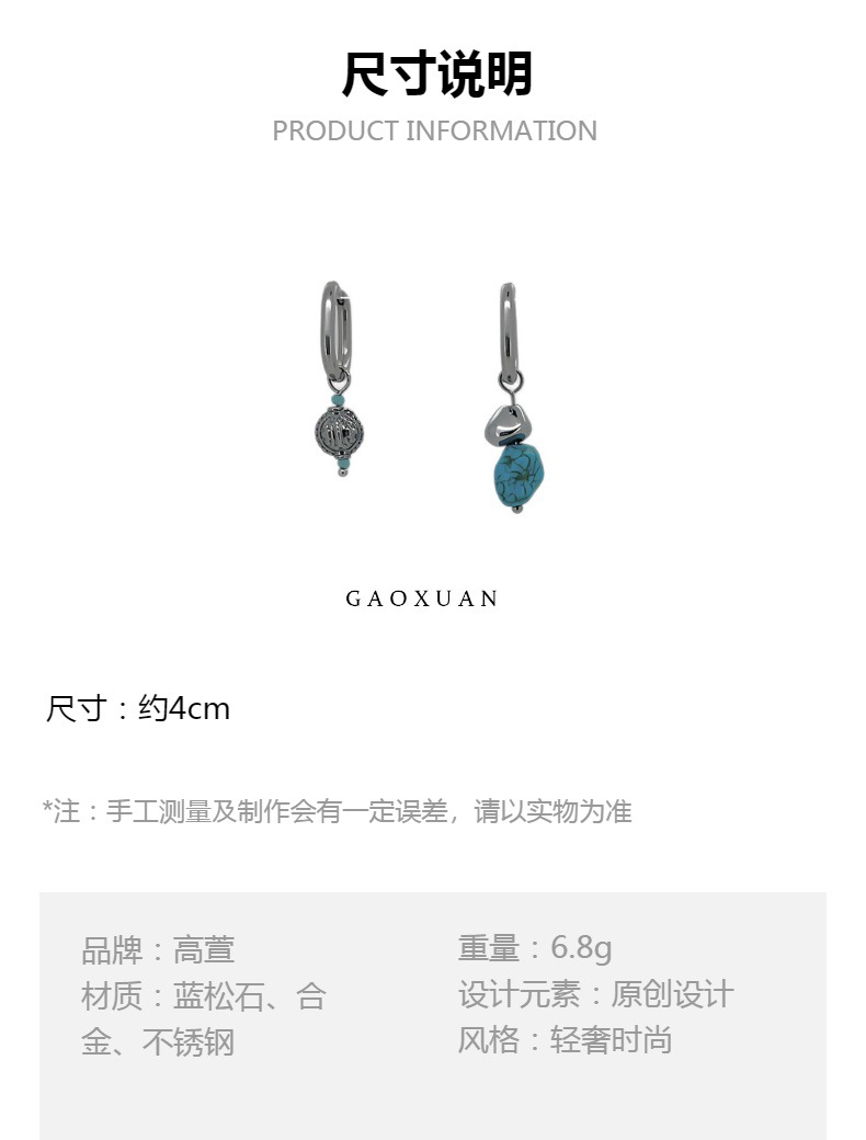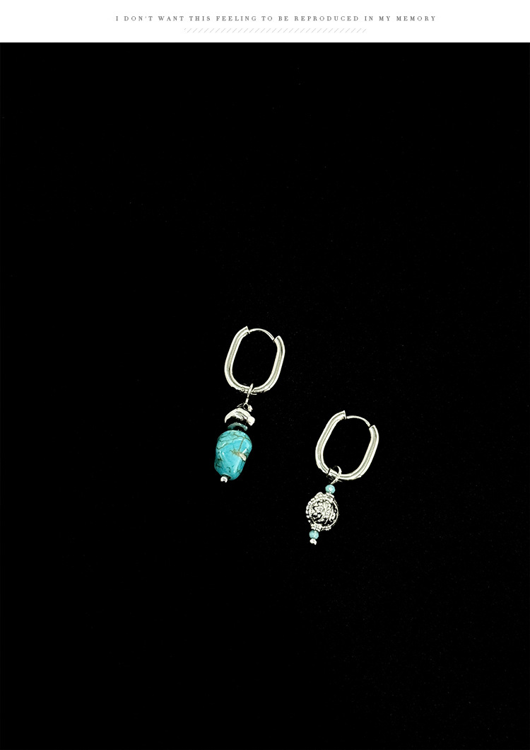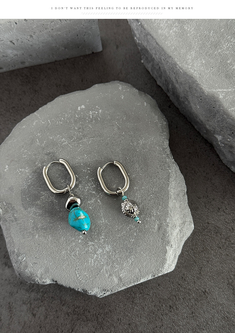 Original Unisex Retro Ethnic Style Irregular Blue Turquoise Earrings Artistic Middle Ancient Personality Asymmetric Couple Earrings