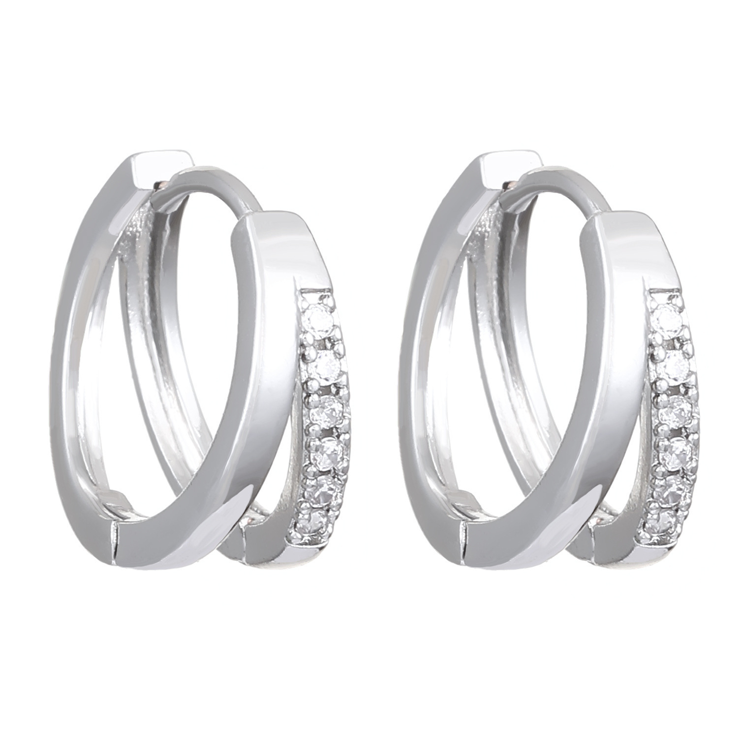 Diamond-encrusted Versatile silver earrings simple fashion earrings female temperament double-layer ring European and American exquisite small metal style
